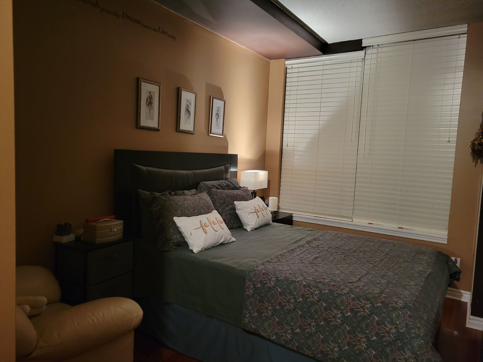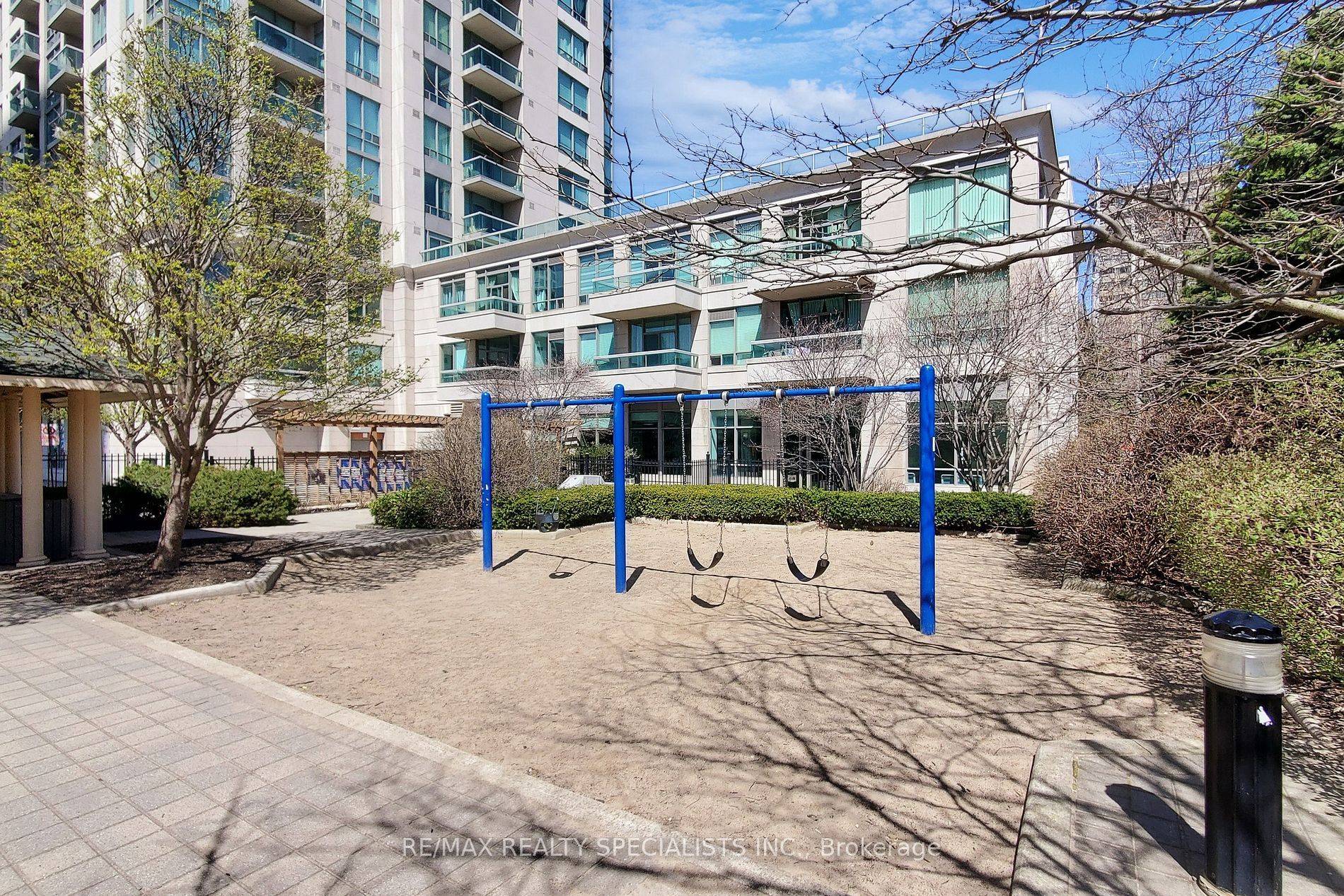 Large sun-filled corner 2-bedroom, 2-bathroom suite offering over 1,000 sq ft of total spaceincluding approximately 950 sq ft of interior living space plus a private balcony. Brightsouth-west exposure and large windows fill the unit with natural light and showcase a highlyfunctional layout rarely found in newer condos. Hardwood flooring throughout with no carpets. New blinds installed throughout, including zebra blinds in the combined living and dining area. The spacious primary bedroom easily accommodates a king-sized bed and additional furnishingsand features a walk-in closet and renovated 4-piece ensuite. Both bathrooms were updated in2019 with new tub wall tiles and floor tiles, and the primary bathroom also features a brandnew toilet. The kitchen includes a stylish backsplash installed in 2019 and a newerrefrigerator (2021). Excellent turnkey investment opportunity with stable $2,900/month rental income. Cooperativetenants are happy to stay, providing immediate cash flow for investors. Alternatively, tenantsare willing to cooperate with buyers who wish to occupy the unit, offering flexibility for bothinvestors and end users. Maintenance fees conveniently include all major utilities including hydro, water and gas,helping simplify monthly ownership costs and providing excellent overall value. Located in the highly desirable eden park community just minutes from square one shoppingcentre, kariya park, trillium health partners hospital, cooksville go station, and the squareone transit terminal, with quick access to highways 403 and qew for convenient commutingthroughout the gta. Residents enjoy excellent building amenities including an indoor pool, hot tub, sauna, fitnesscentre, party room, games room, media room, library/business centre, guest suites, bbq area andplayground. Includes underground parking and a convenient same-floor storage locker for easy access. A fantastic opportunity to own a large corner unit in a prime mississauga locati