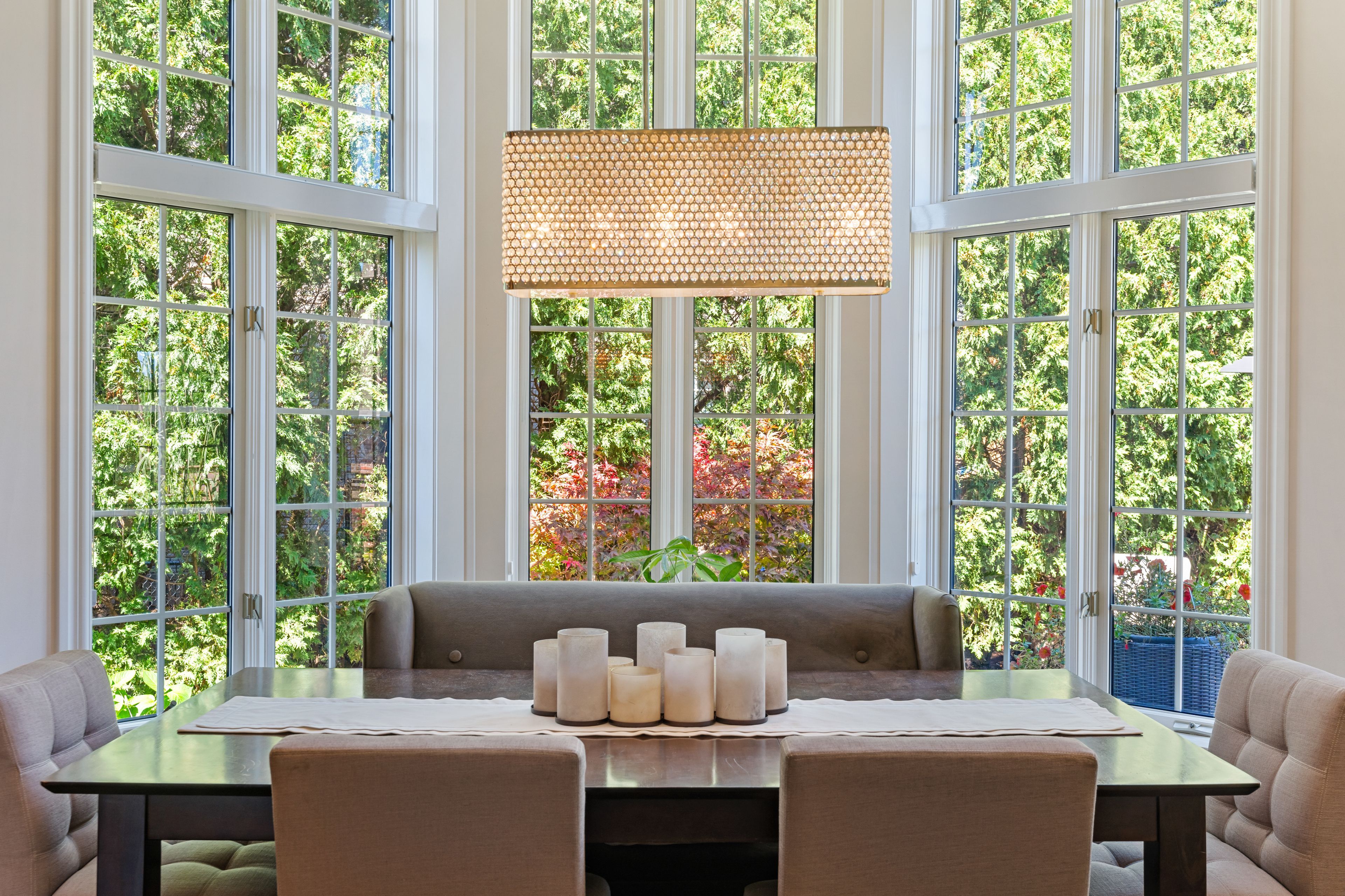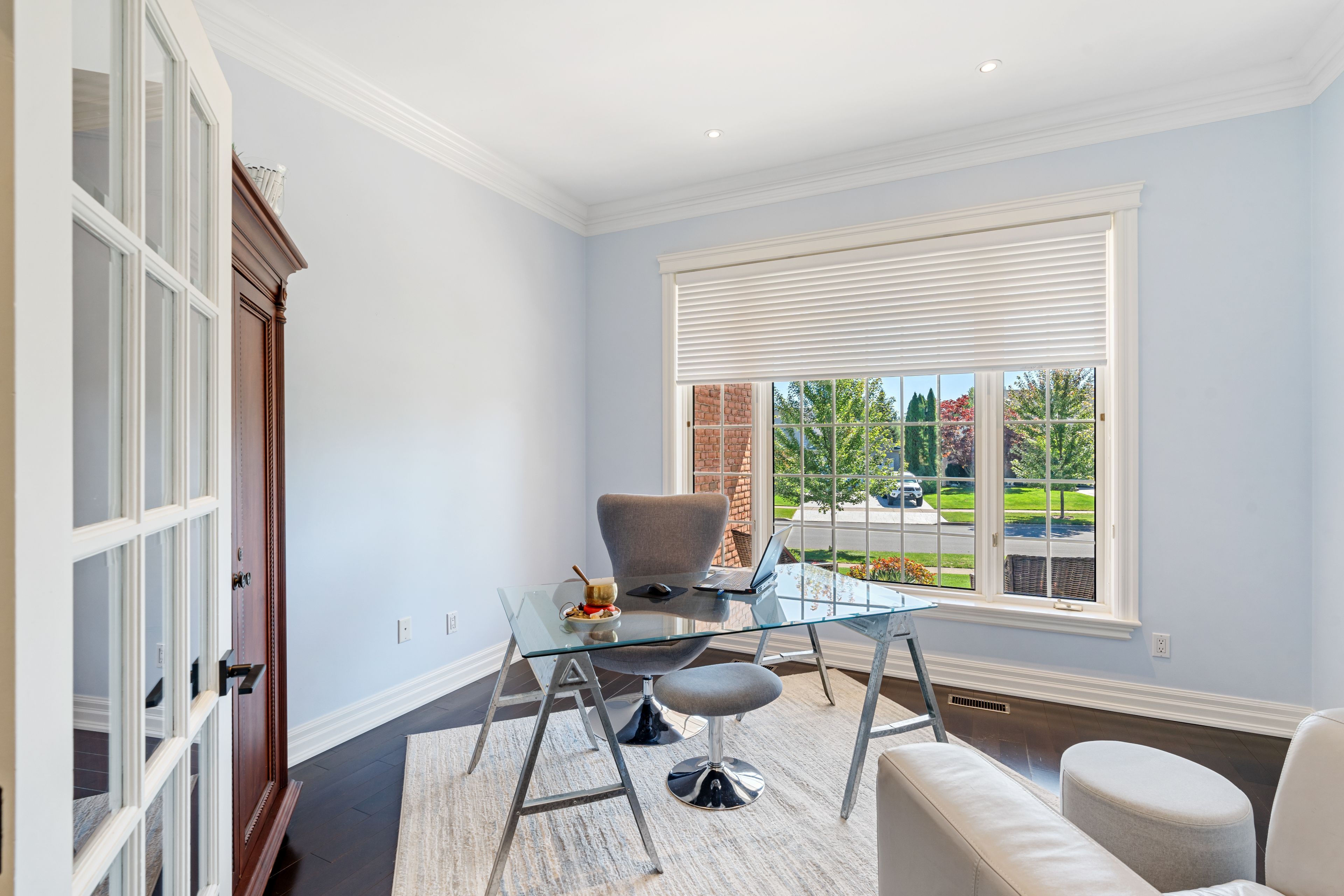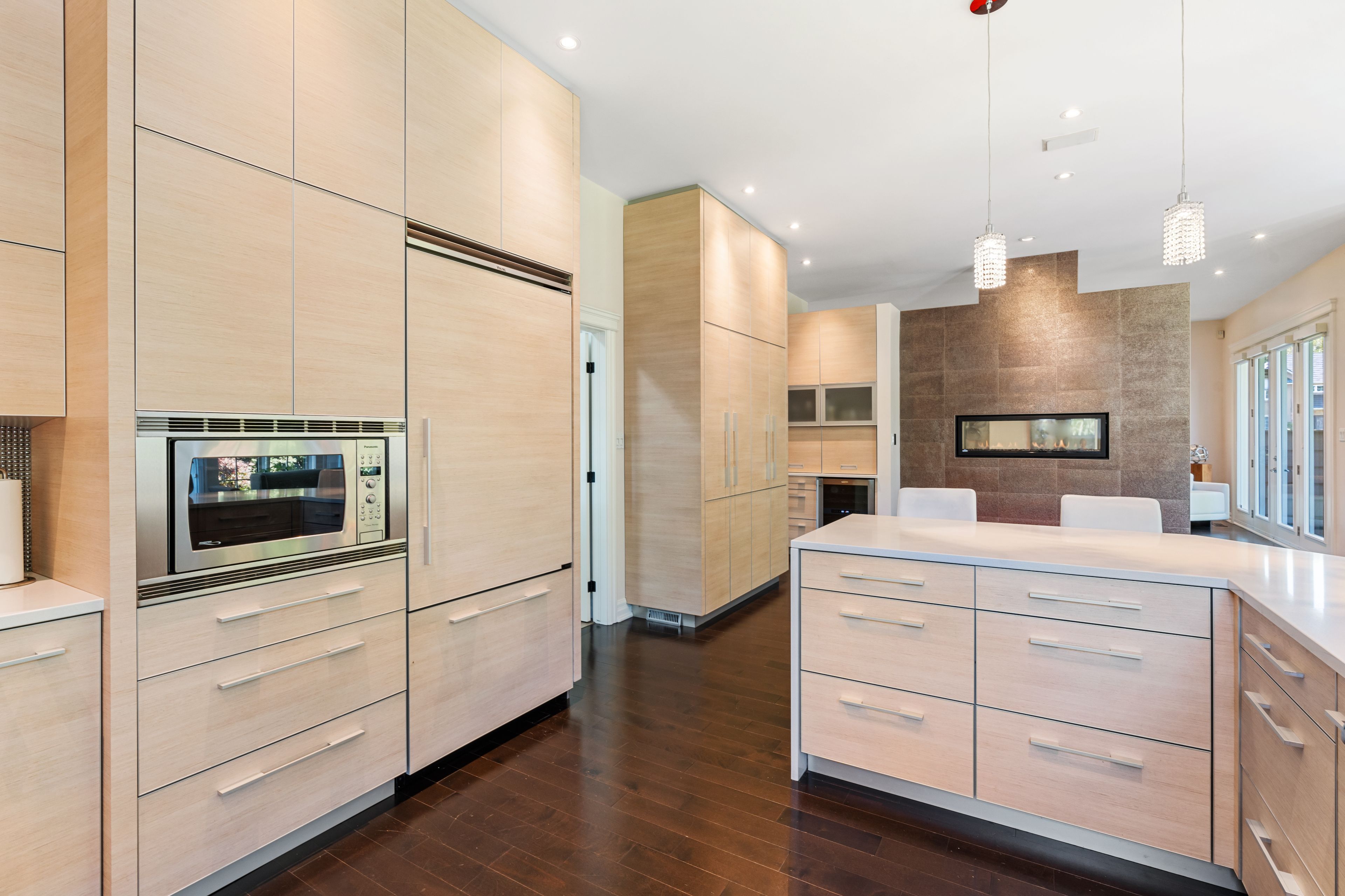 • Bright gourmet kitchen with quartz countertops and premium appliances.