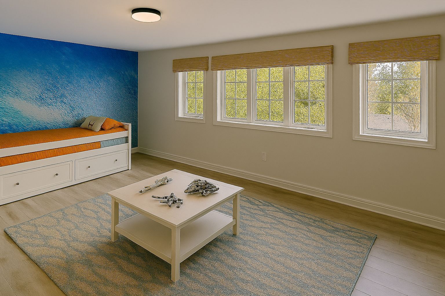 • Modern kitchen flows into a bright breakfast area with a deck access.