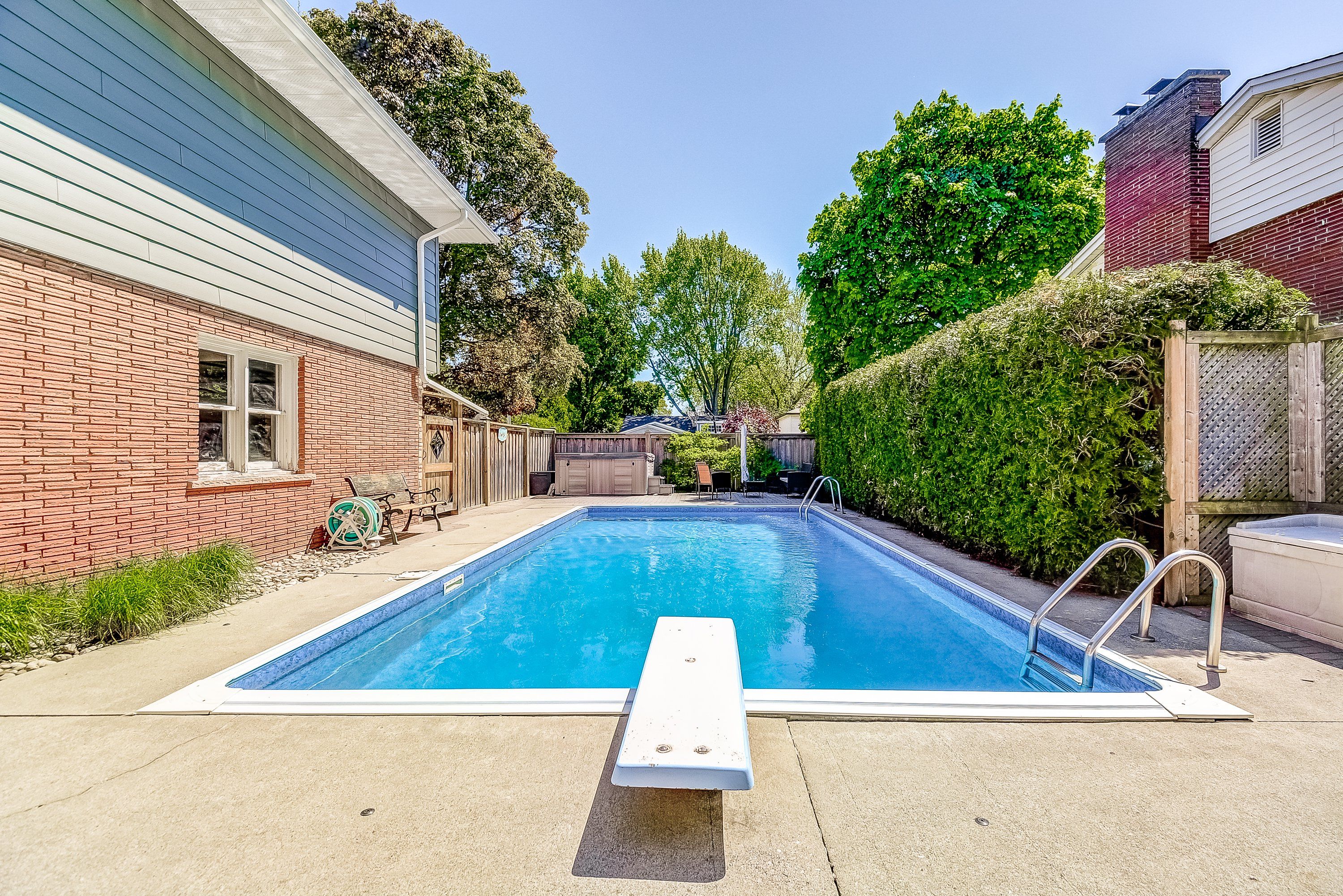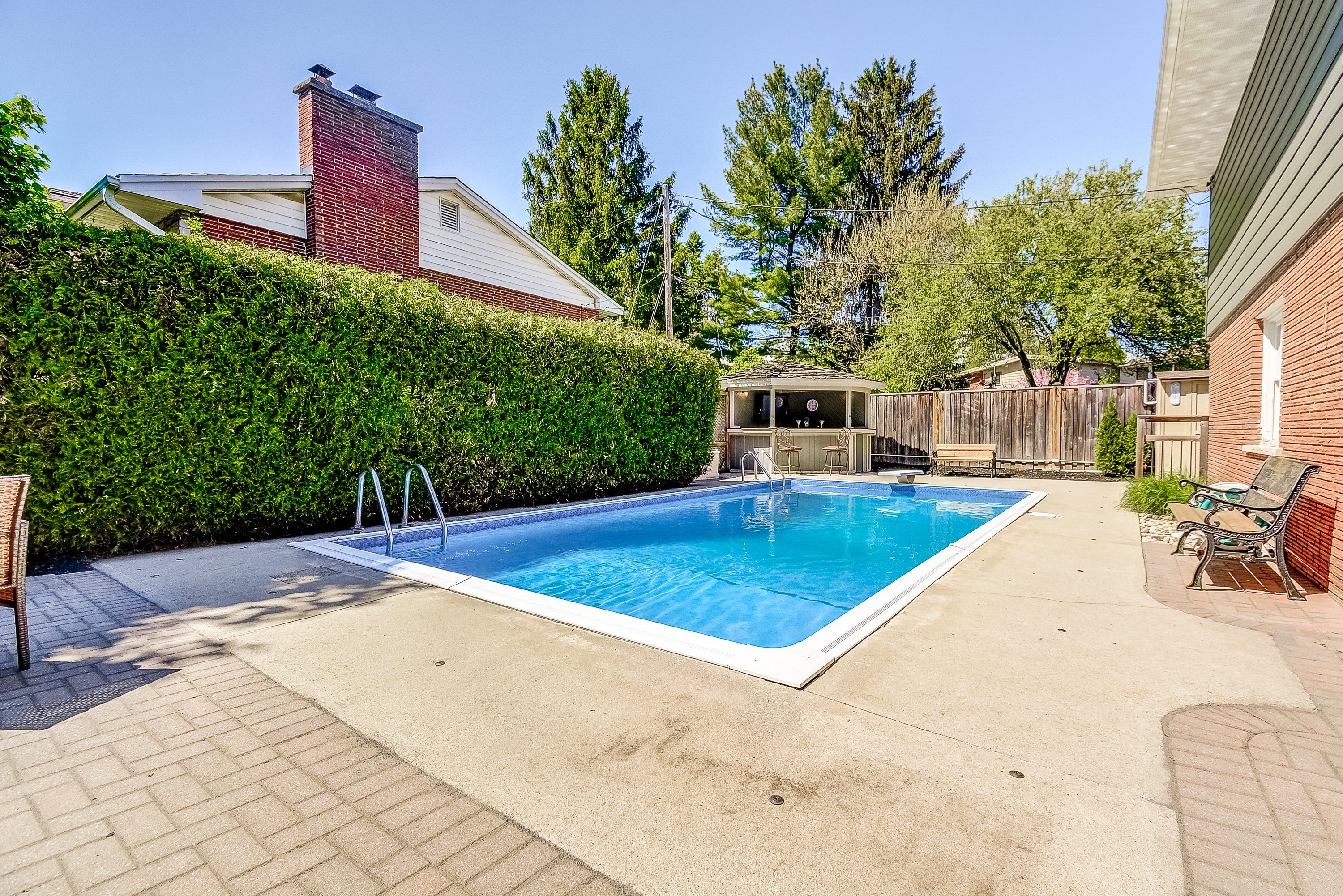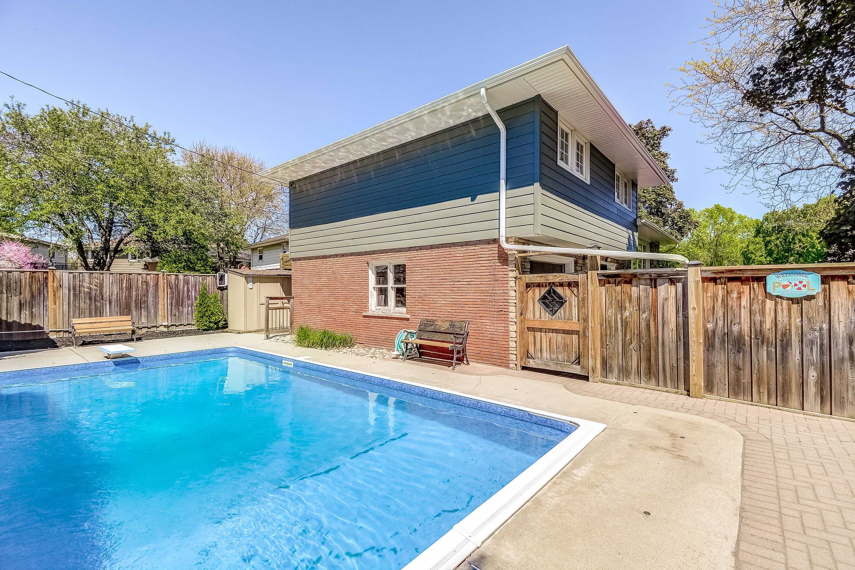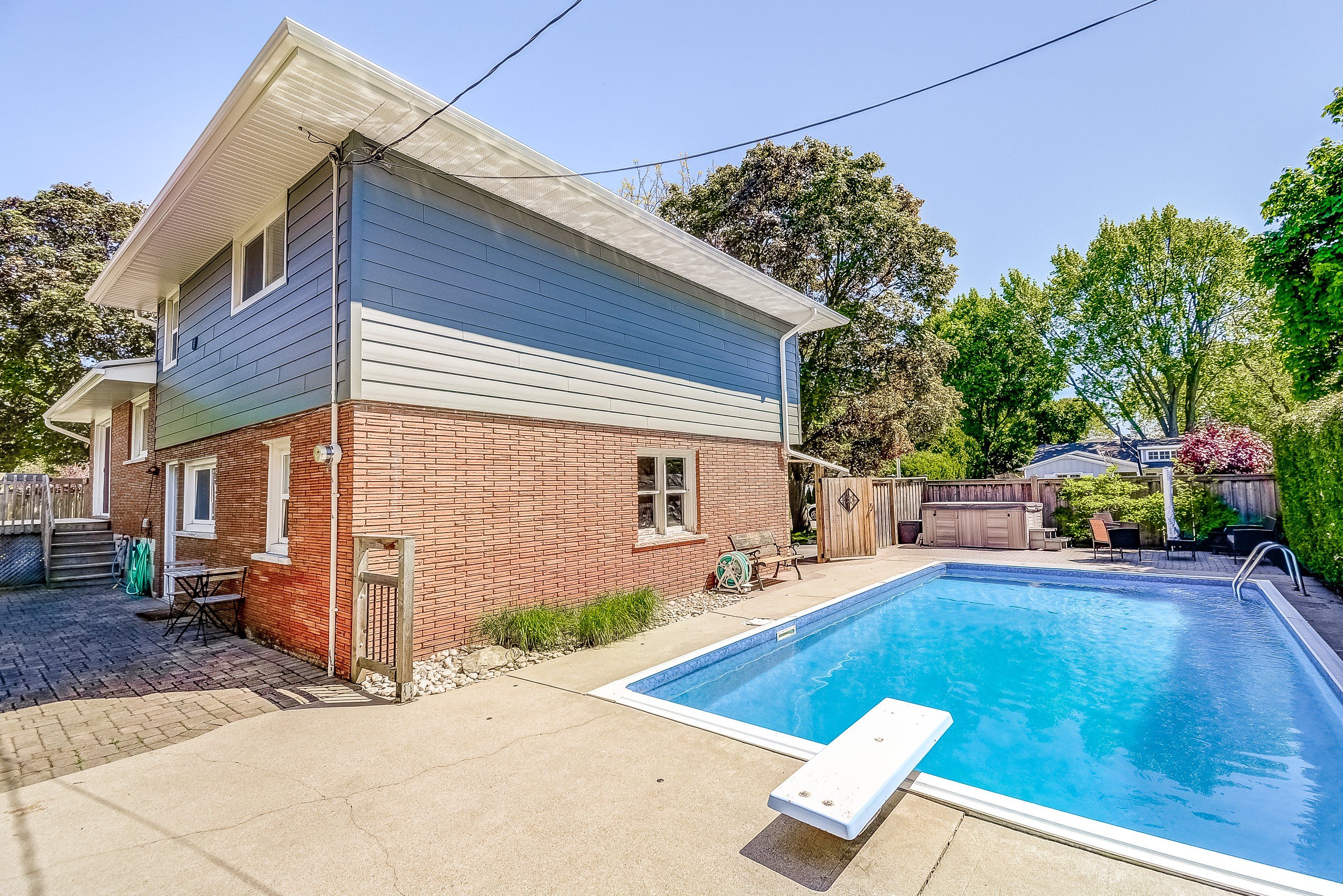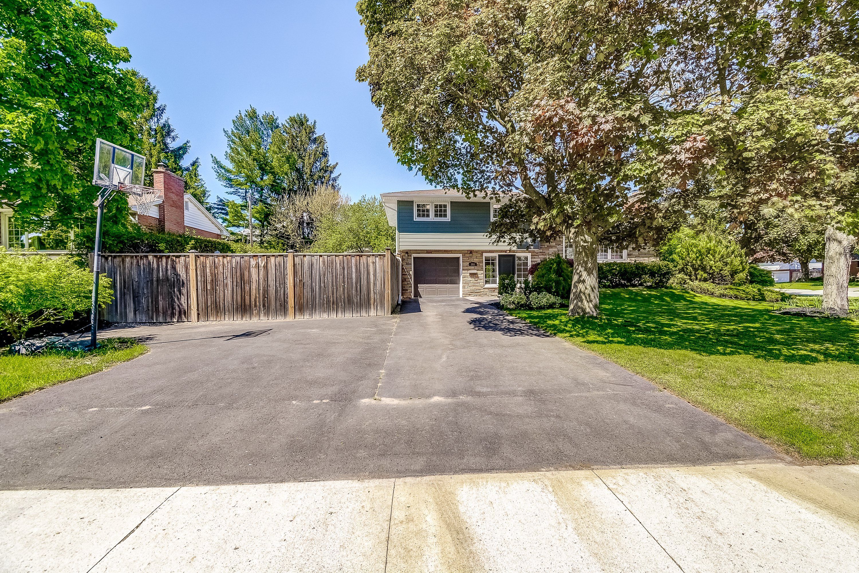 Welcome to 351 strathcona drive, a beautifully renovated, freshly painted 3-bedroom, 2. 5-bath home with a sparkling in-ground pool, located in south burlingtons coveted shoreacres neighbourhood. Blending timeless charm with thoughtful modern updates, this home is ideal for families or anyone who loves to entertain. Set on a spacious, fully fenced corner lot, the backyard is a true oasis. The pool is surrounded by lush landscaping and complete privacy. A powered tiki hut perfect for an outdoor tv or margarita machine adds a resort-style vibe. Whether its summer parties, barbecues, or quiet evenings under the stars, this space was designed for unforgettable moments. Inside, the main level offers a flexible layout featuring a sunny family/games/bonus room, a powder room, and direct access to the backyard and pool perfect for seamless indoor-outdoor living. The renovated kitchen includes bright white cabinetry, quartz countertops, and an oversized window. The adjacent dining area features sliding doors to the rear deck, ideal for everyday living or entertaining. A spacious family room provides even more space to relax and gather. The bright, fully finished basement includes a flexible office or optional fourth bedroom, a generous recreation room with large windows, and a new 3-piece bathroom with a separate shower. Upstairs, you will find three sunlit bedrooms and a beautifully updated full bathroom with double sinks, a separate tub, and stacked washer/dryer. An attached garage with inside entry and a window offers convenience and natural light. A tranquil side yard shaded by mature trees provides a quiet spot for morning coffee or reflection. Located in the sought-after tuck elementary and nelson high school district, and just a short walk to lake ontario, this move-in ready home includes a kid-friendly basketball court and offers an exceptional lifestyle. Do not miss your chance to own this rare gem! Check out iguide & floor plans