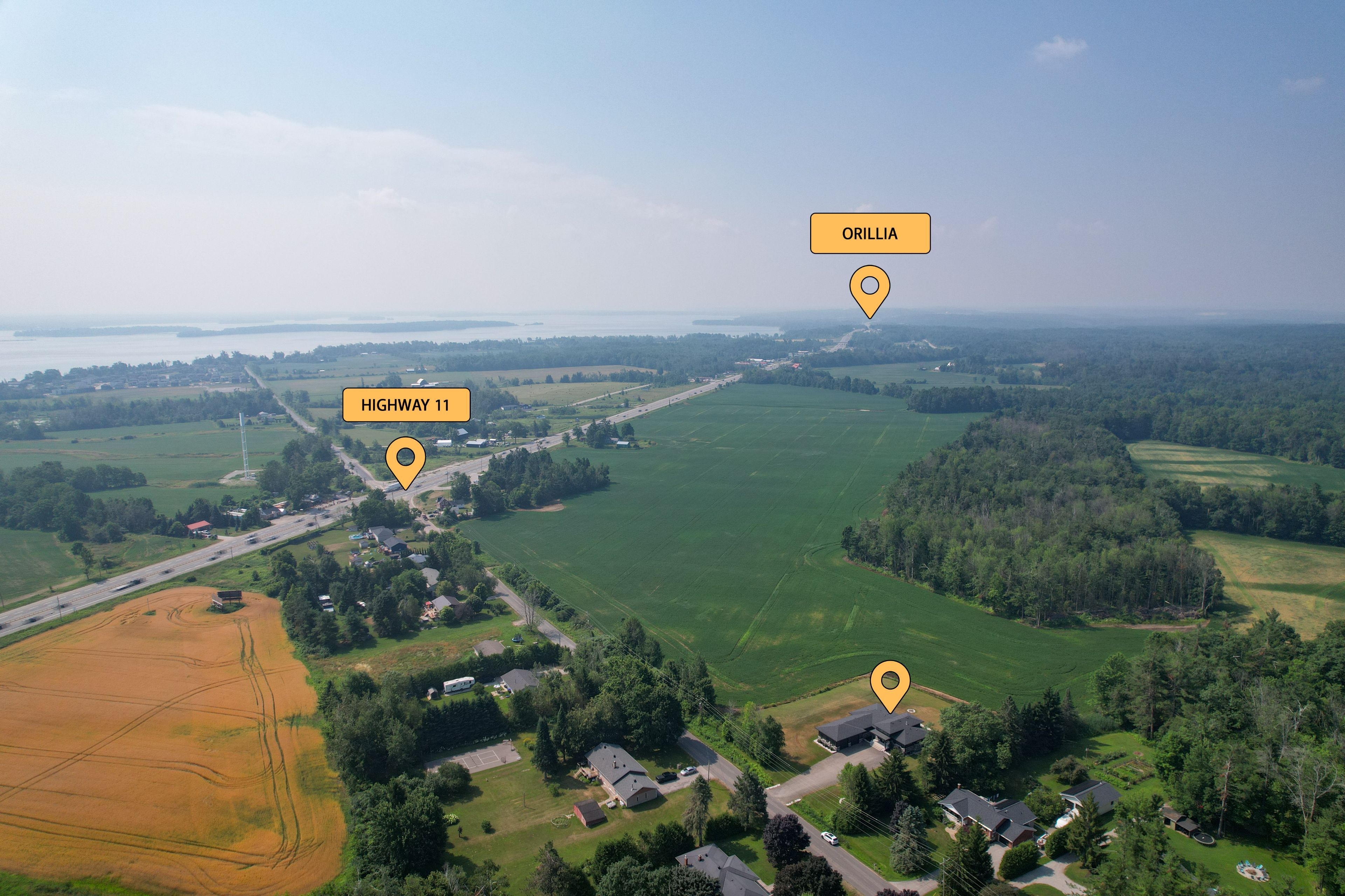 A masterpiece of modern elegance in a tranquil country setting. Prepare to be captivated by this custom-built bungalow a residence that redefines luxury living. Meticulously crafted with premium upgrades throughout, this home offers an exquisite blend of opulence, functionality, and serene countryside charm, all just minutes from orillia. Step inside the expansive open concept main level, where natural light floods through oversized windows, illuminating every curated detail. The heart of the home an entertainers dream kitchen features: massive quartz-topped island, full wet bar, generous walk-in pantry and custom cabinetry with designer lighting. Flowing seamlessly from the kitchen is the great room, a dramatic space boasting 14-ft beamed and shiplap ceilings, a striking fireplace, and custom led ambient lighting. Step through oversized glass doors to a grand stone patio, ideal for alfresco dining and sophisticated outdoor entertaining. The primary suite is your personal sanctuary, complete with: spa inspired 5-piece ensuite featuring a freestanding soaker tub, luxurious walk-in shower, and dual vanities, fully outfitted walk-in closet with custom storage solutions. Two additional generously sized bedrooms share a designer 5-piece bath, while the main floor is completed by a stylish mudroom, laundry room, and wide plank engineered hardwood flooring throughout. Descend to the fully finished icf basement, where possibilities abound. This level offers: an additional bedroom and full bathroom, a state of the art synthetic ice hockey rink (a truly rare and extraordinary feature in a private residence), expansive space for a home theatre, gym, or recreation lounge. The oversized, heated 3-car garage is equally impressive, fully insulated with epoxy coated floors. Set on a peaceful lot backing onto open farmland, the property offers direct access to the ofsc snowmobile trail, and is ideally situated just a short drive to local beaches, shopping, dining, and more.