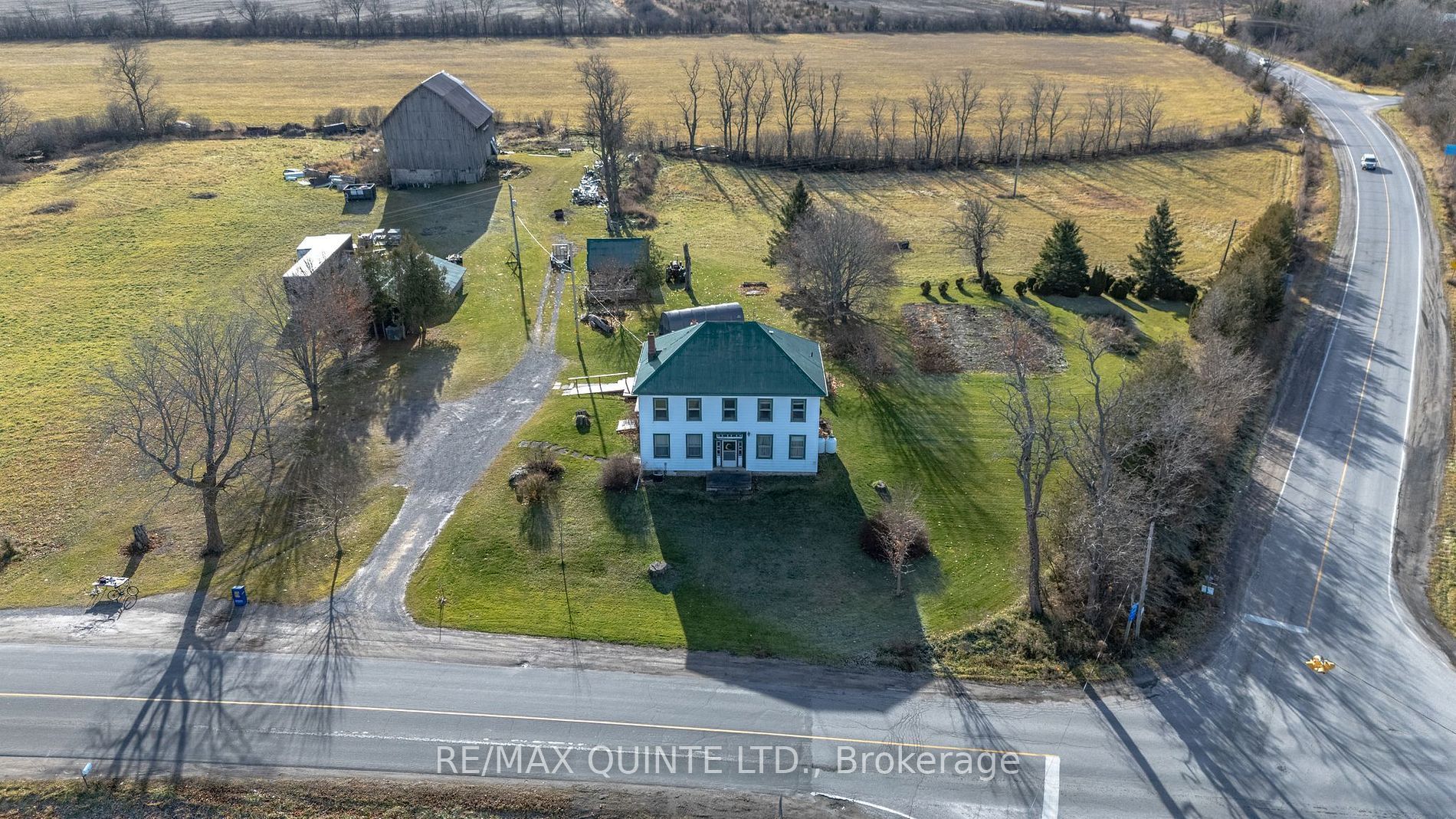 Welcome to bowerman's corners. This historic property overlooks county rds 1 & 2 consisting of 34. 8 acres. The barn & outbuildings are set back a respectable distance from the stately 2 storey home. This historic gem was built in the 1830's and has been home to the present owners/family for more than a century. The centre hall floor plan is open and welcoming with large principle rooms, original wide plank floors throughout most of the home, deep baseboards & several solid original wood doors. An original tin ceiling in the dining room as well as a gorgeous fireplace that is currently not used. The front centre hall entry is welcoming and spacious with a guest parlour to your right and dining room to your left, a beautiful staircase leads to the 2nd floor where 4 large bedrooms await. As well there is a small room that could be a media/craft room or bath. Vision abounds with this unique property - so many choices & this exceptional property awaits the next family to enjoy its wonder.