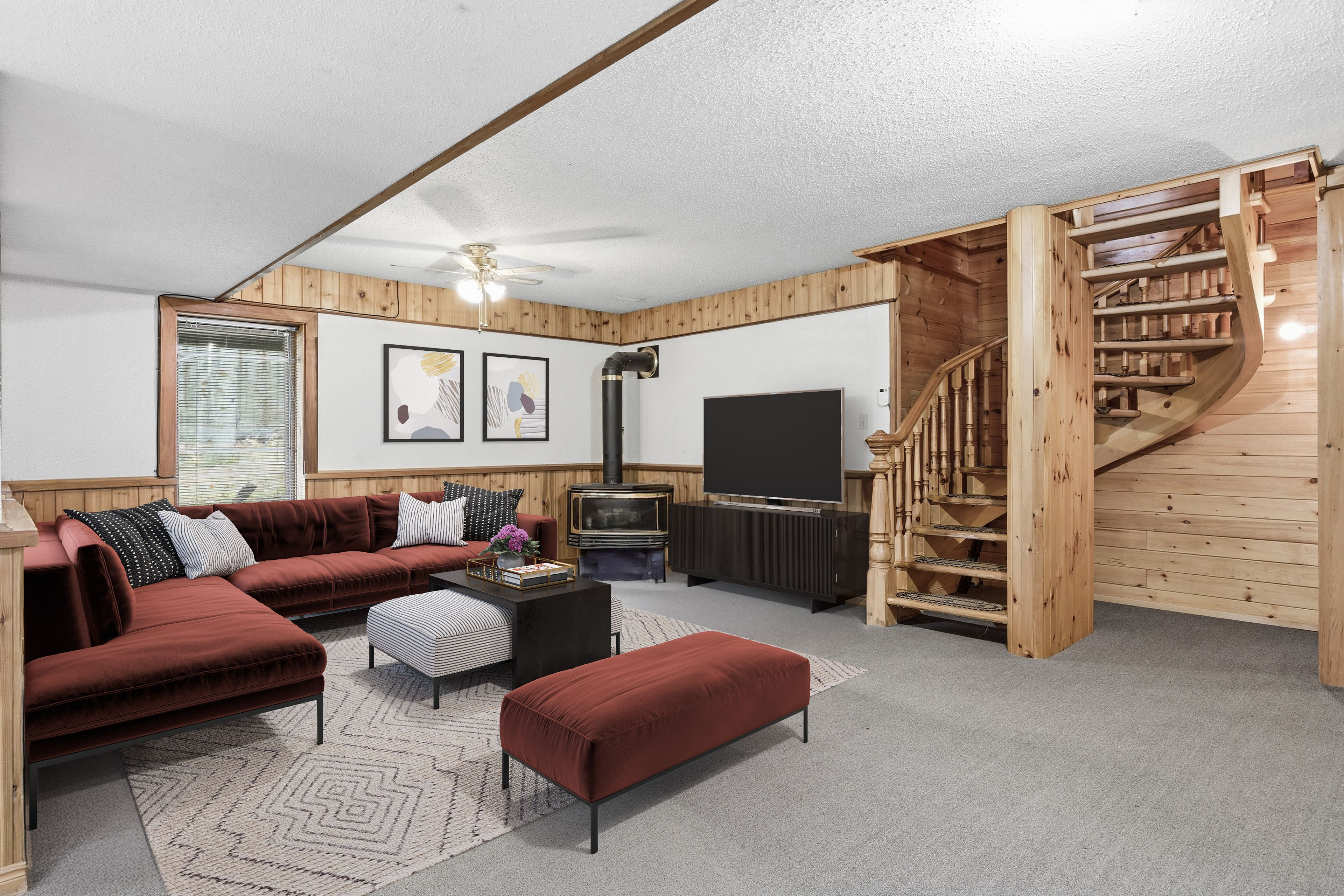 • Spacious 4+1 bedroom log home blending rustic charm with modern comfort.