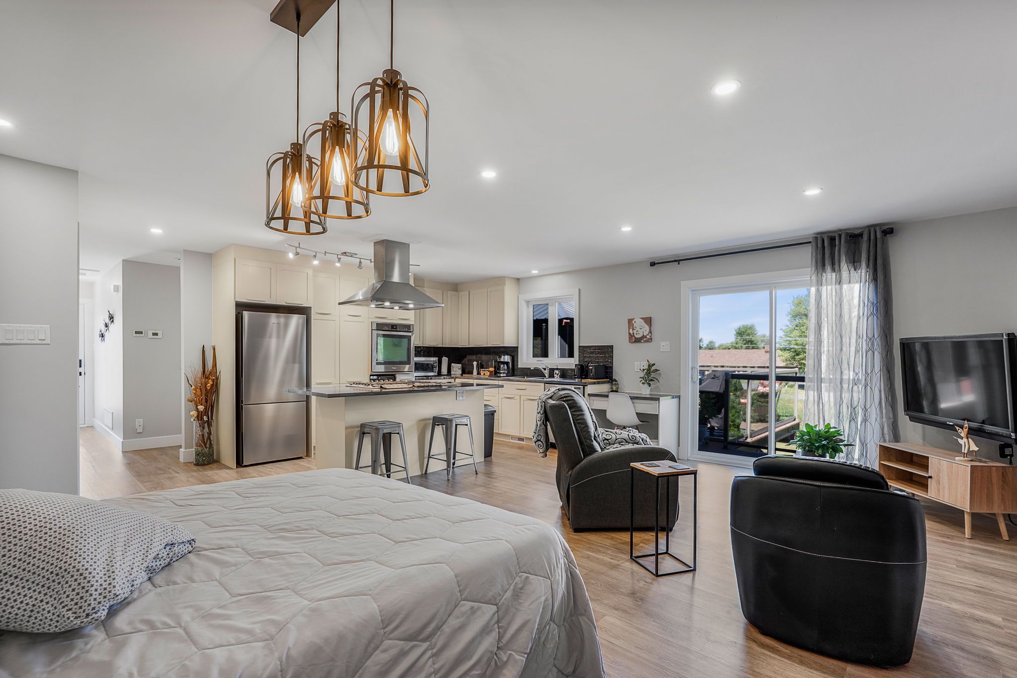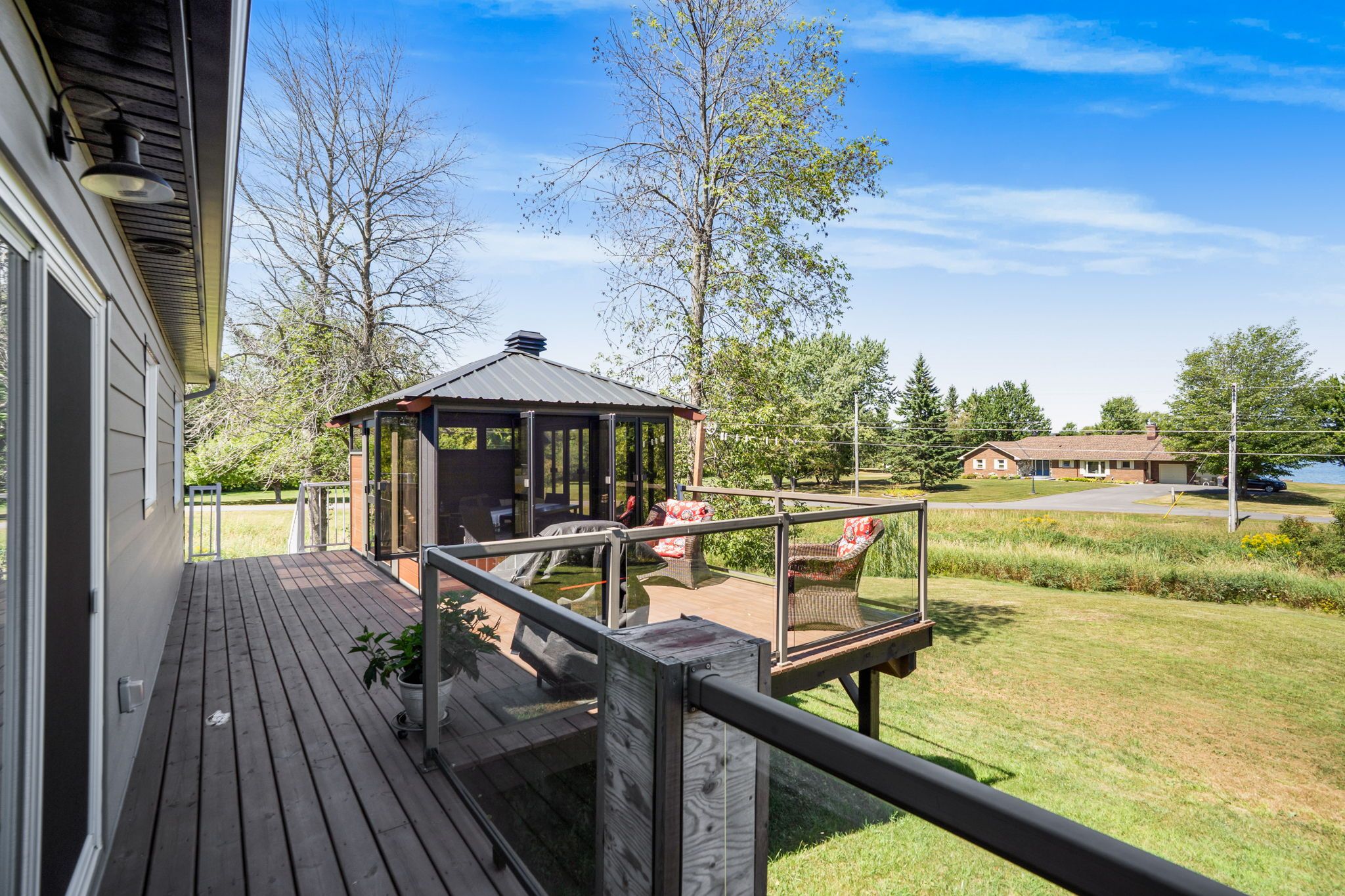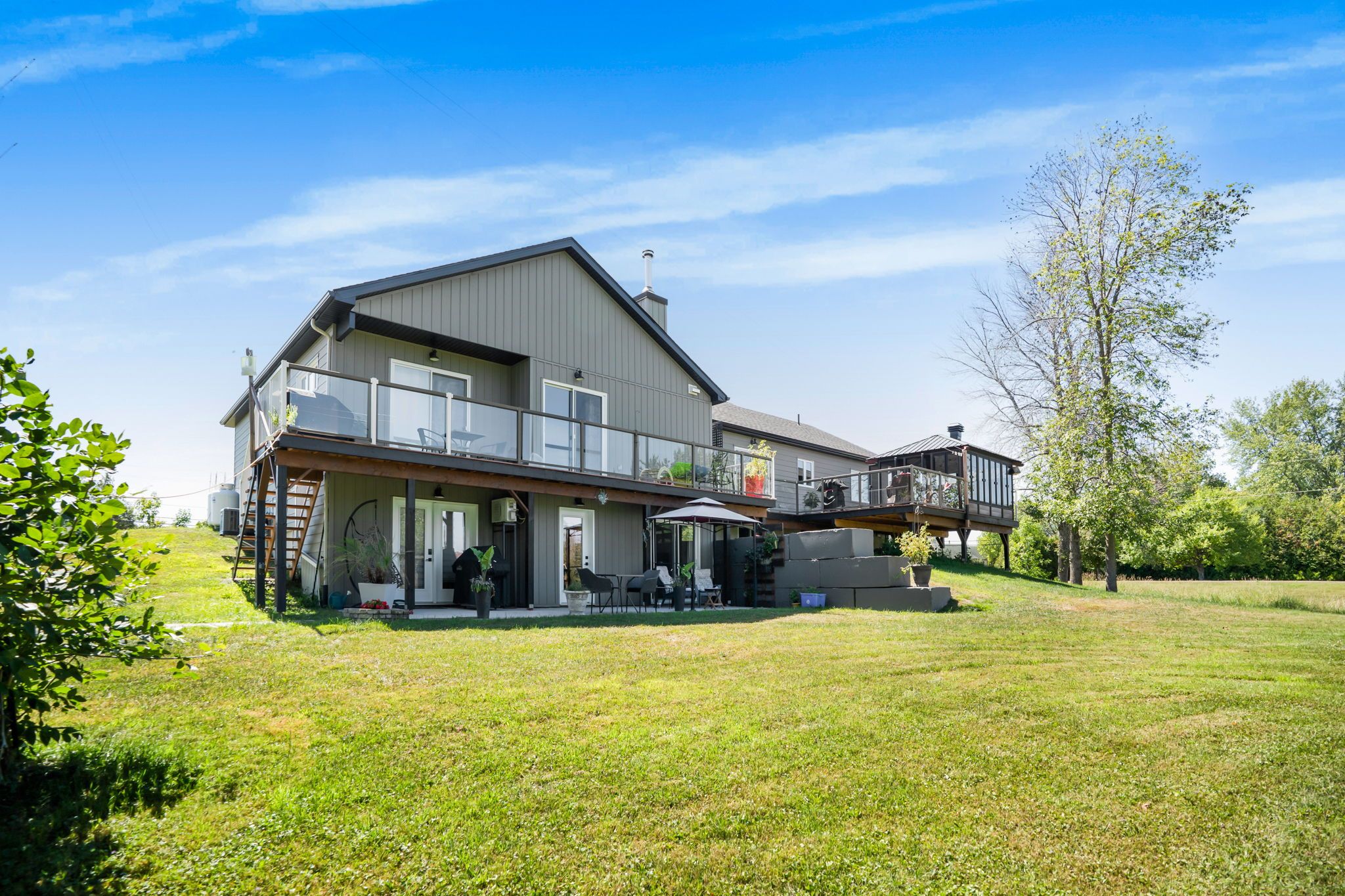 Unique 2023 waterfront home with three self-contained units township of east hawkesbury. Welcome tothis one-of-a-kind, custom-built 2023 property located on the picturesque front road in east hawkesbury. Designed with versatility in mind, this unique home offers three self-contained units, making it ideal as afamily compound or an income-generating investment. The main unit showcases modern elegance with abright open-concept layout, a gourmet kitchen with walk-in pantry and propane stove hookup, a cozywood-burning fireplace, a spacious primary suite with walk-in closet and ensuite, a second bedroom, and aprivate deck overlooking the property. The second unit is a large one-bedroom suite with a practical fullkitchen, generous open living and dining areas, and its own private balcony complete with a luxuriousgazebo perfect for guests or rental opportunities. The lower-level loft-style apartment, accessible via thewalkout basement, offers stylish open living and independent comfort. Each unit is equipped with its ownheating and cooling system for optimal efficiency. Unfinished sections of the basement provide ample roomfor a workshop, storage, or future finished living space. Additional features include: balance of tarionwarranty, two driveways, and a finished container storage shed. Nestled on a quiet bay of the ottawariver, this property allows direct backyard access for kayaking, paddle boarding, or docking a small fishingboat. With its quality craftsmanship and stunning waterfront setting, this residence is truly a rare find. Over80k of (proven) potential annual income.