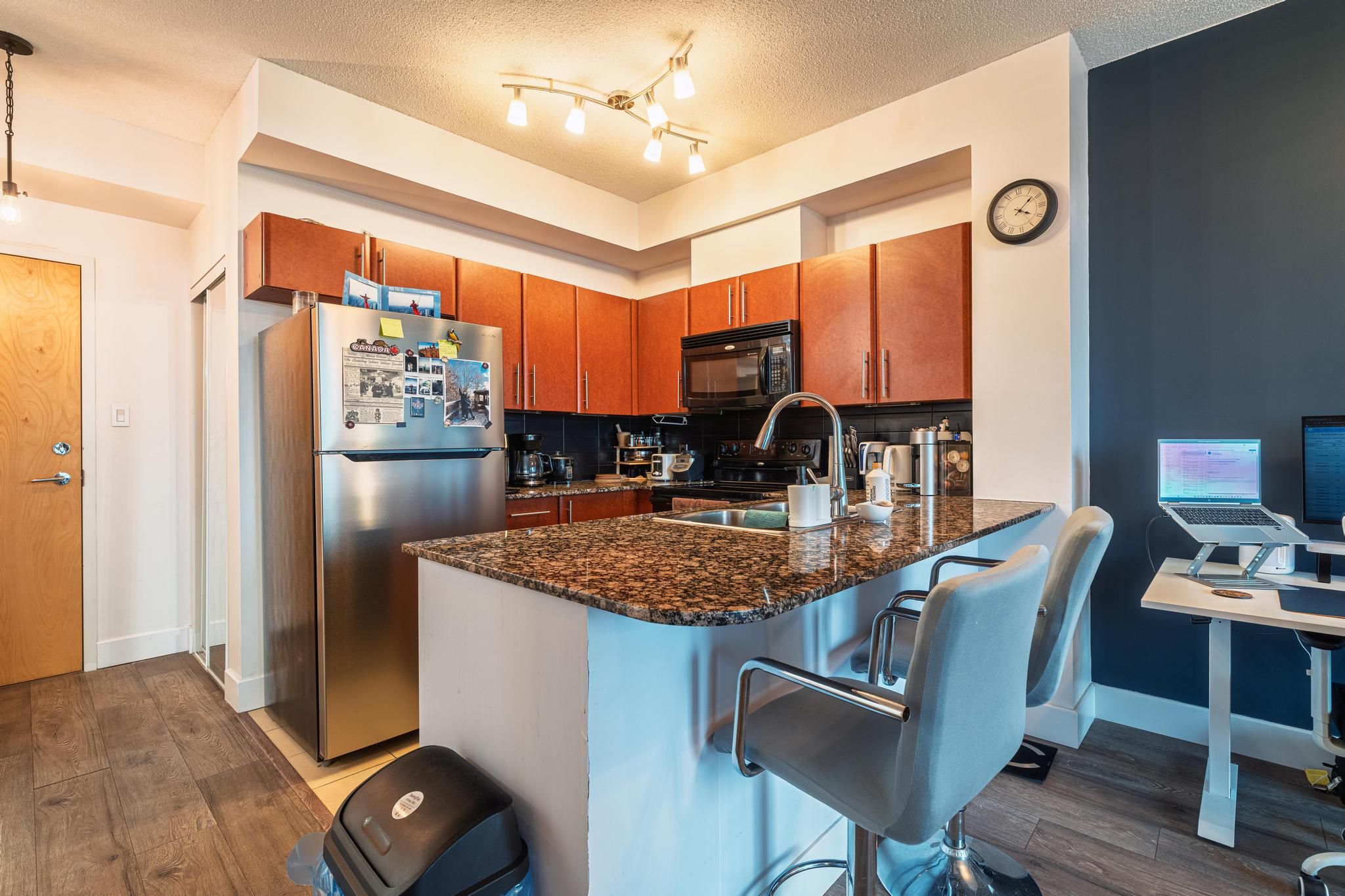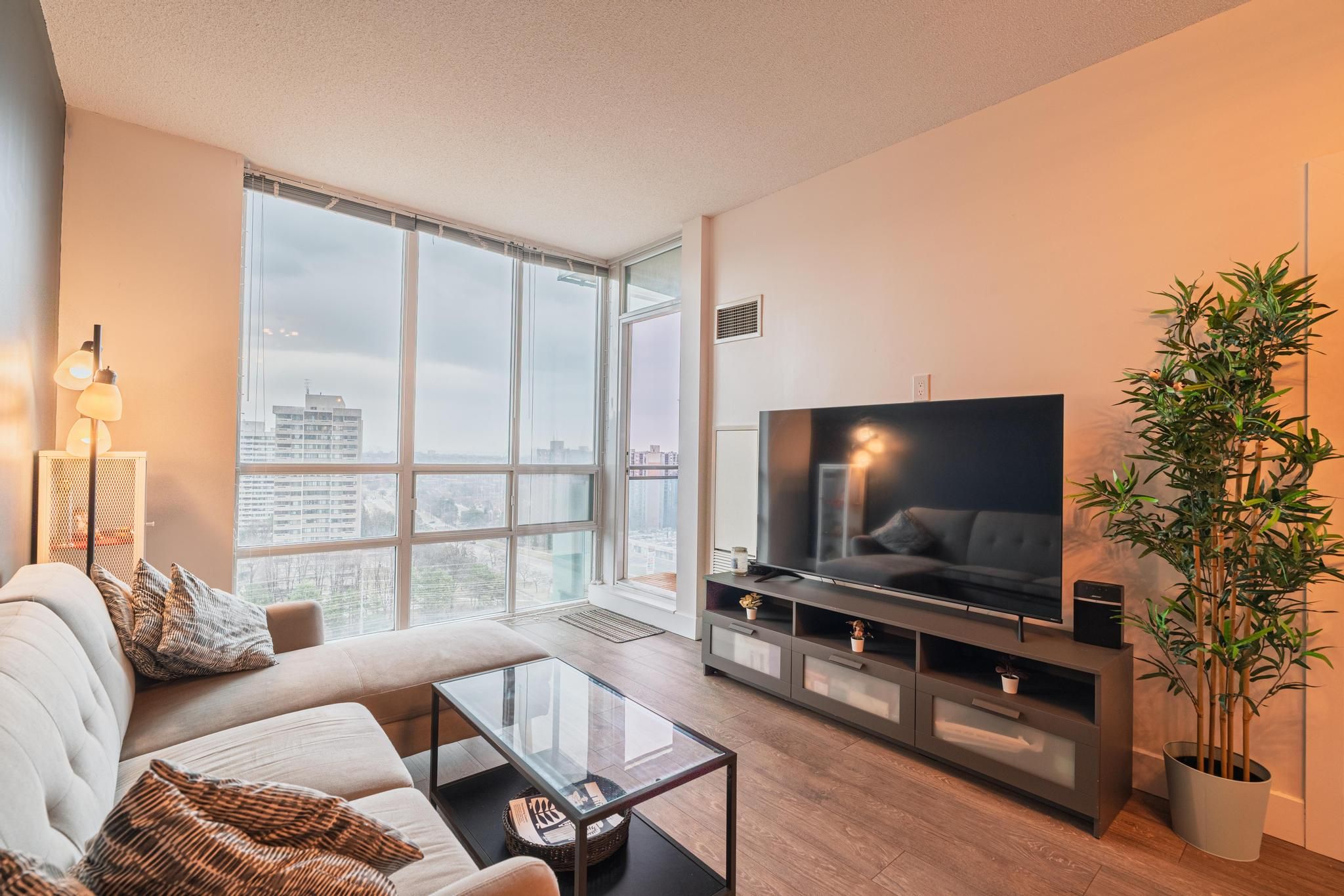 Welcome to unit 1603 at 3515 kariya dr! This bright and modern 1-bedroom + den, 1-bathroom suite offers beautiful city views and a perfect blend of comfort, convenience, and contemporary design. The open-concept layout is enhanced by floor-to-ceiling windows that fill the space with natural light. The modern kitchen features granite countertops, stainless steel appliances, and plenty of cabinet space-ideal for both everyday living and entertaining. This well-maintained unit includes one parking space and one locker. The carpet-free flooring throughout creates a clean, modern look while making maintenance easy. Residents of eve condos enjoy a wide range of premium amenities, including a fully equipped fitness centre, indoor pool, sauna, party room, guest suites, visitor parking, and 24-hour concierge service. Conveniently located just minutes from square one, major highways, public transit, restaurants, parks, and schools, this home offers exceptional value in one of mississauga's most desirable communities. Perfect for first-time buyers, down sizers, or investors, this is a fantastic opportunity to own in eve condos. **upgrades** new fridge (2025) new thermostat (2025)new fan coil unit (2025) new floors (2017)new trim and reno (2017)bathroom updated (2015) custom closets (2016)