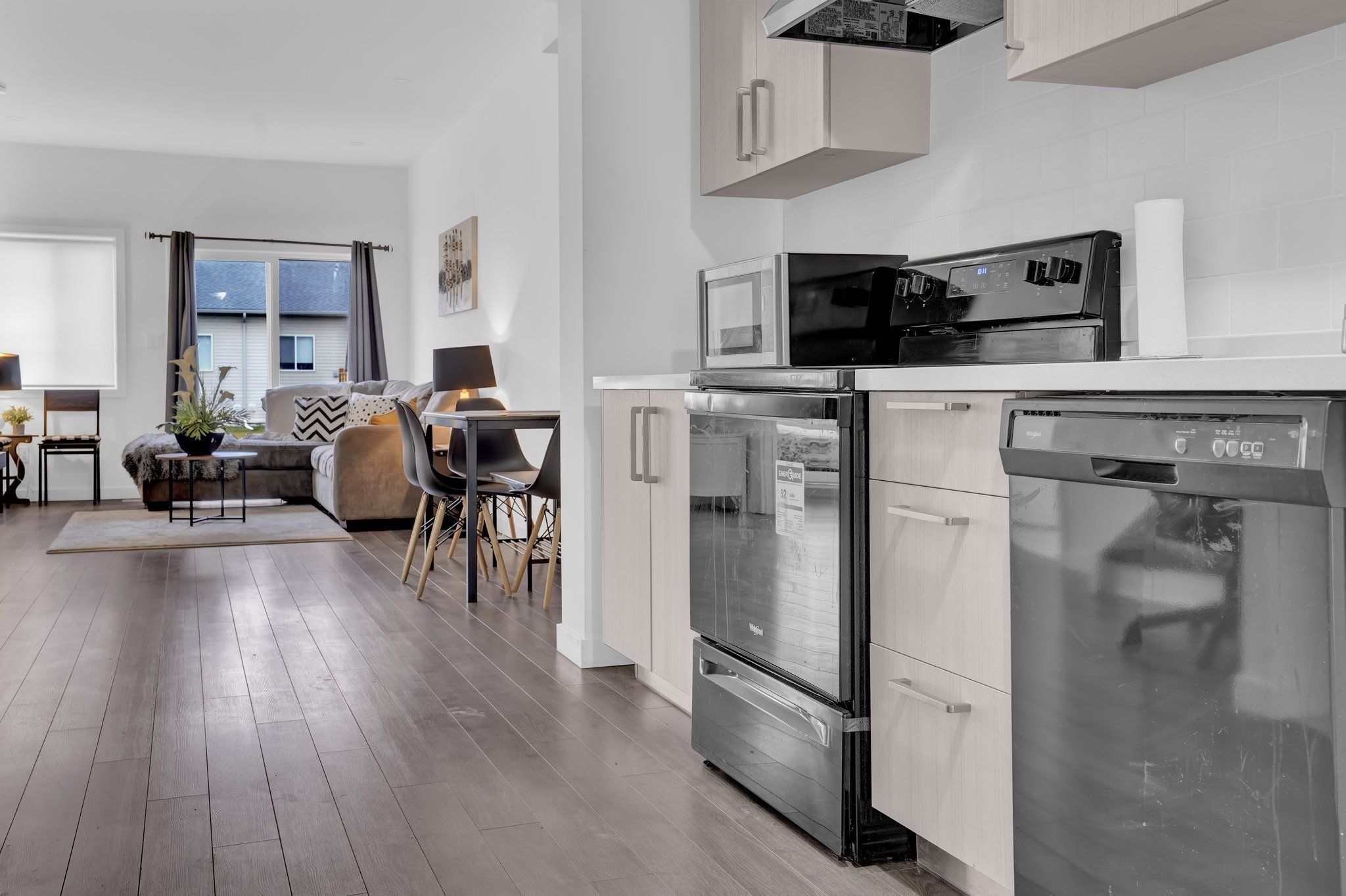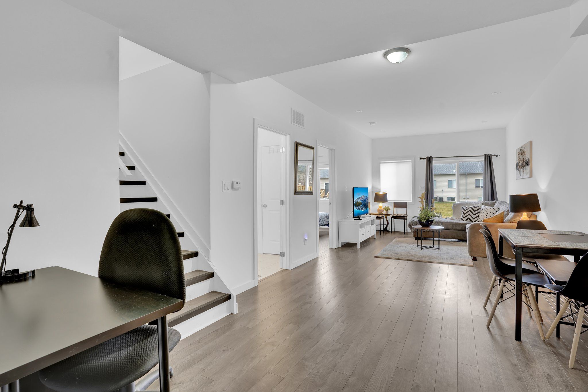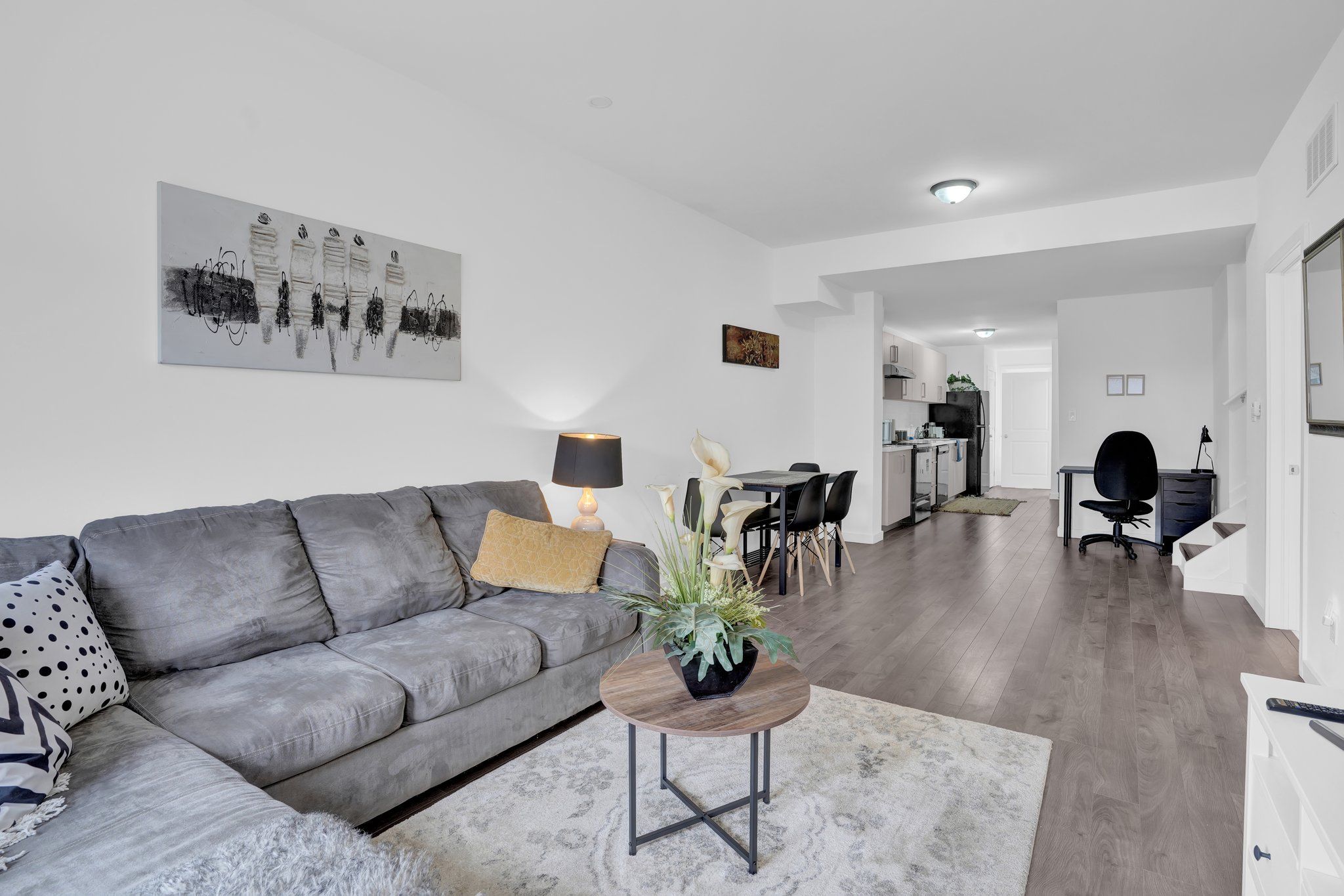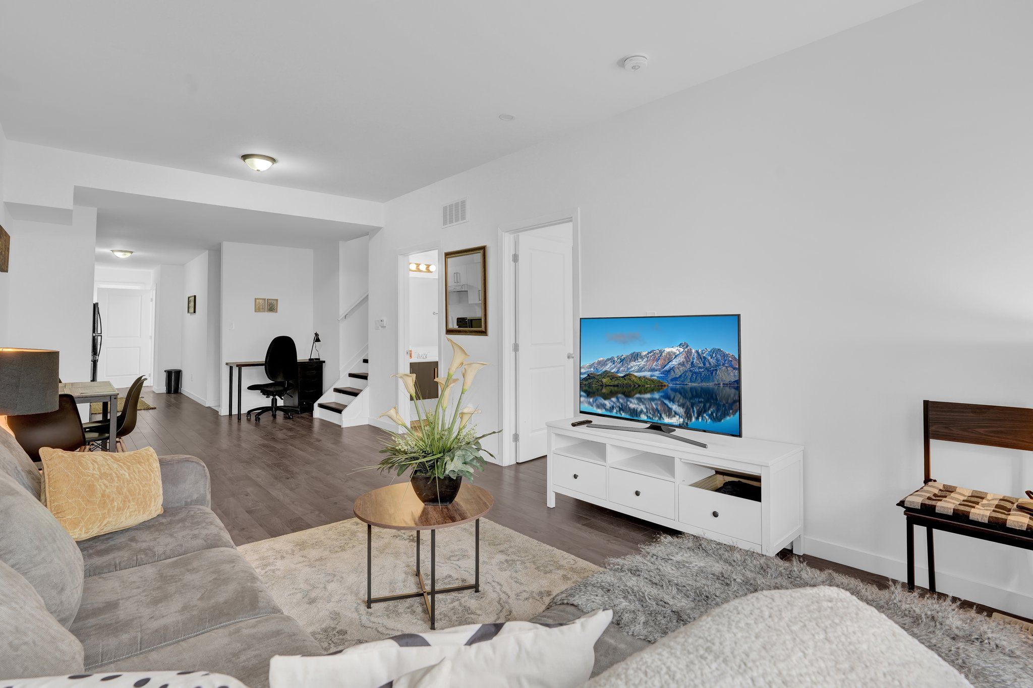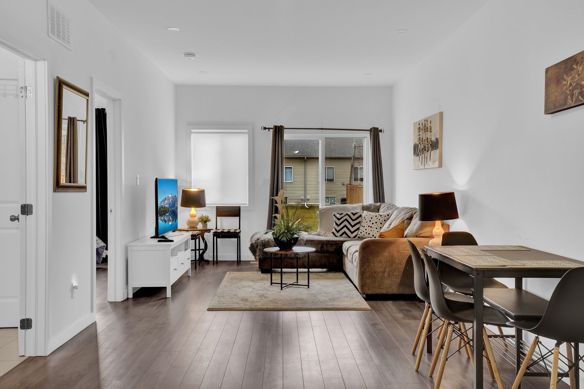 • Bright living area featuring stylish pot lights.
