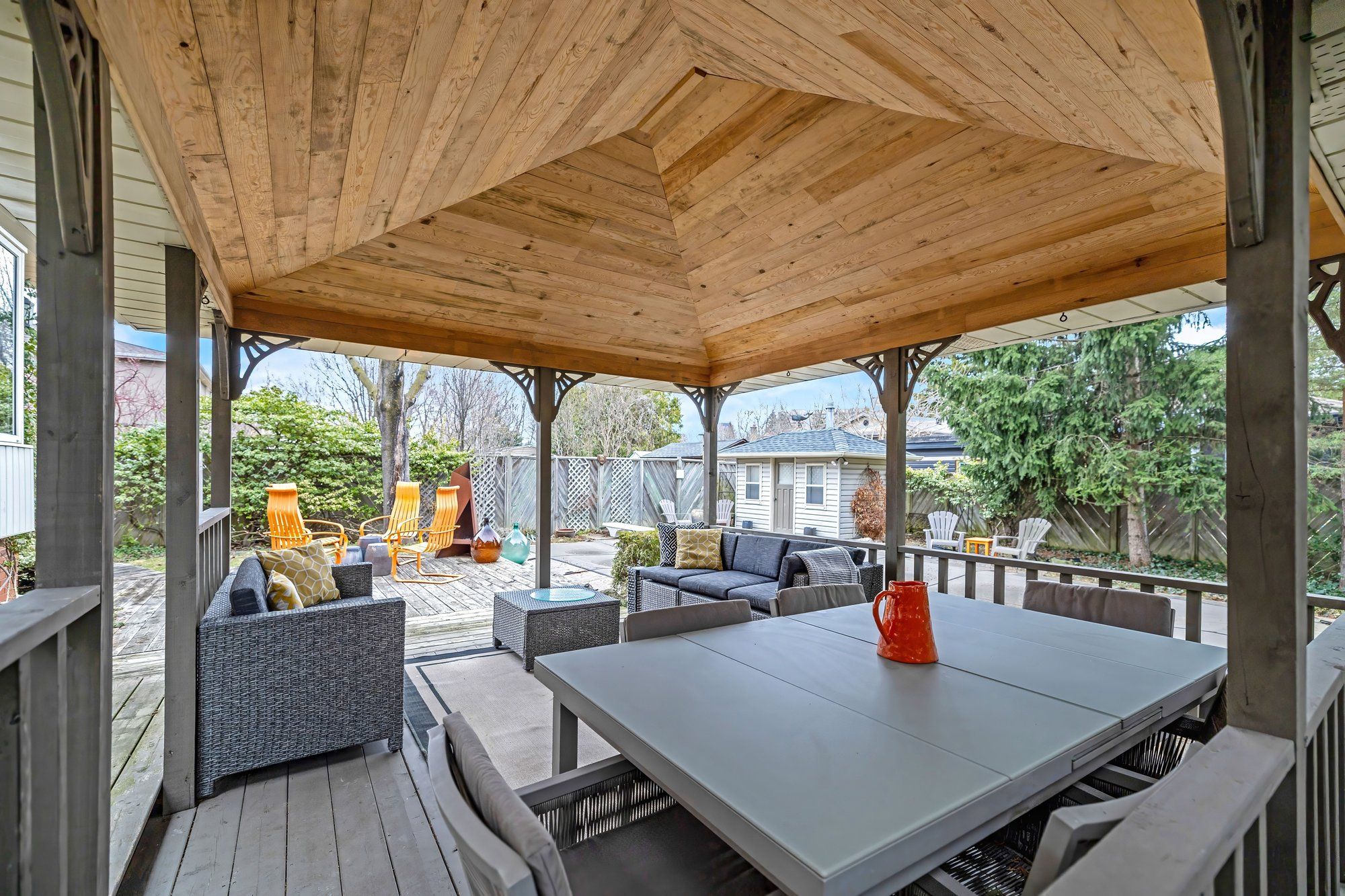 • Backyard oasis includes an inground pool, gazebo, and entertaining deck.