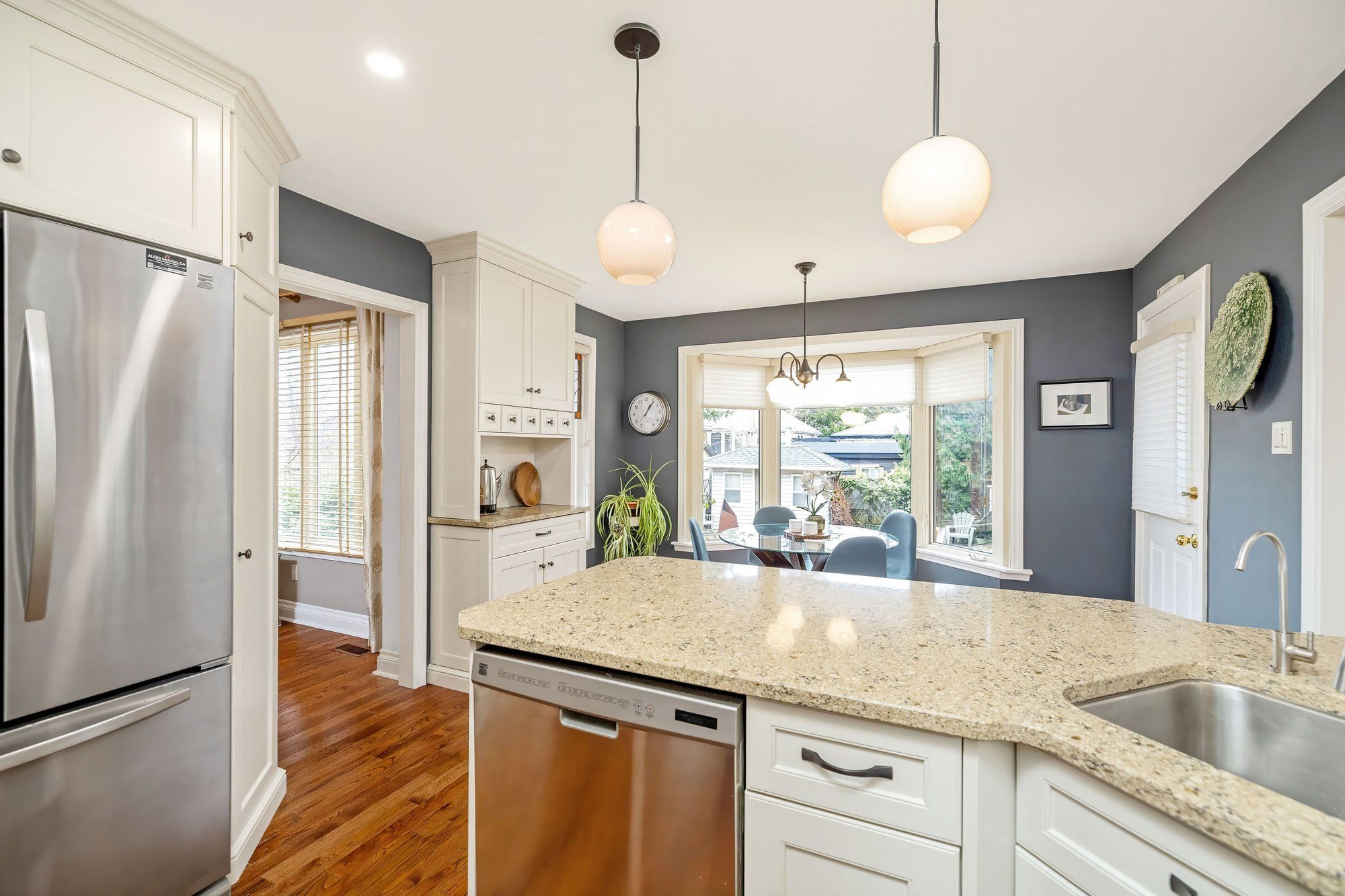• Modern kitchen with stainless steel appliances and granite countertops.