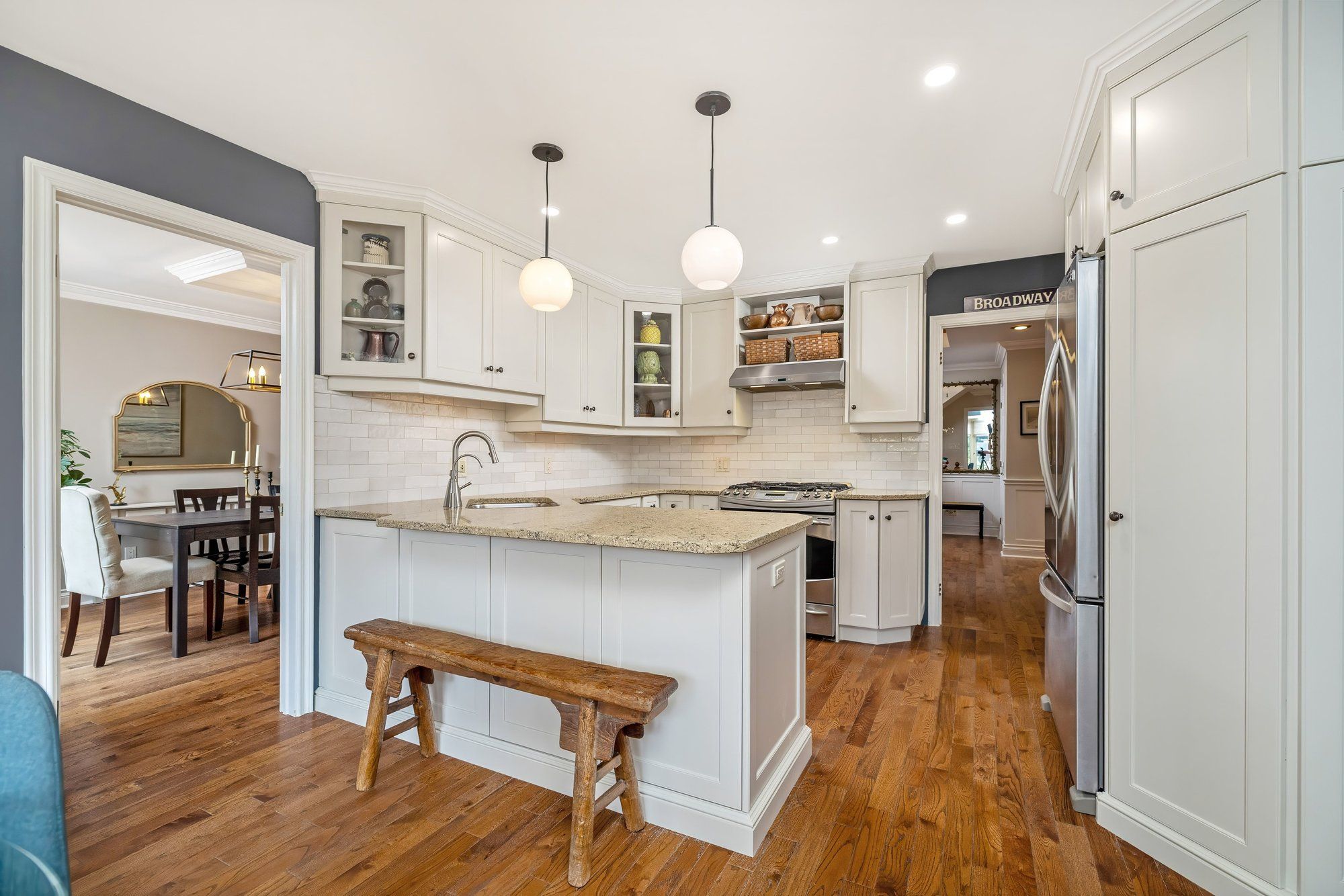 • Custom kitchen featuring granite countertops and stainless steel appliances.
