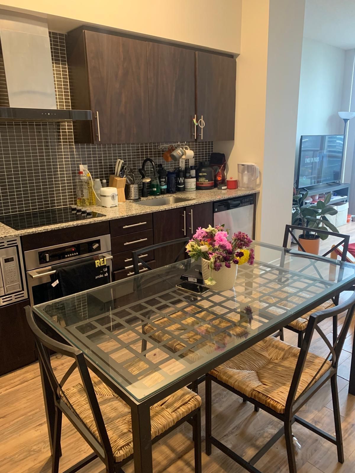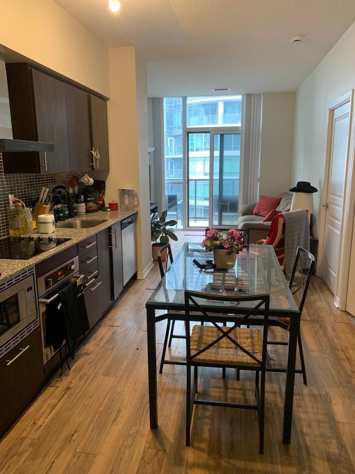 Welcome to your own private retreat in the sky at 352 front street west, suite 2304. This beautifully designed 1 bedroom + den suite offers a perfect blend of comfort and style, with approximately 570 sq. Ft. Of thoughtfully laid-out living space, plus an open balcony where you can unwind and take in the warm southern exposure and panoramic city views. From the moment you step inside, you'll feel the openness created by the 9-foot ceilings and floor-to-ceiling windows that flood the space with natural light. The modern kitchen features granite countertops and flows seamlessly into the open-concept living and dining area-perfect for relaxing evenings or hosting friends. The versatile den gives you the flexibility to create a home office, reading nook, or extra space tailored to your lifestyle. Beyond your suite, you'll enjoy access to exceptional building amenities designed to elevate your everyday living-from a fully equipped fitness center, spinning and yoga/pilates studios, to a sauna, theatre/media room, guest suites, and a stunning rooftop patio. Step outside and you're in the heart of it all-just moments to ttc, union station, rogers centre, the gardiner expressway, and toronto's vibrant entertainment district. This is more than just a condo-it's a place to live, recharge, and truly enjoy everything downtown toronto has to offer.