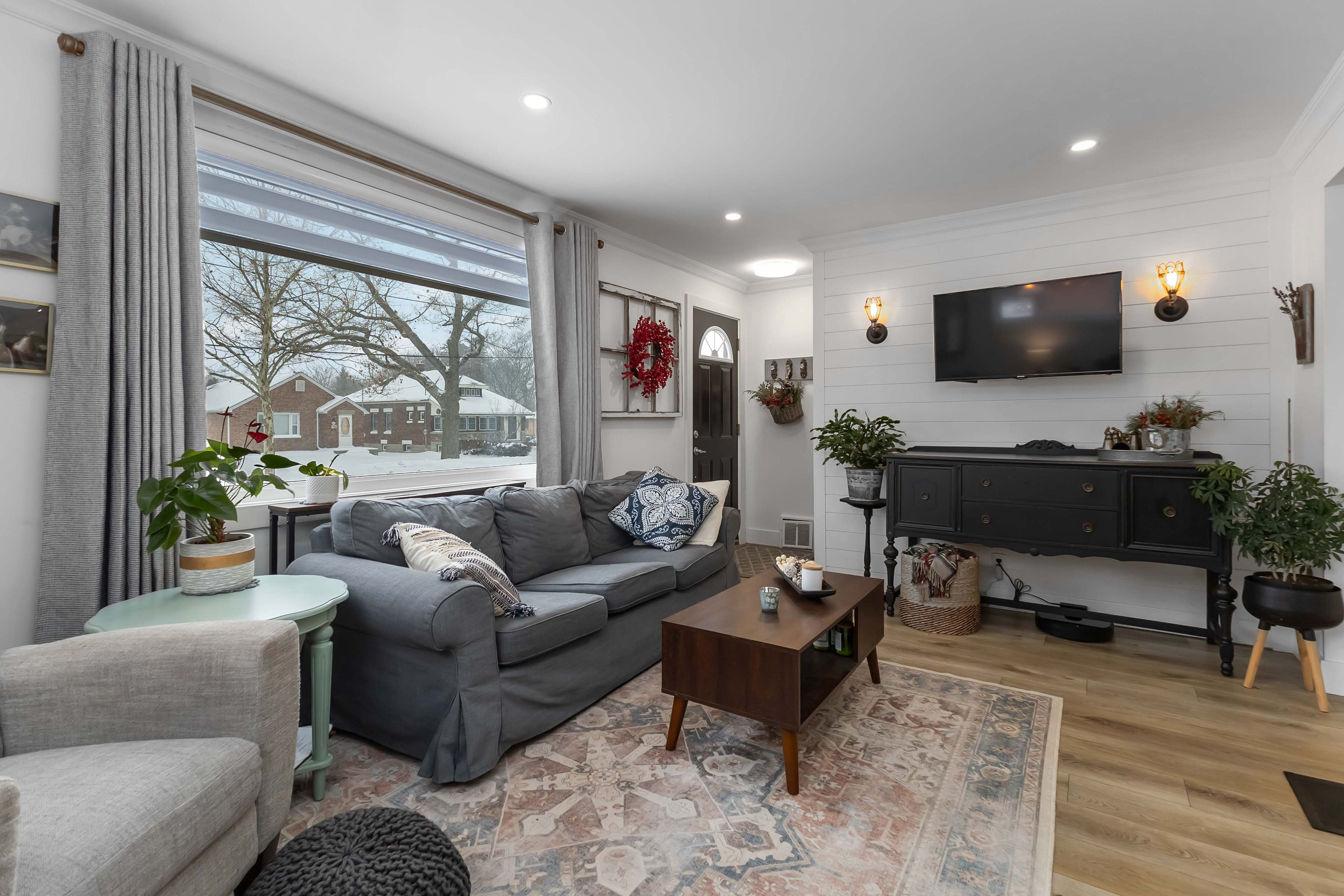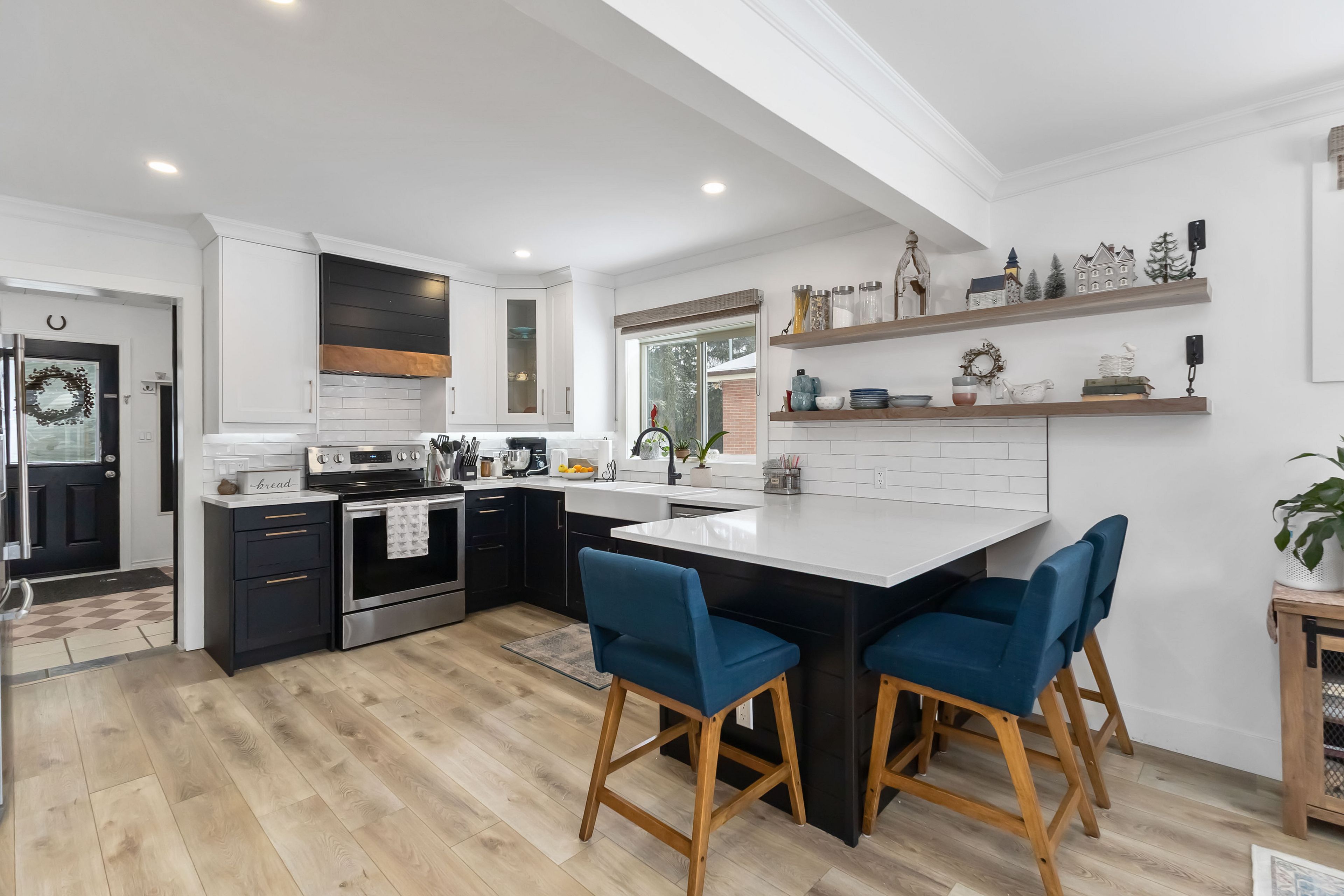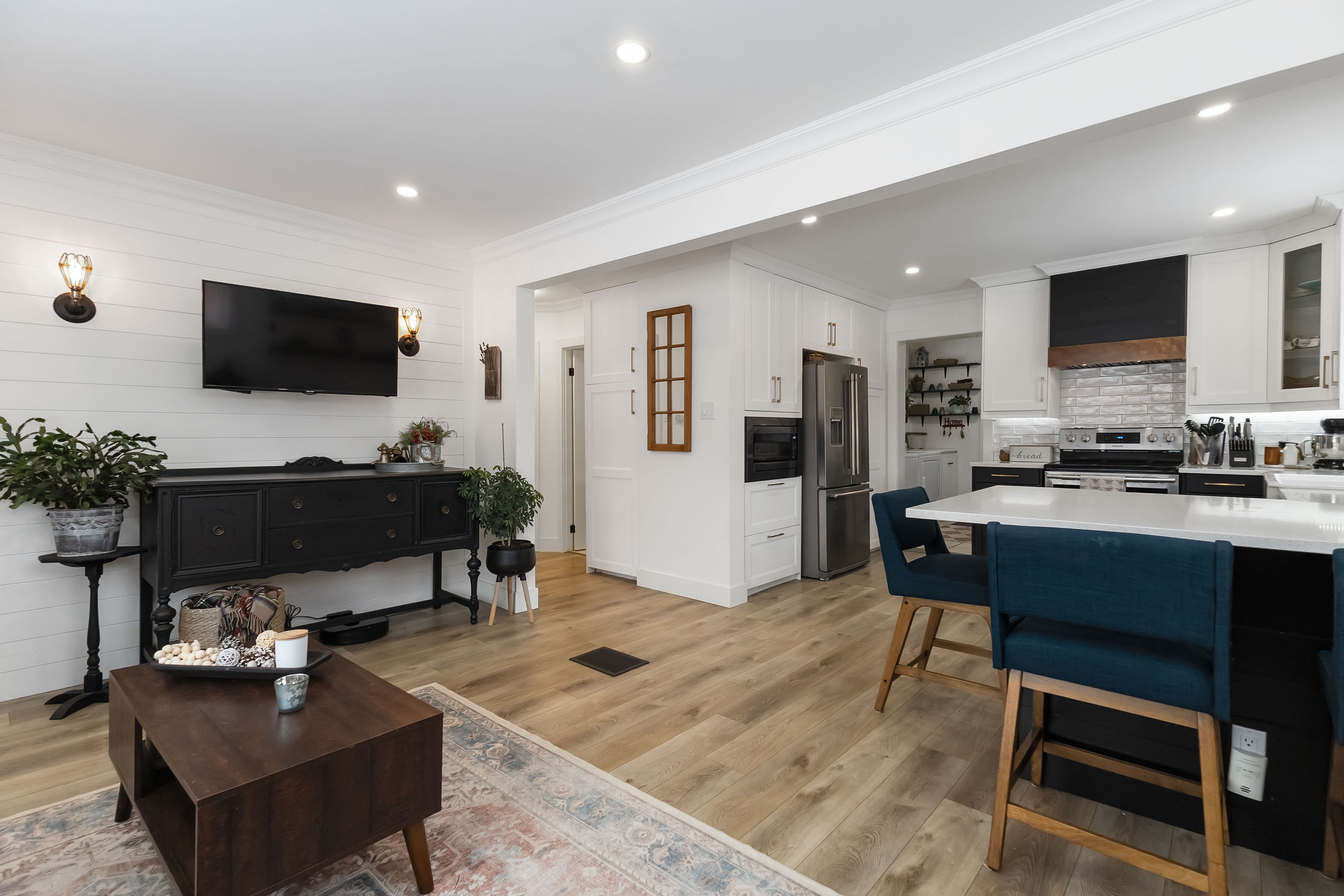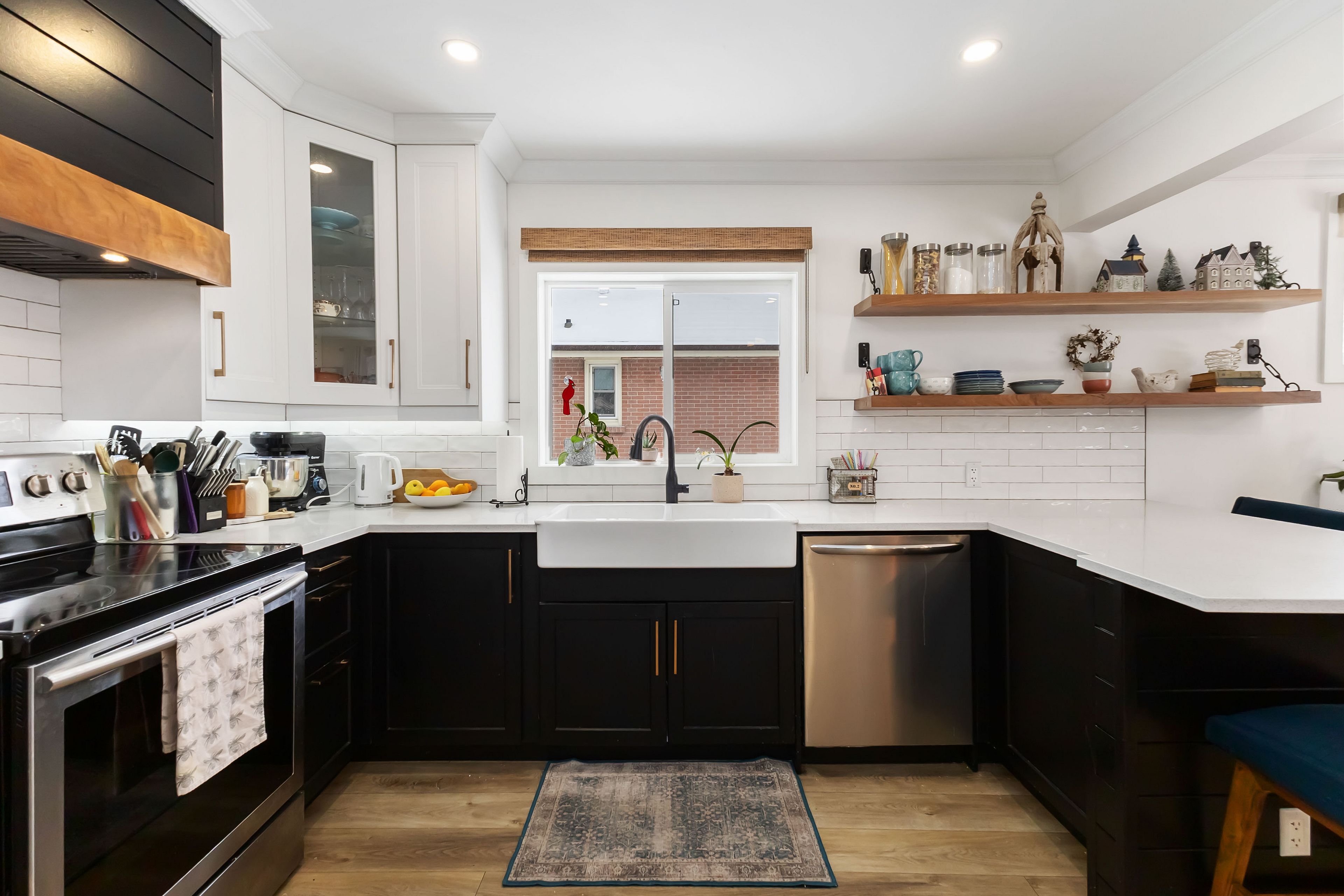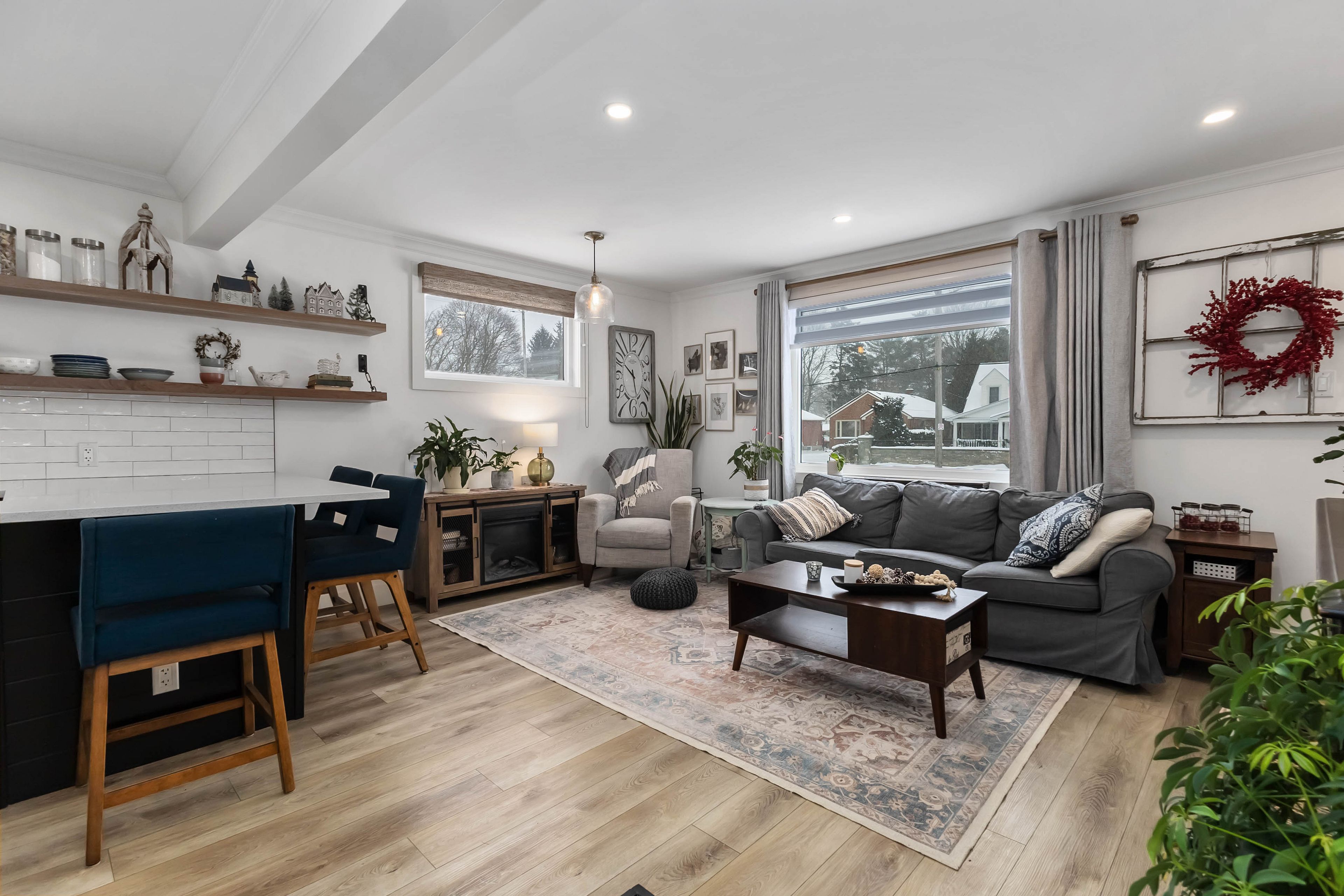 • Fully renovated kitchen with new cupboards and quartz countertop for modern cooking.