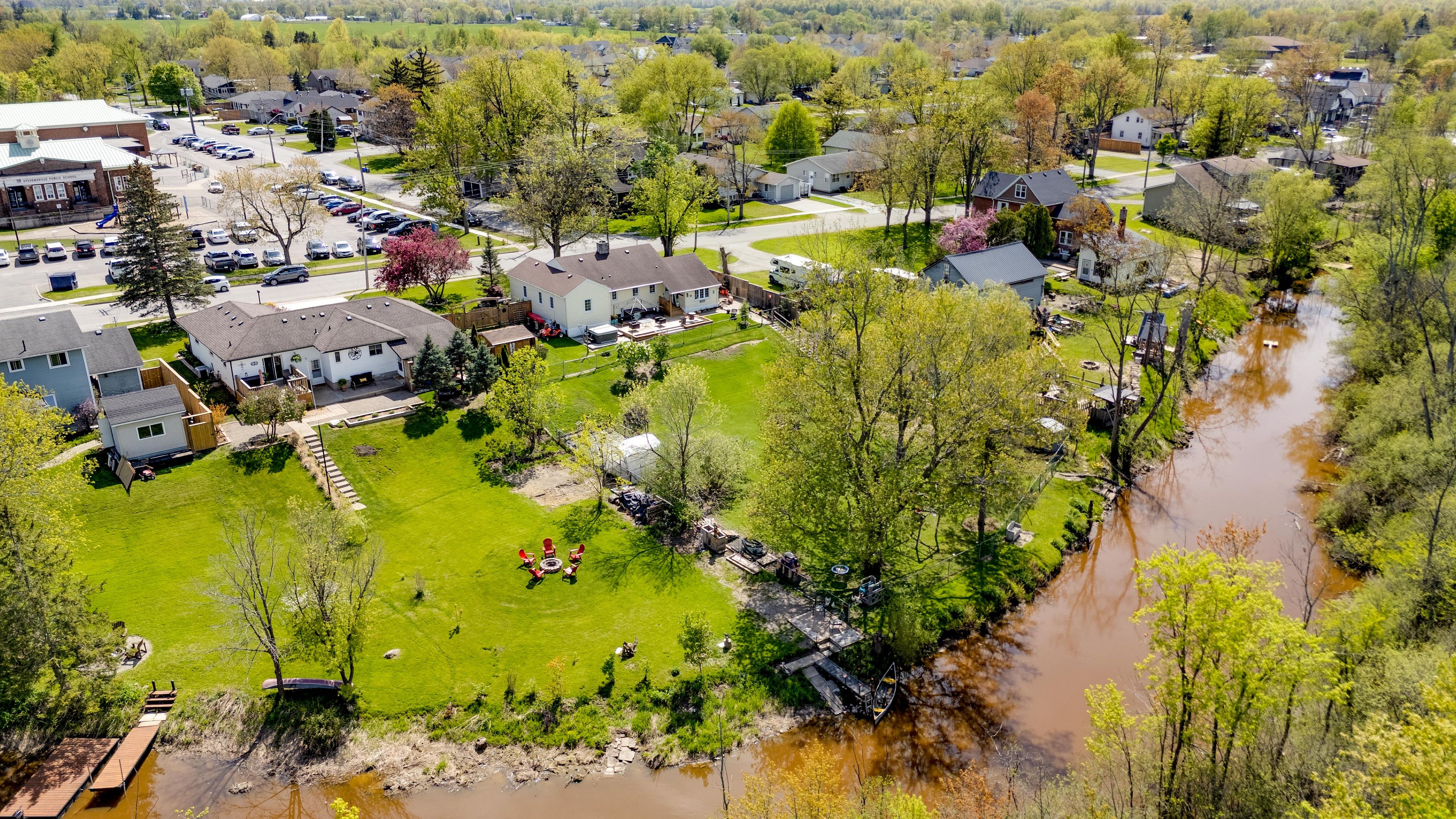 Discover the perfect blend of serene waterfront living and authentic small-town charm at 3522 east main street. This beautifully updated creekside bungalow is nestled in the heart of stevensville, a community cherished for its family-friendly atmosphere and peaceful pace. Set on one of the largest water lots on the street, the property extends an impressive 230 feet, sloping gently to the edge of black creek. Whether you enjoy morning kayaking, afternoon fishing, or simply watching the water from your backyard, this rare find offers a private sanctuary for outdoor enthusiasts. The home itself radiates modern comfort with significant 2021 upgrades, including a double-wide poured concrete driveway, a stylish front entry, and a gas fireplace with a tiled backdrop. The main floor offers a bright, open feel, while the finished basement provides incredible versatility. Featuring a third bedroom, a two-piece bath, a separate entrance, and a gas stove hookup, the lower level is perfectly positioned for a seamless conversion into an in-law suite or a private guest retreat. Essentials like an owned tankless on-demand hot water heater and updated electrical systems ensure complete peace of mind. Location is everything, and this home places you at the center of the best of niagara. You are less than five minutes from local golfing and the cozy dining spots of stevensville, with the boutique shops of historic downtown ridgeway and the sandy shores of crystal beach just a short drive away. For commuters or weekend explorers, quick access to the qew means you are only 15 minutes from the peace bridge and 20 minutes from the world-class amenities of niagara falls. Experience the safety and soul of a small-town community with the luxury of a waterfront lifestyle. This is more than just a home; it is a gateway to a better way of living. Your family's creekside retreat awaits.