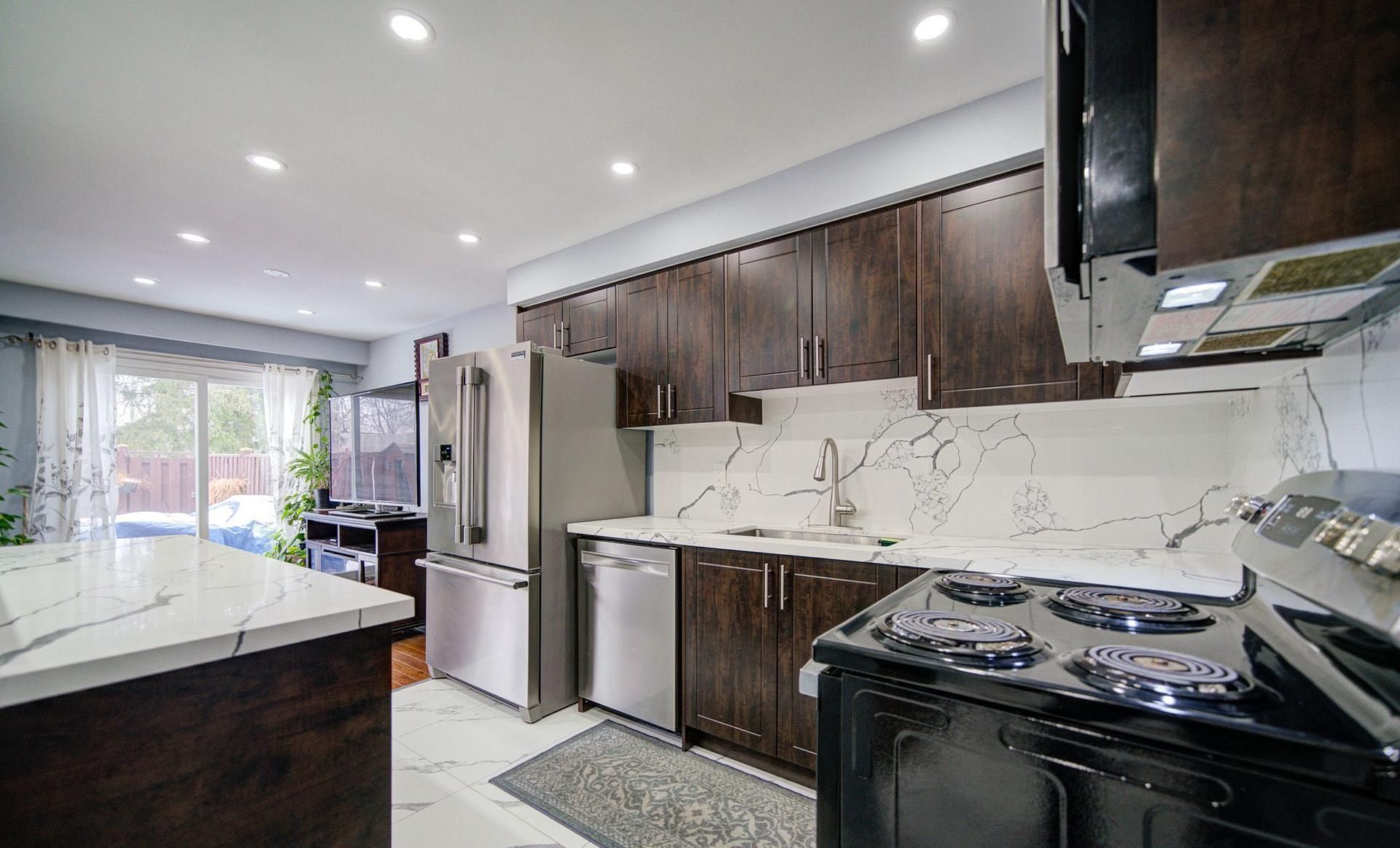 Beautiful end-unit townhouse in malton with low maintenance fees! This spacious home features laminate flooring and pot lights throughout the main floor, a stunning renovated kitchen with granite countertops and stainless steel appliances, and a functional layout with 4 bedrooms and 3 washrooms. Heated garage and private backyard add to the comfort and convenience. Finished basement includes a bedroom, bathroom, and kitchen-ideal for extended family or potential rental income. Conveniently located close to transit, major highways, and shopping