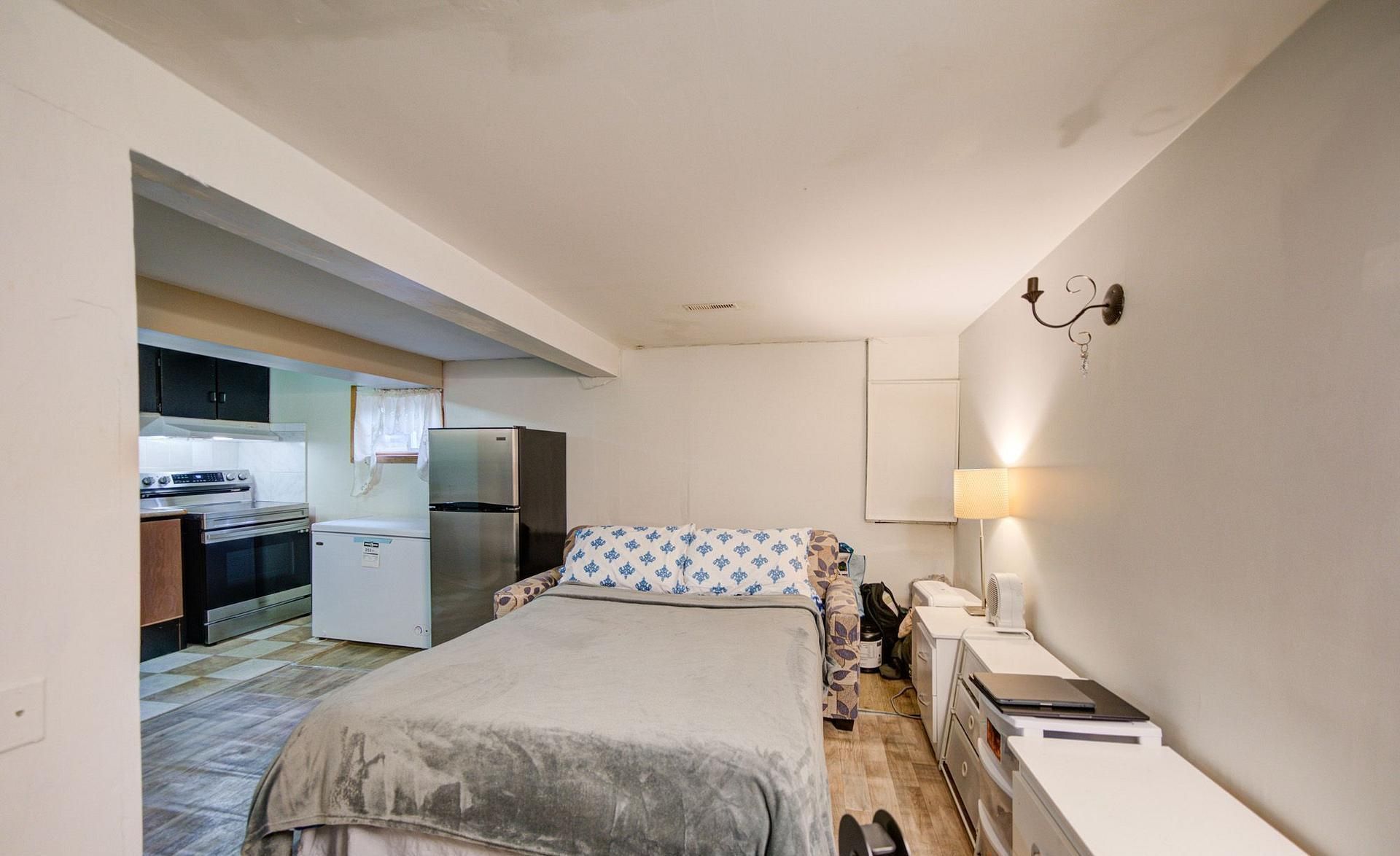 • Finished basement includes bedroom, bathroom, and kitchen for versatility.