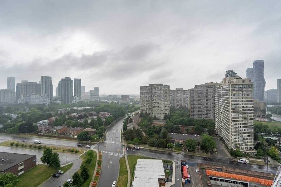 9 ft floor-to-ceiling windows in a well-maintained luxury building (2010). Open-concept layout featuring a modern kitchen with granite countertops, island, and backsplash. Spacious primary bedroom with walk-in closet and 4-pc ensuite. Very good-sized second bedroom. Low maintenance fees compared to similar units. Building renovated approximately 4 months ago with excellent amenities. Prime location walking distance to square one, mississauga city centre, shopping, transit, elm public school, and steps to the new lrt line. Buyer to receive on closing: $2,000 credit toward new flooring ( master bedroom), $5,000 credit toward appliances, $2,000 credit toward painting, allowing buyer to renovate and customize to their own taste.
