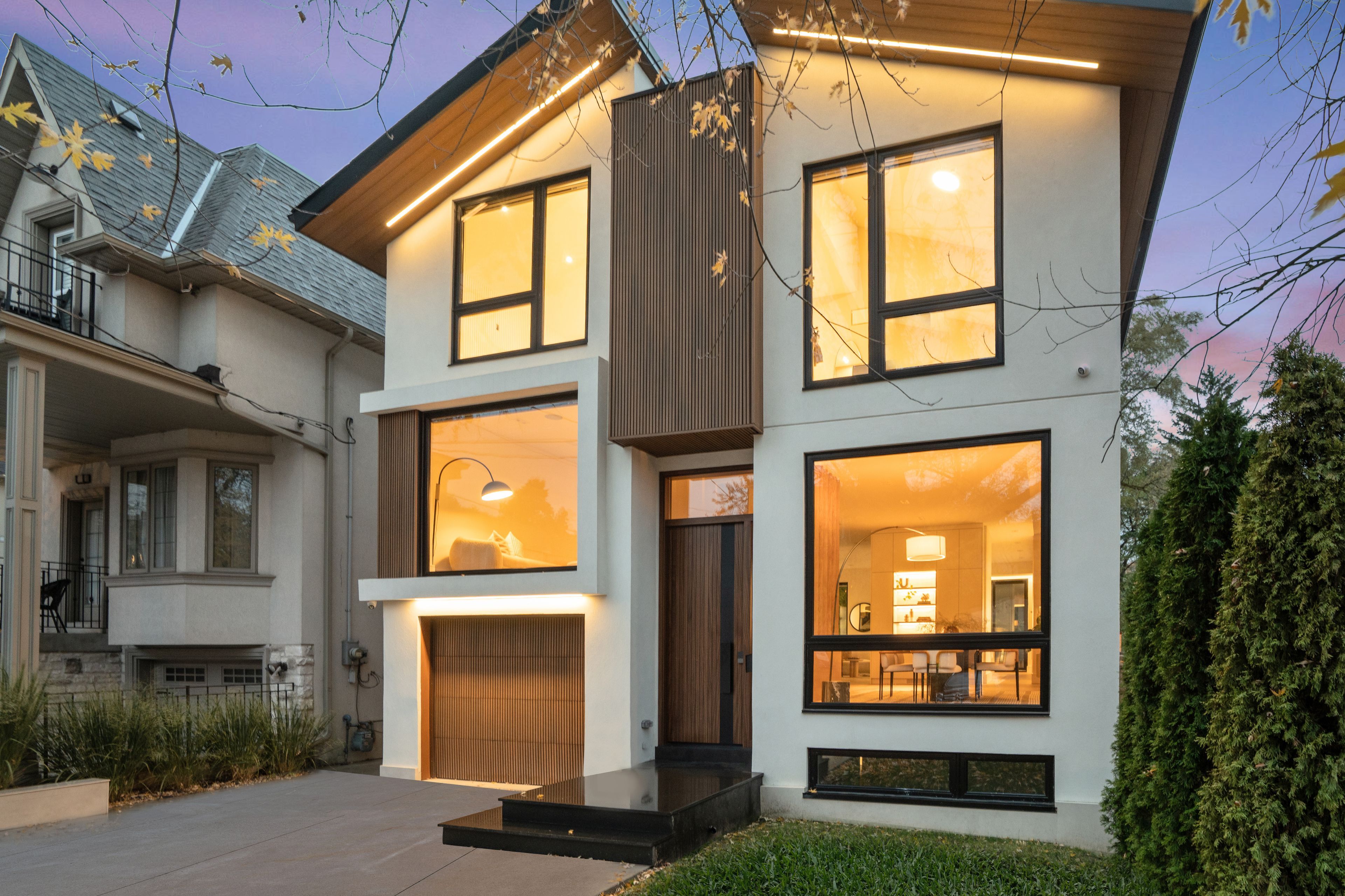 An architectural standout in midtown toronto. Built by its owner to an exceptional standard of quality, craftsmanship & discerning taste. Offering 3,665 sqft. Of luxurious living space above grade, including a magnificent walk-out basement. Every detail hand-selected, every choice intentional. An inspired blend of scandinavian & contemporary design, with solid white oak accents, artful ambient lighting & luxury finishes at every turn. Control 4 automation & in-ceiling speakers throughout. Expansive & bright principal spaces feature floor-to-ceiling windows, oak floors & bespoke built-ins, anchored by elegant floating stairs. Family room w/ linear gas fireplace, travertine surround, integrated seating & walk-out to terrace overlooking rear gardens. Chef-inspired custom kitchen features premium wolf/miele appliances & centre island w/ waterfall-edge porcelain countertop. Cozy loft lounge w/ oversized windows overlooking front gardens. Stylish primary suite w/ soaring vaulted ceilings, private balcony, walk-in closet w/ illuminated built-ins & spa-quality ensuite w/ curbless shower, freestanding tub & heated porcelain floors. All bedrooms w/ custom built-in closets & ensuites w/ heated floors. Ground-level basement boasts impressive scale for entertaining, floor-to-ceiling windows, fully-outfitted bar, linear gas fireplace w/ stone surround, walk-out to backyard, nanny suite & 3-piece bathroom. Backyard retreat features covered outdoor living room w/ built-in coyote barbecue, stone countertops, integrated seating & tv niche. Mature tree cover & privacy fences w/ custom lighting. Striking exterior presence w/ fluted wood paneling, custom wood soffits & fascia, 12-ft. Solid mahogany front door, heated steps & curated lighting. Prime location in midtown's most coveted family neighbourhood, minutes to yonge-eglinton/leaside amenities, sherwood park, top-rated schools & public transit.