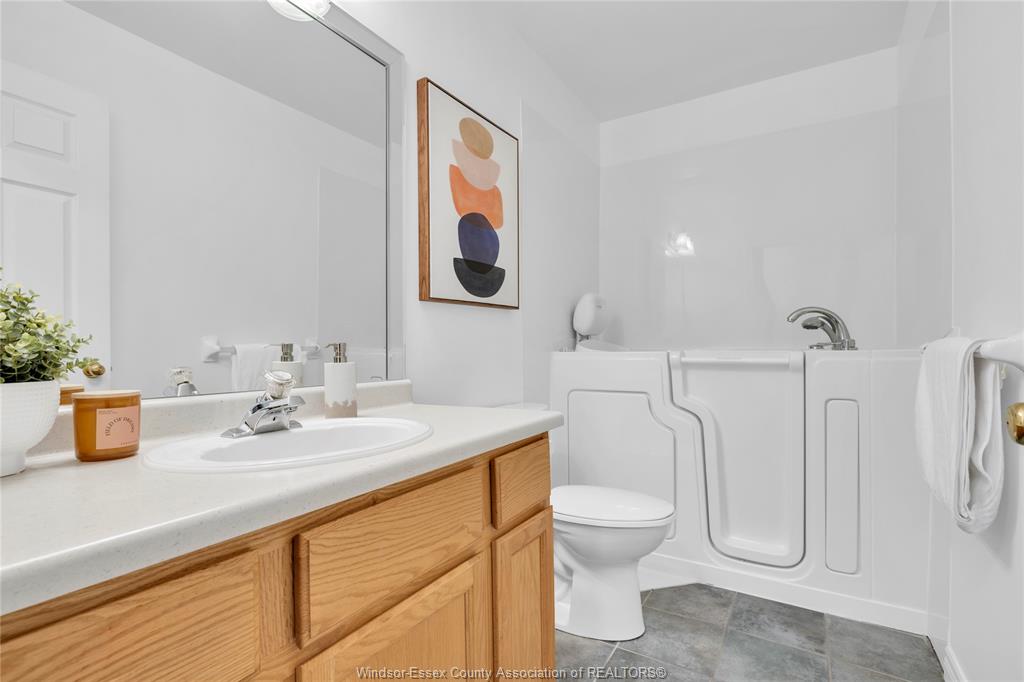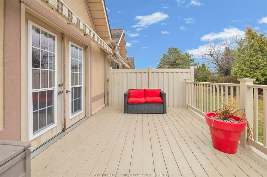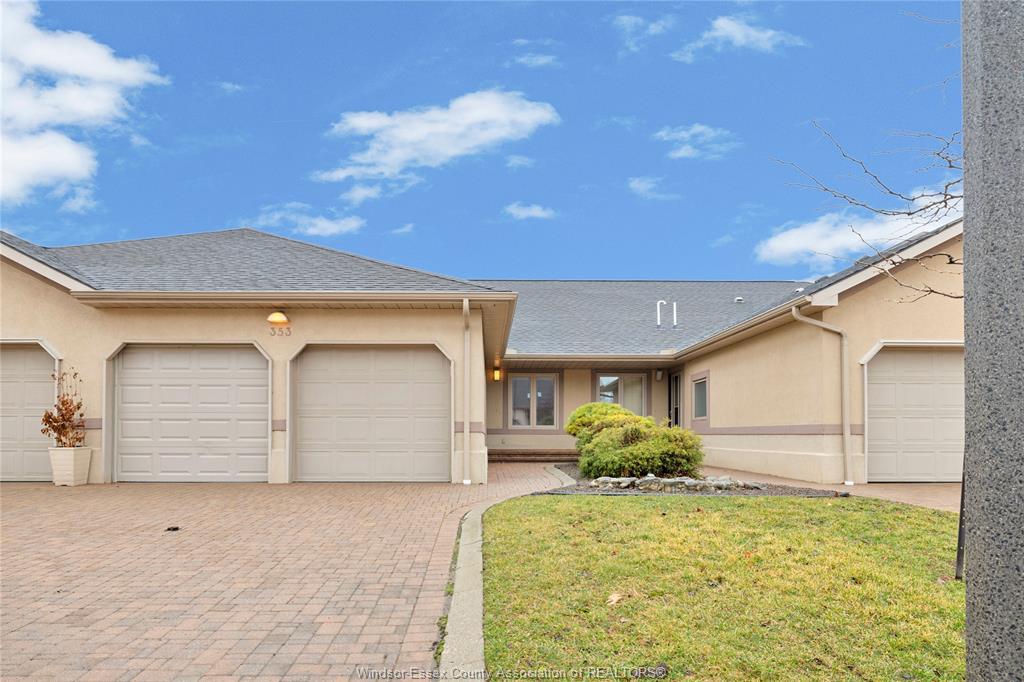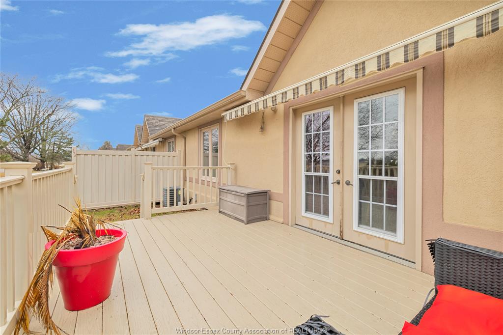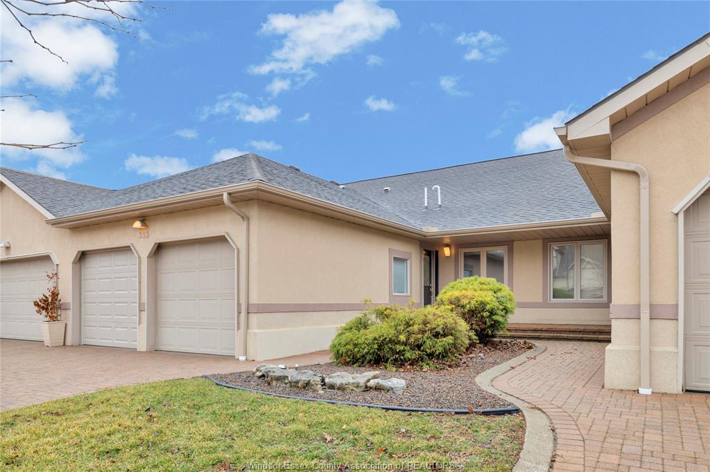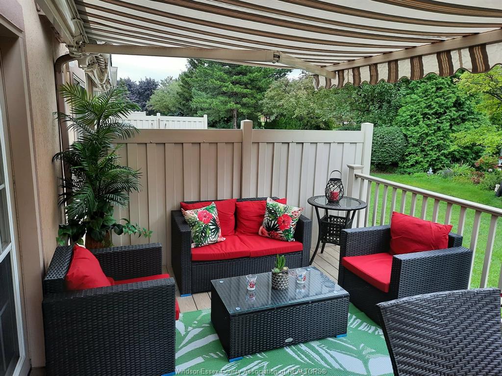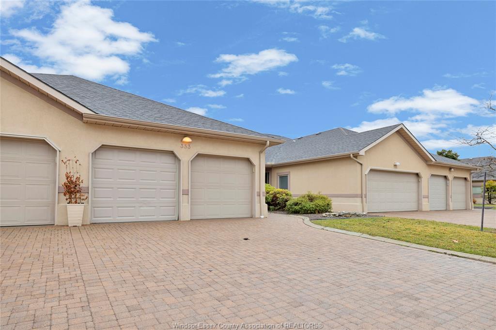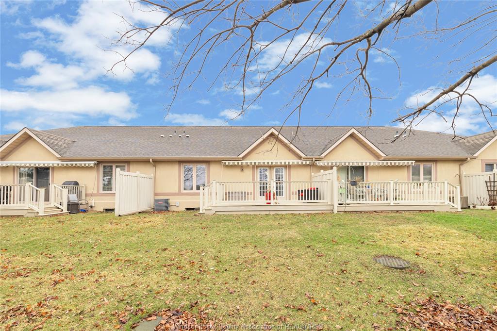 Discover this stunning ranch style townhouse nestled in a highly sought after neighbourhood of tecumseh. Boasting an everything on one floor, spacious design with 2 large bedrooms, 3 baths (including a walk-in bathtub for added comfort and accessibility), open concept kitchen/dining/living room and a main floor laundry. The basement includes a 2 pc-bath, large rec room, utility room and lots of space for storage. This unique townhome includes indoor entry to the 2-car garage and expansive driveway. Follow the garden doors to the outdoor deck with retractable/motorized canopy for shade and privacy. With condo fees of $495/month enjoy peace of mind as you are covered for all of your exterior mainenance, including driveway, roof, windows, exterior stucco, sprinklers, streetlights, lawn and garden care, as well as snow and leaf removal. A big bonus is your condo fee also includes enjoyment of the village grove tennis/pickleball courts and outdoor pool. You are a hop-skip-and-jump away from lakewood walking park and trails, the waterfront, restaurants, banks, grocery store and more.