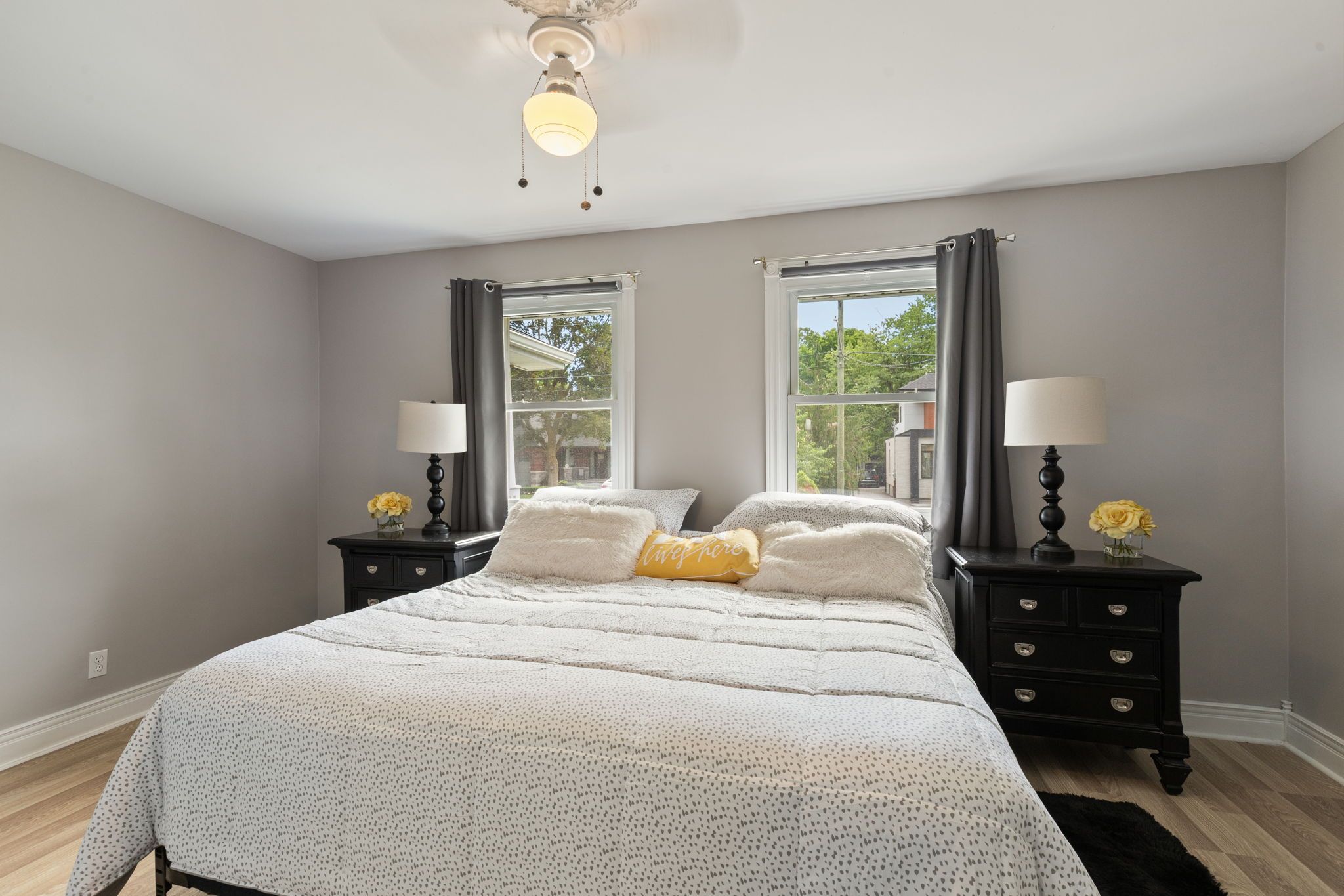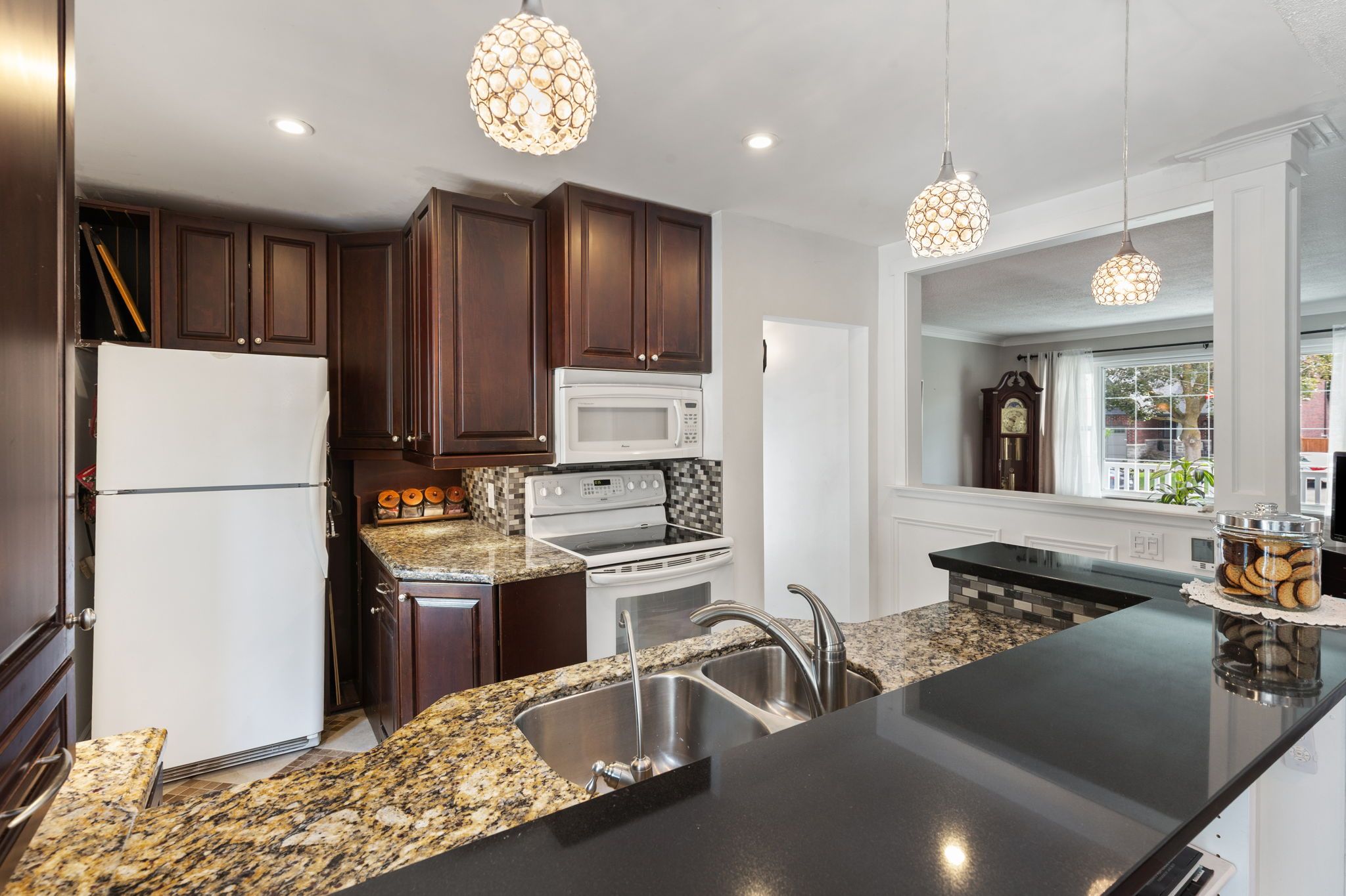 • Updated bungalow on a rare 50 ft lot backing onto parkland.