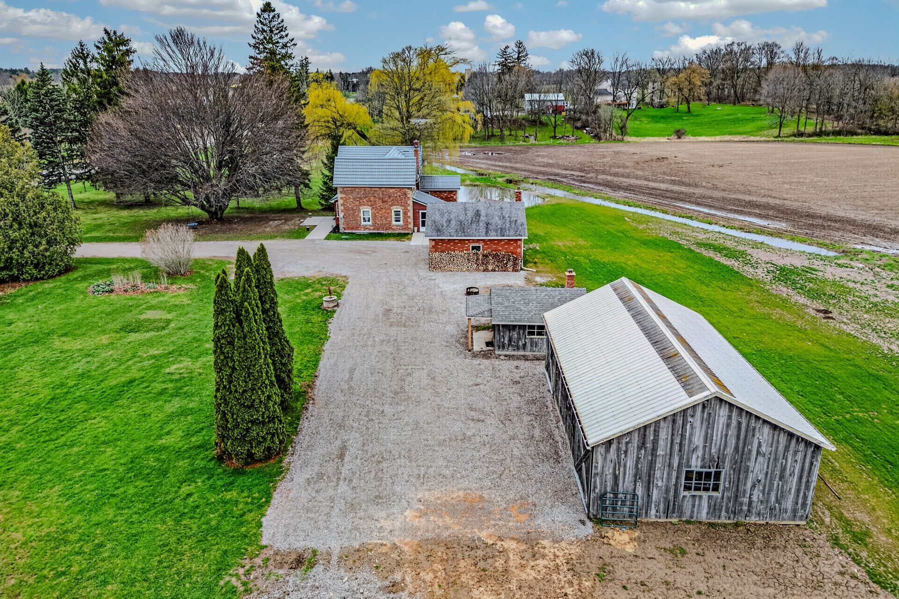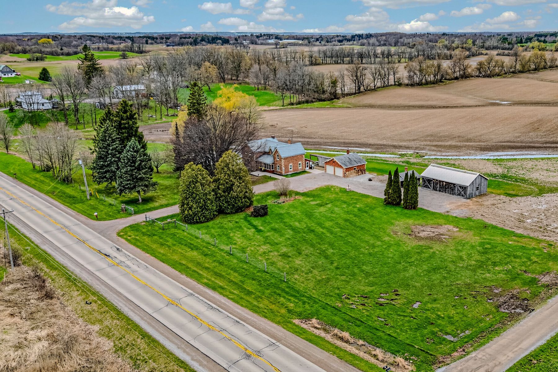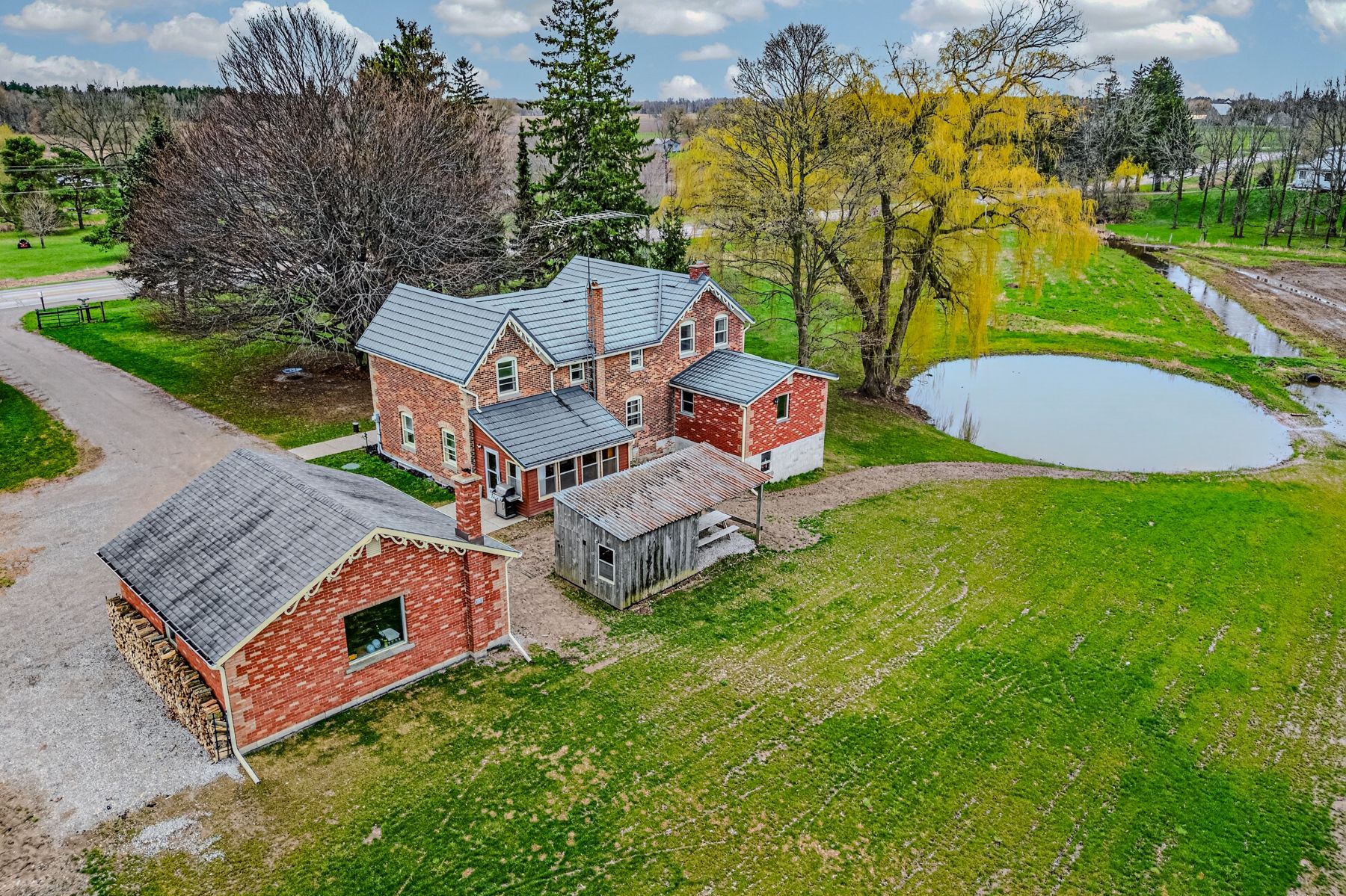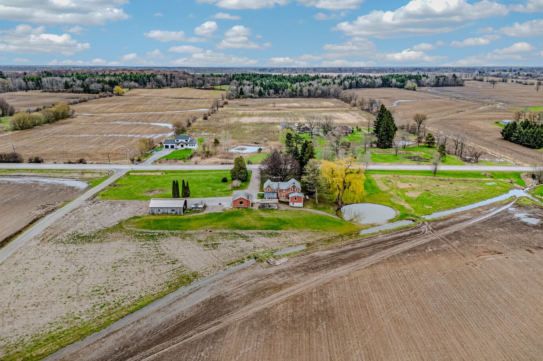 Welcome to this charming two-storey century home set on an expansive 1. 47-acre lot, offering a rare blend of character, space, and peaceful rural surroundings. Nestled among picturesque farmers' fields, this property provides a serene lifestyle while still delivering the functionality today's homeowners seek. The main floor features a thoughtful layout with a spacious living room and formal dining area, ideal for both everyday living and entertaining. A galley-style kitchen offers efficiency and charm, while a dedicated office provides a quiet space for remote work or study. Two bathrooms on the main level add convenience and flexibility for family and guests. Upstairs, you'll find three comfortable bedrooms along with a versatile recreation room-perfect as a family lounge, playroom, or additional living space. Outdoors, the property truly shines. The generous lot includes a double car detached garage, a small workshop, and a large pole barn/shop-ideal for hobbyists, storage, or those seeking a home-based workspace. A private pond enhances the natural beauty of the setting, creating a tranquil retreat right in your own backyard. With its timeless character, multiple outbuildings, and scenic surroundings, this unique property offers endless potential for families, hobby farmers, or anyone looking to enjoy country living at its finest.