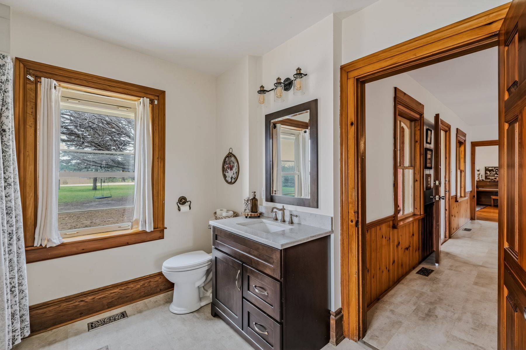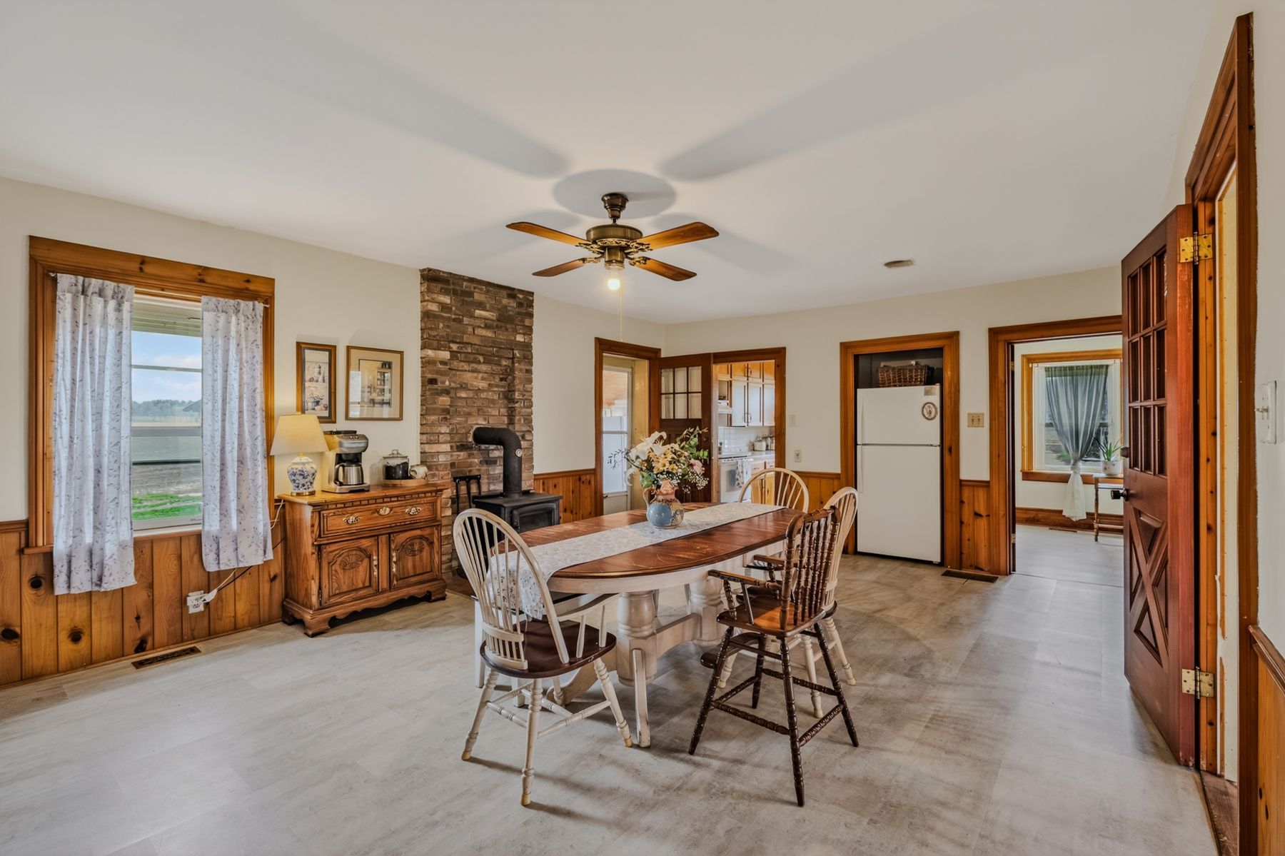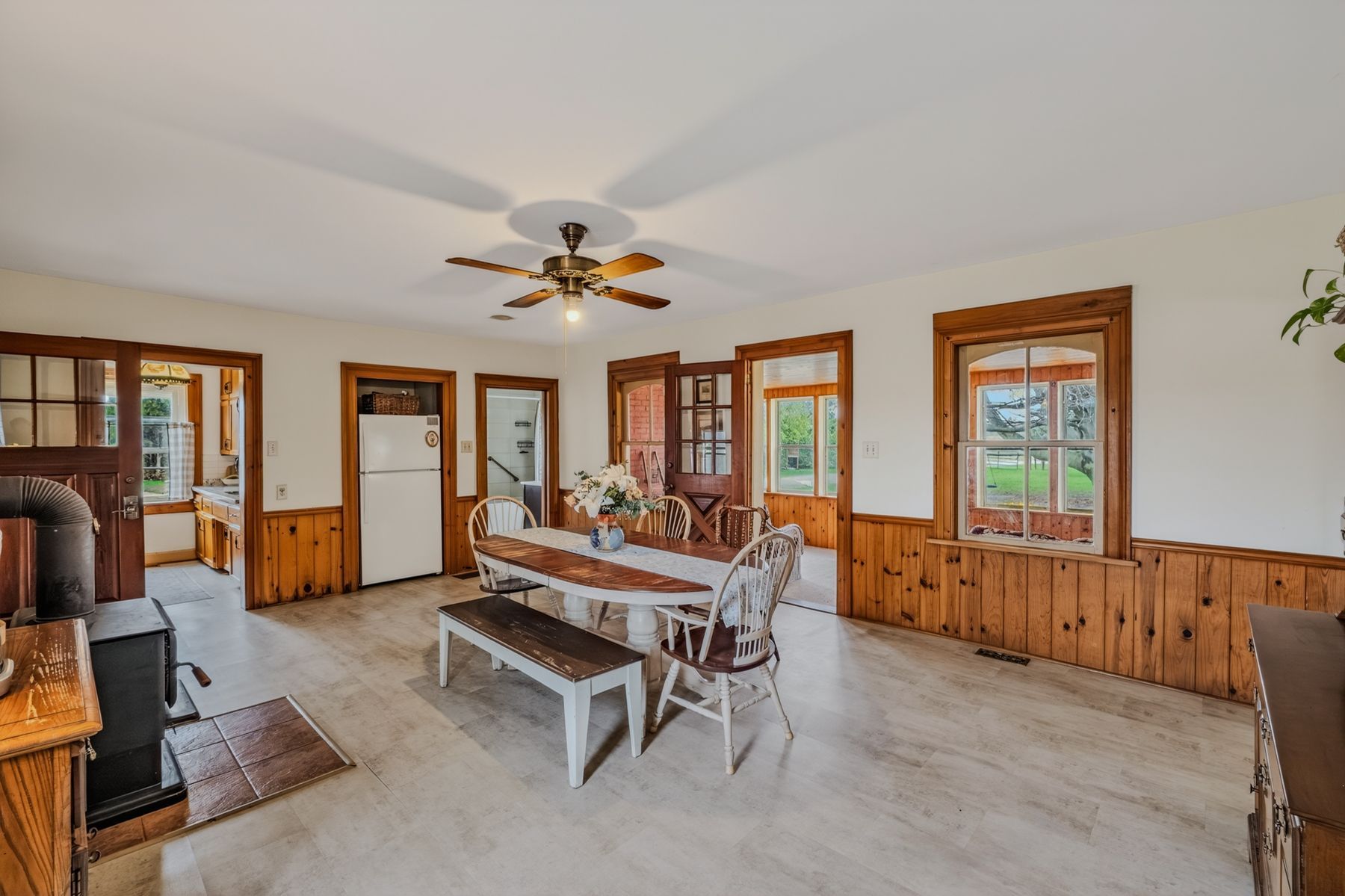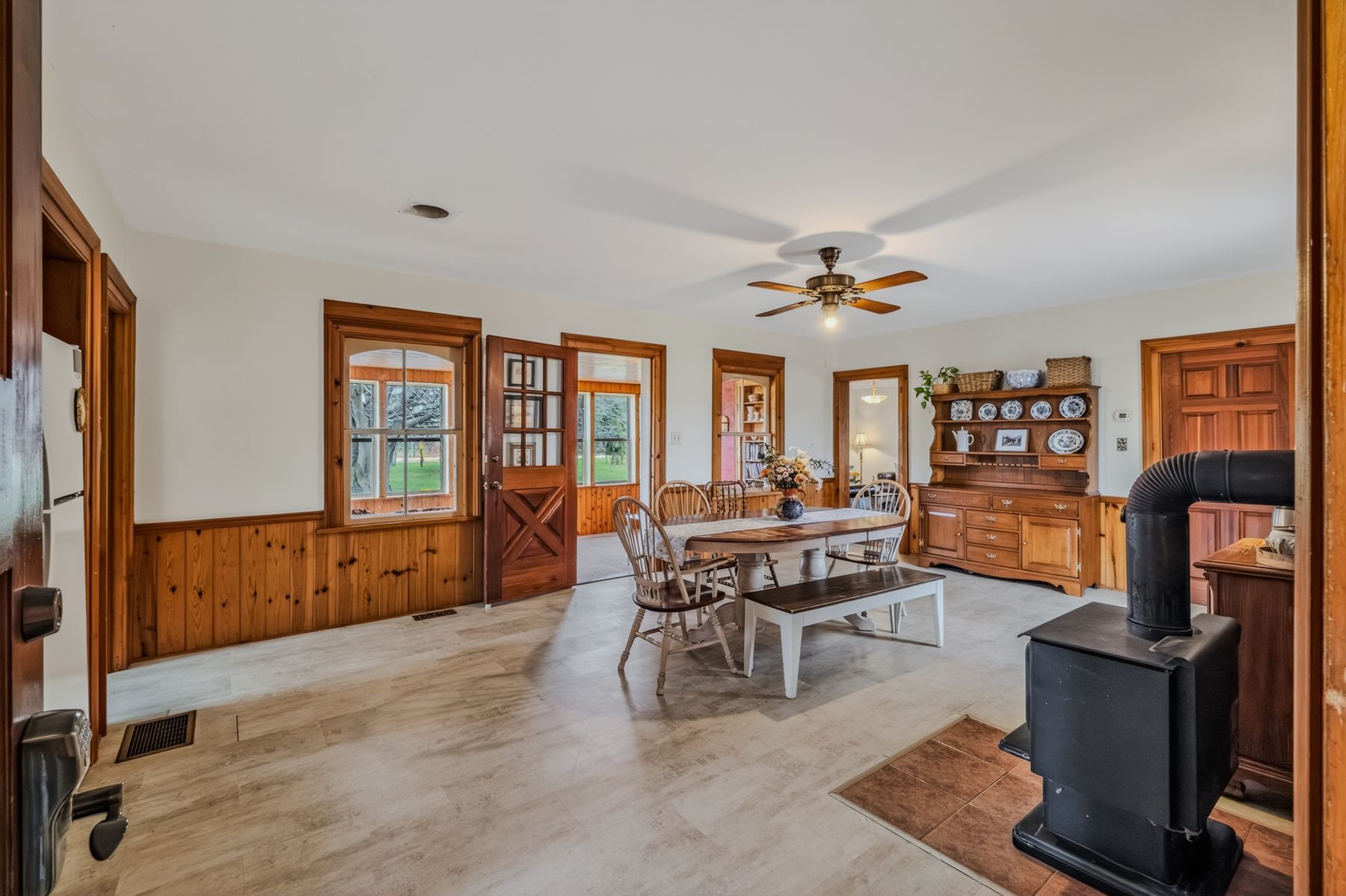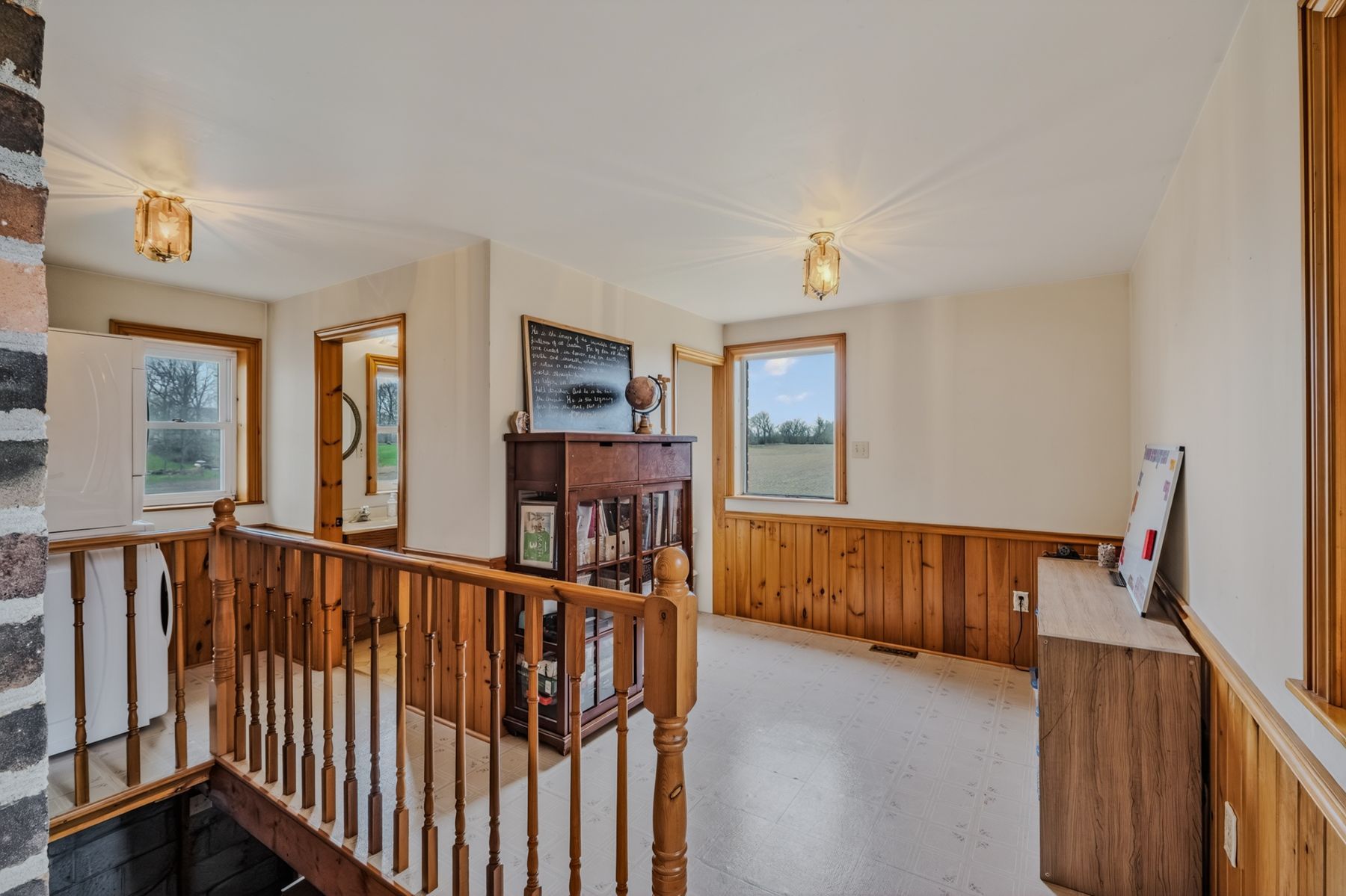 Welcome to this charming two-storey century home set on an expansive 1. 47-acre lot, offering a rare blend of character, space, and peaceful rural surroundings. Nestled among picturesque farmers' fields, this property provides a serene lifestyle while still delivering the functionality today's homeowners seek. The main floor features a thoughtful layout with a spacious living room and formal dining area, ideal for both everyday living and entertaining. A galley-style kitchen offers efficiency and charm, while a dedicated office provides a quiet space for remote work or study. Two bathrooms on the main level add convenience and flexibility for family and guests. Upstairs, you'll find three comfortable bedrooms along with a versatile recreation room-perfect as a family lounge, playroom, or additional living space. Outdoors, the property truly shines. The generous lot includes a double car detached garage, a small workshop, and a large pole barn/shop-ideal for hobbyists, storage, or those seeking a home-based workspace. A private pond enhances the natural beauty of the setting, creating a tranquil retreat right in your own backyard. With its timeless character, multiple outbuildings, and scenic surroundings, this unique property offers endless potential for families, hobby farmers, or anyone looking to enjoy country living at its finest.