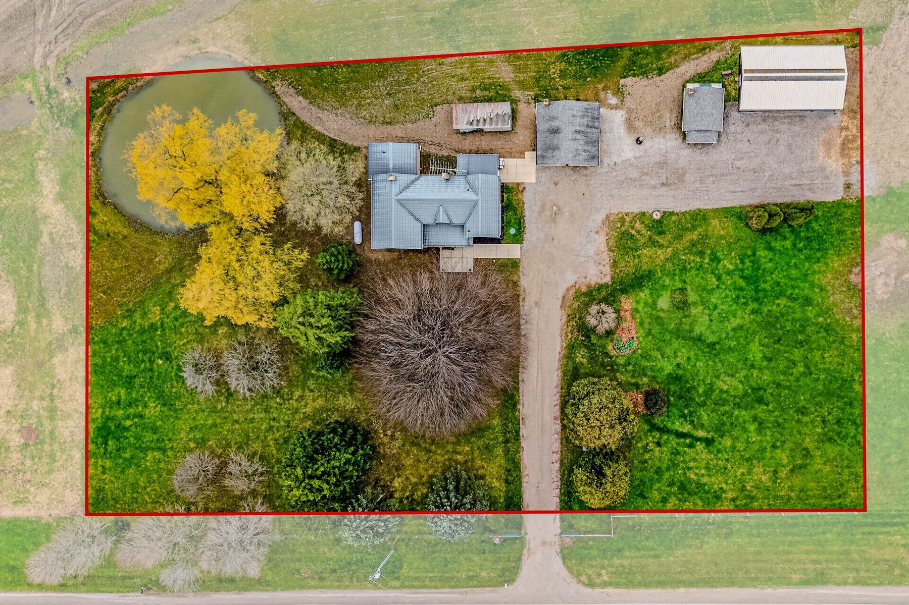 • Generous outdoor space with a double car garage, workshop, and pole barn.