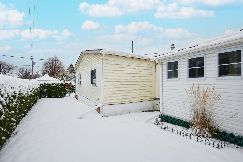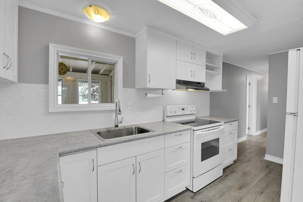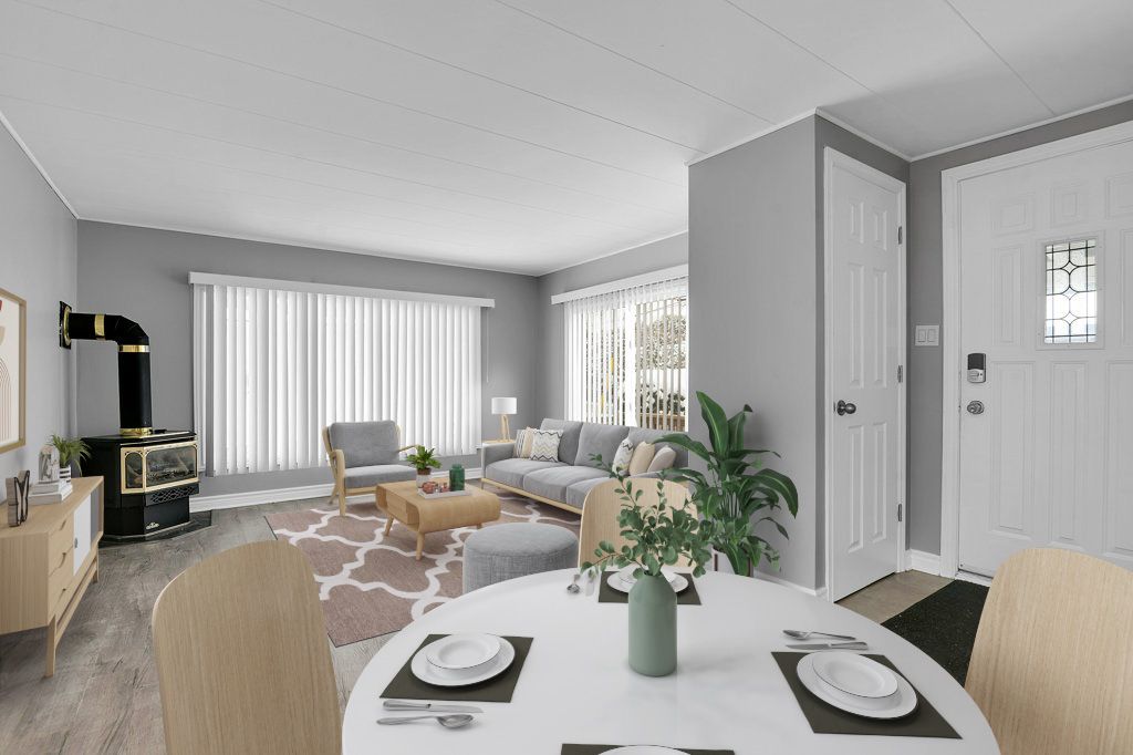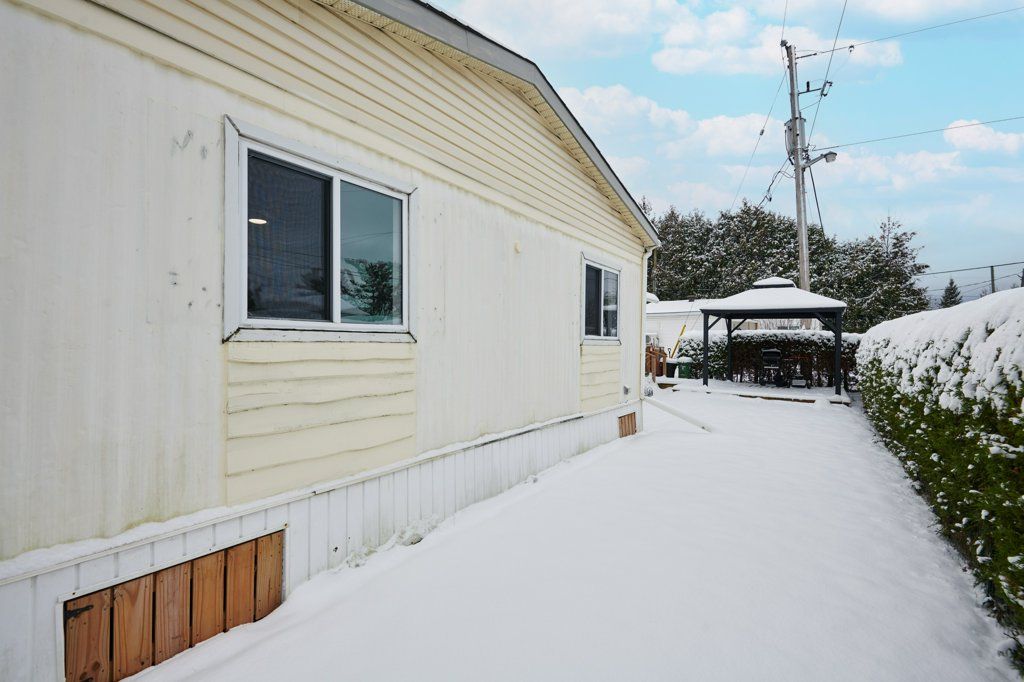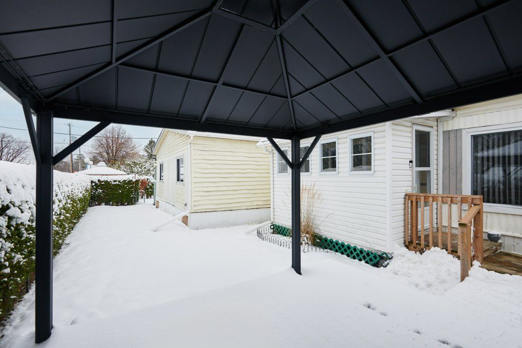 Move-in ready, single-level living in terra nova estates! Welcome to this bright, beautifully updated 1,100 sq. Ft. Home designed for easy living, everyday comfort, an affordable path to real homeownership. Well maintained and thoughtfully laid out, this spacious carpet-free home features newer laminate flooring, a warm gas fireplace, and a large west-facing window that fills the living room with natural afternoon light. The updated kitchen offers generous cabinetry and ample counter space for both daily living and entertaining, while a dedicated laundry room adds everyday convenience. A flexible sunroom expands the living space and can be used as a cozy sitting area, creative studio, indoor garden, or extra storage, keeping the home bright and adaptable. Outdoor living shines with an expansive front deck featuring a large gazebo, fully enclosed by mature hedging for exceptional privacy - perfect for entertaining, morning coffee, or relaxing evenings. The brand-new back deck with awning (2025) leads to a second private driveway with plenty of parking. Two storage sheds, one at each end of the lot, provide space for tools, seasonal items, or hobbies. Extensive updates ensure true turnkey ownership, including central air conditioning (2021), upgraded electrical panel, new subflooring, drywall, insulation, modern lighting, updated bathroom vanity, and fresh paint throughout. Monthly park fees include property taxes, road maintenance, snow removal, water, and sewer. Perfectly located just three minutes from the highway and five minutes from shopping, groceries, and amenities, this home offers the perfect balance of comfort and convenience. Park approval is required. The property includes 18,000 class b voting shares, and 1 class a. Fully updated and ready to enjoy, this rare opportunity is ideal for first-time buyers, downsizers, or anyone seeking a low-maintenance lifestyle. Book your showing today! Buyer financing assistance available.