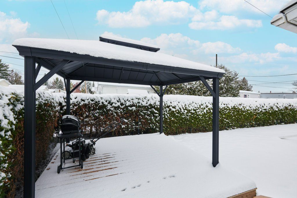 • Expansive front deck with gazebo, great for relaxing or entertaining outdoors.