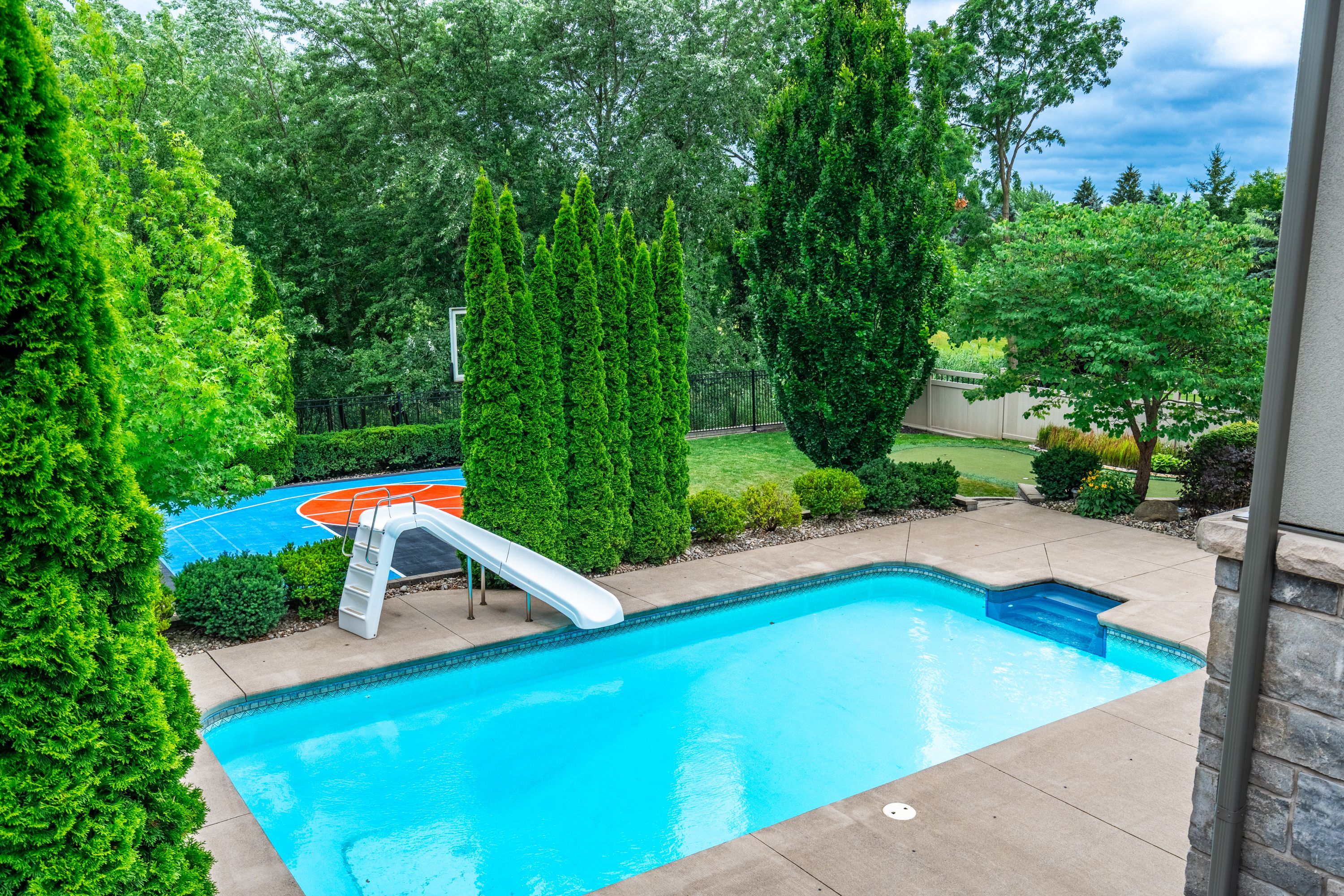 • Resort-style outdoor space with an in-ground pool and hot tub.