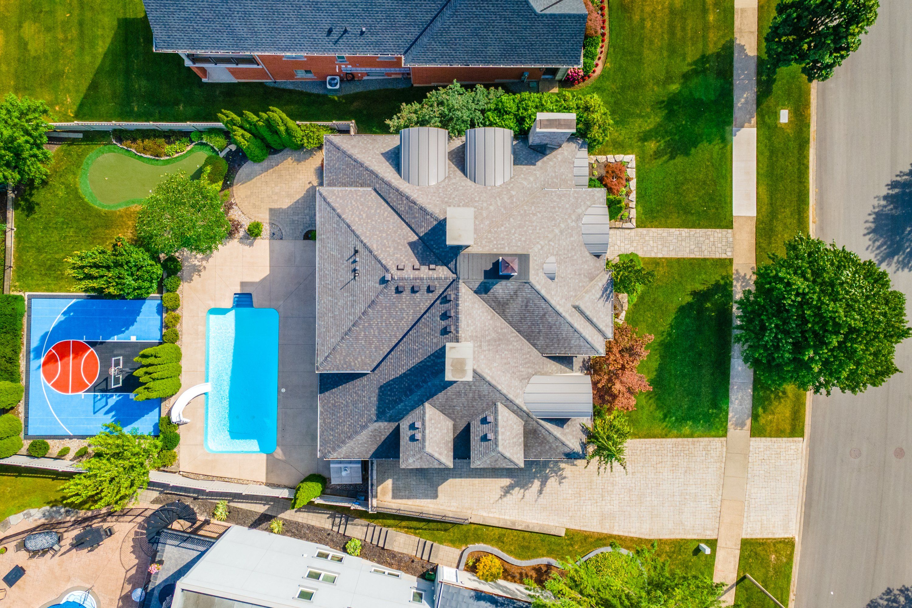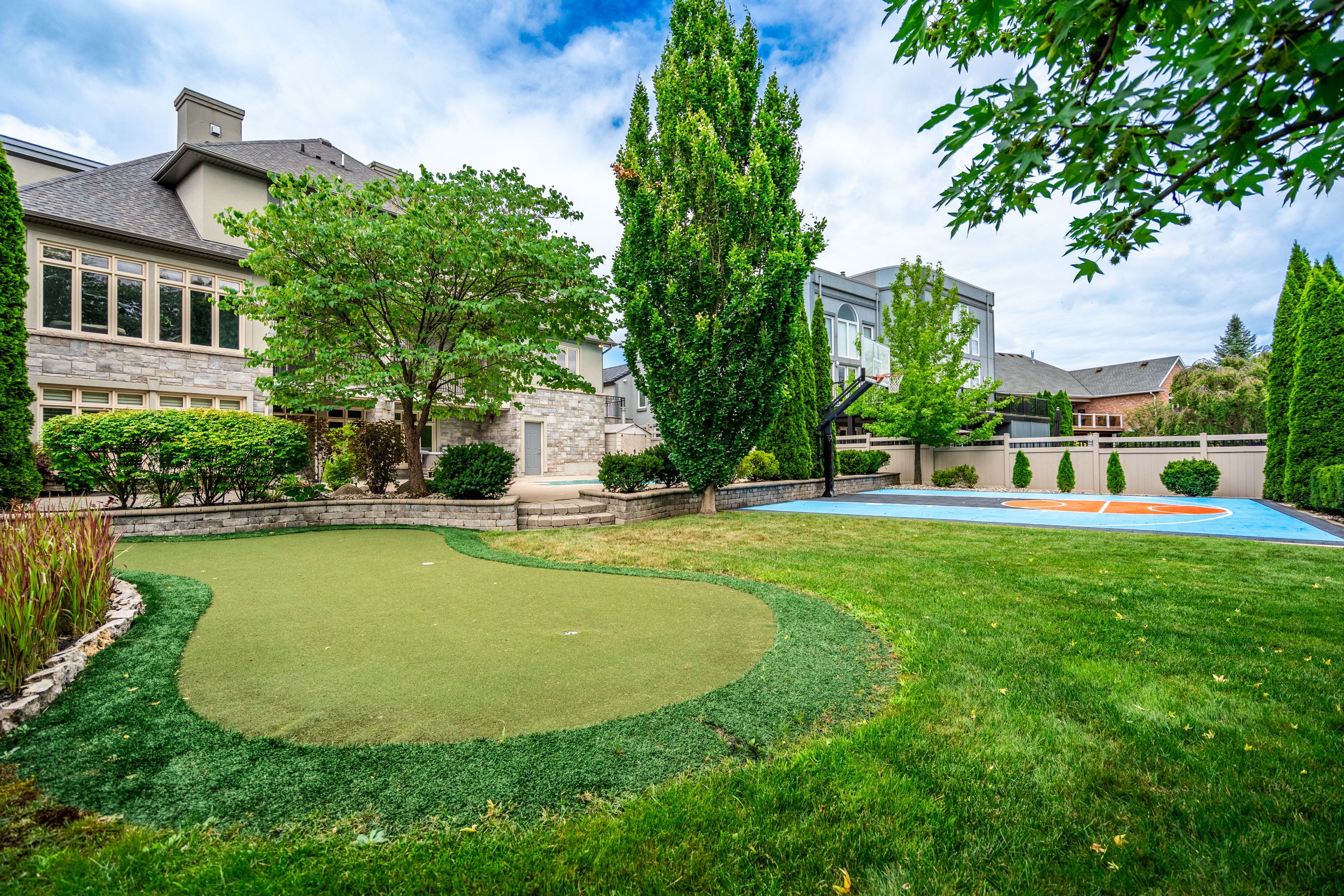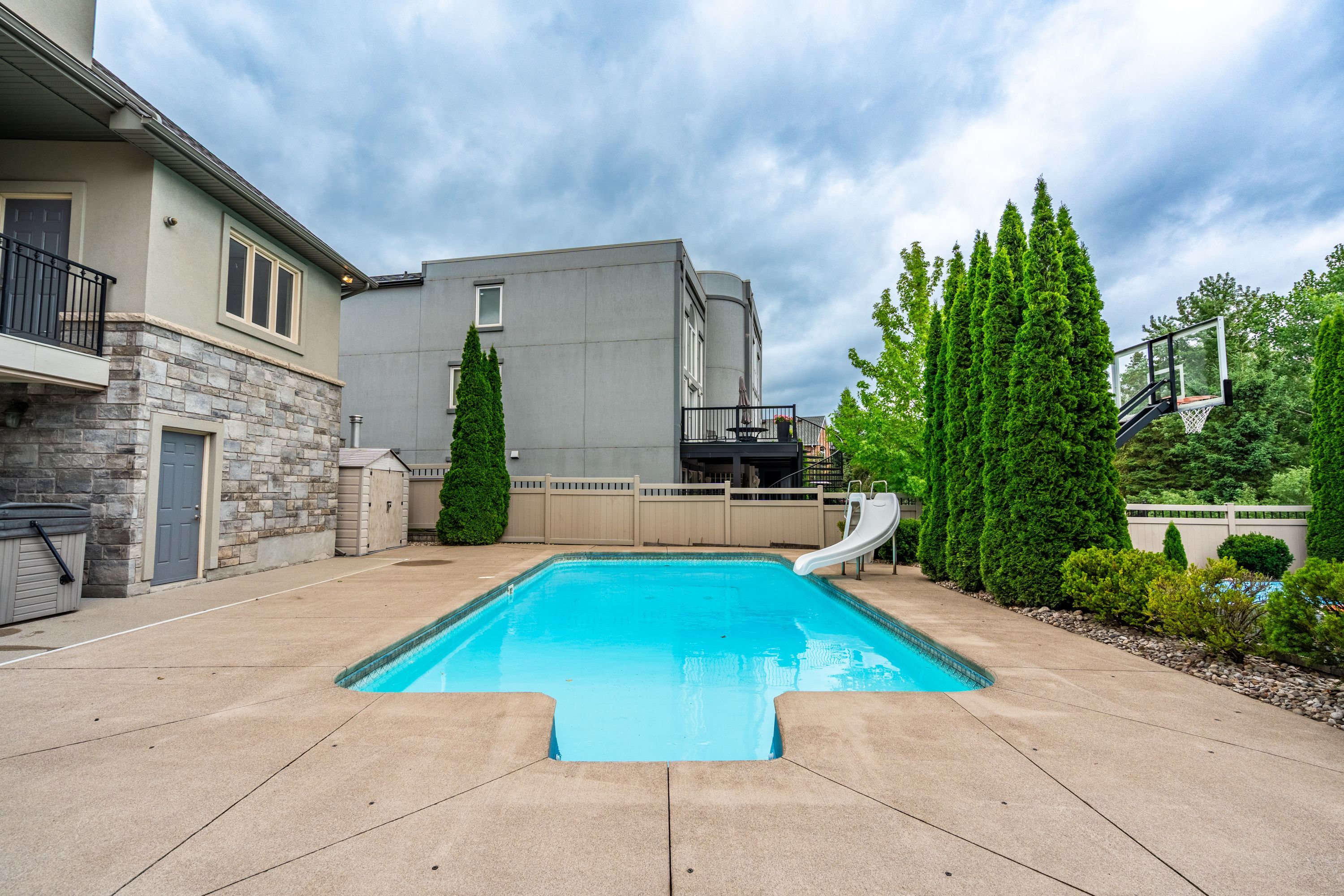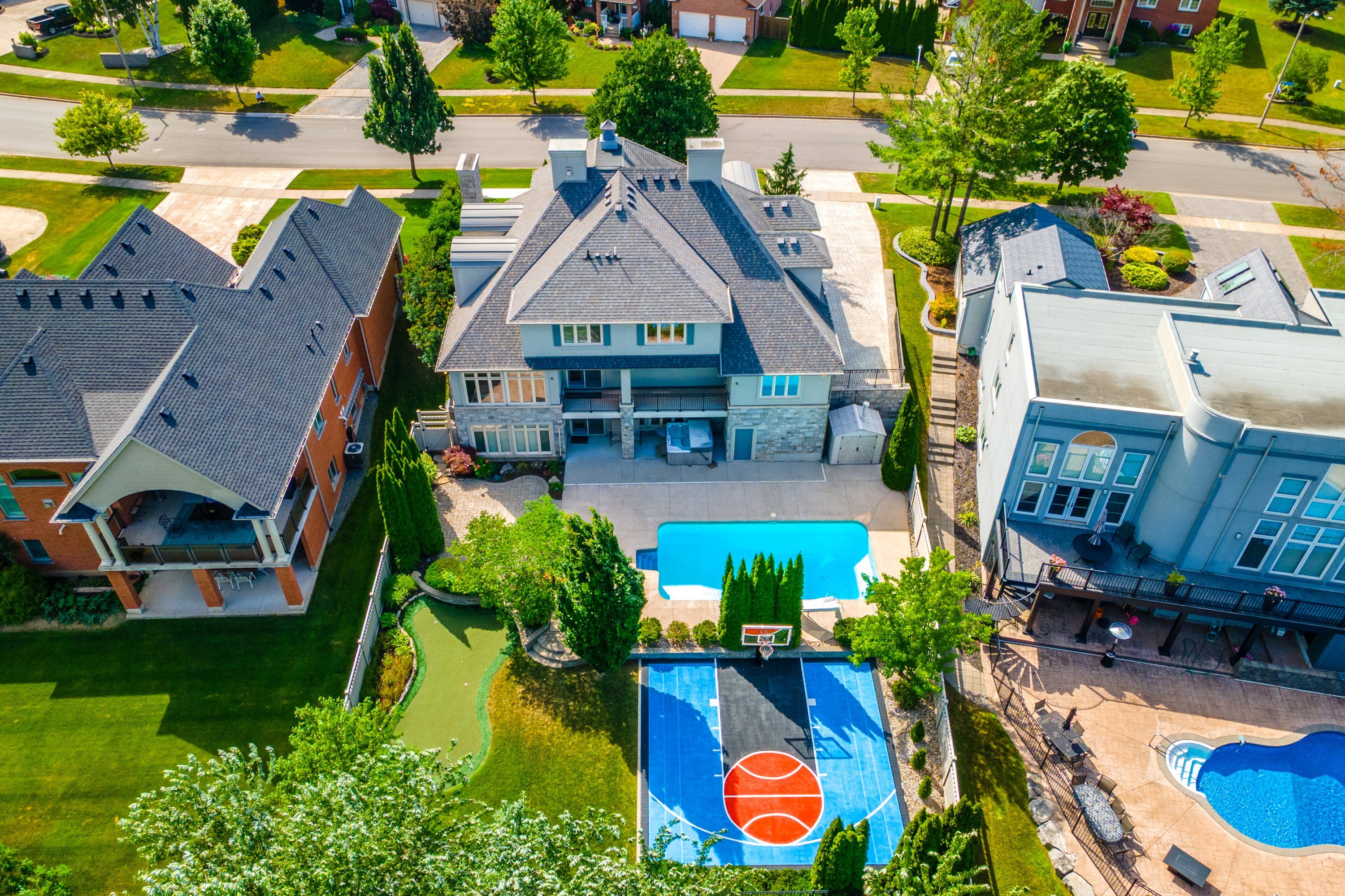 Welcome to 3542 matthews drive - a stunning custom-built estate in one of niagara falls' most prestigious enclaves. This meticulously designed home offers the perfect balance of refined elegance, comfort, and unforgettable outdoor living, all backing onto a serene ravine setting. From the moment you arrive, you'll be captivated by the grandeur and thoughtful layout of this residence. The main floor features a private home office with custom built-ins, ideal for professionals or those working from home. A sunken living room with a gas fireplace and expansive windows fills the space with warmth and natural light, while the open-concept kitchen is a chef's dream - complete with built-in appliances, an abundance of counter space, stylish storage solutions, and a peninsula breakfast bar perfect for entertaining. Upstairs, you'll find four generously sized bedrooms, each with massive closets, including a primary retreat with a spa-inspired ensuite that invites you to relax and unwind in luxury. The fully finished walk-out basement adds even more living space with a fifth bedroom, wet bar, dedicated guest area, ample storage, and direct access to the backyard. Step outside to your own private resort-style paradise, featuring a large in-ground pool with slide, hot tub, putting green, and a half-court basketball area - all set against a beautifully landscaped backdrop that backs onto a peaceful ravine. Additional highlights include a finished 4-car garage, classic finishes throughout, and a layout that blends sophistication with everyday functionality. This is more than a home - it's a lifestyle. Don't miss your chance to own one of niagara falls' finest properties.
