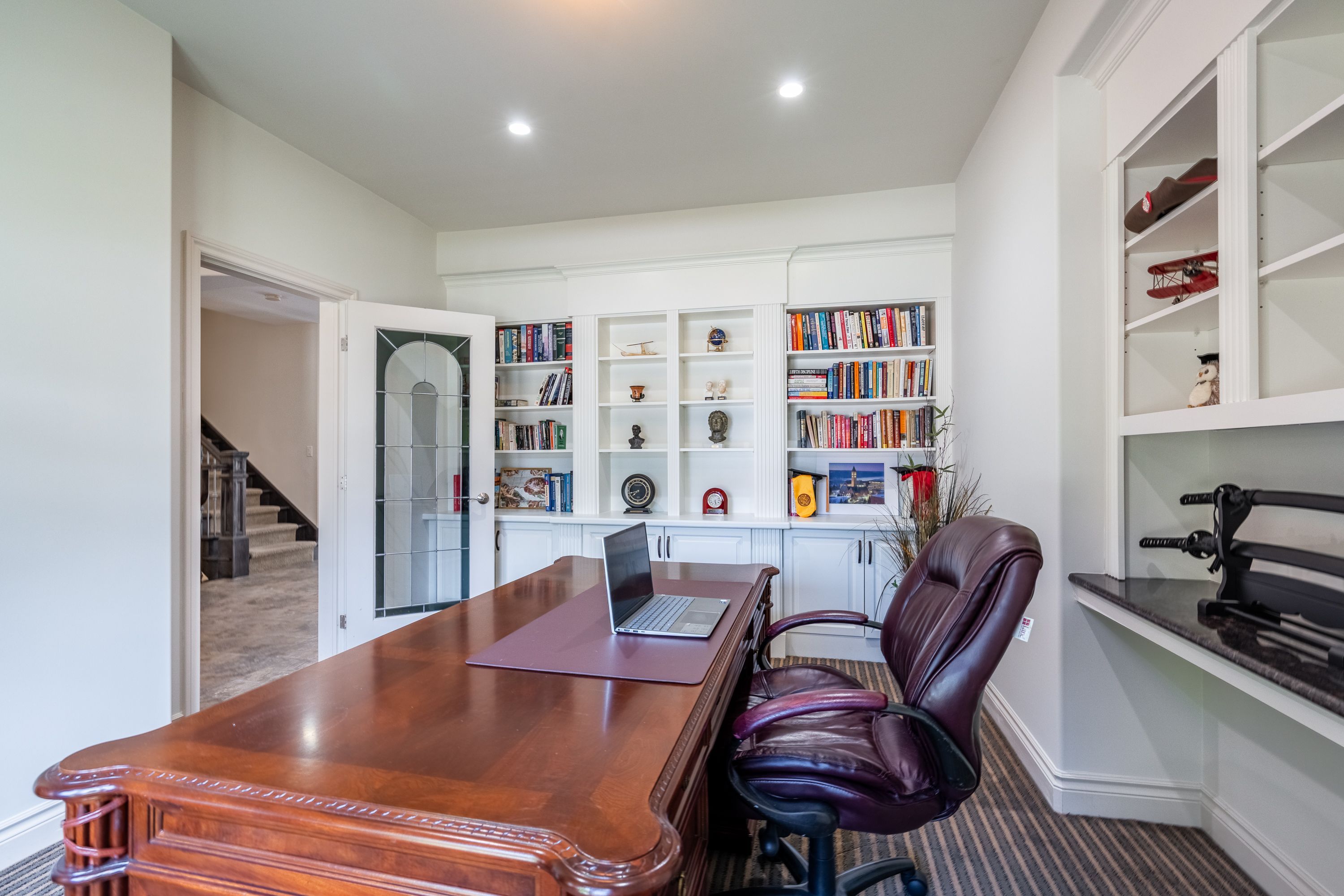 • Private office space with built-ins for working from home.