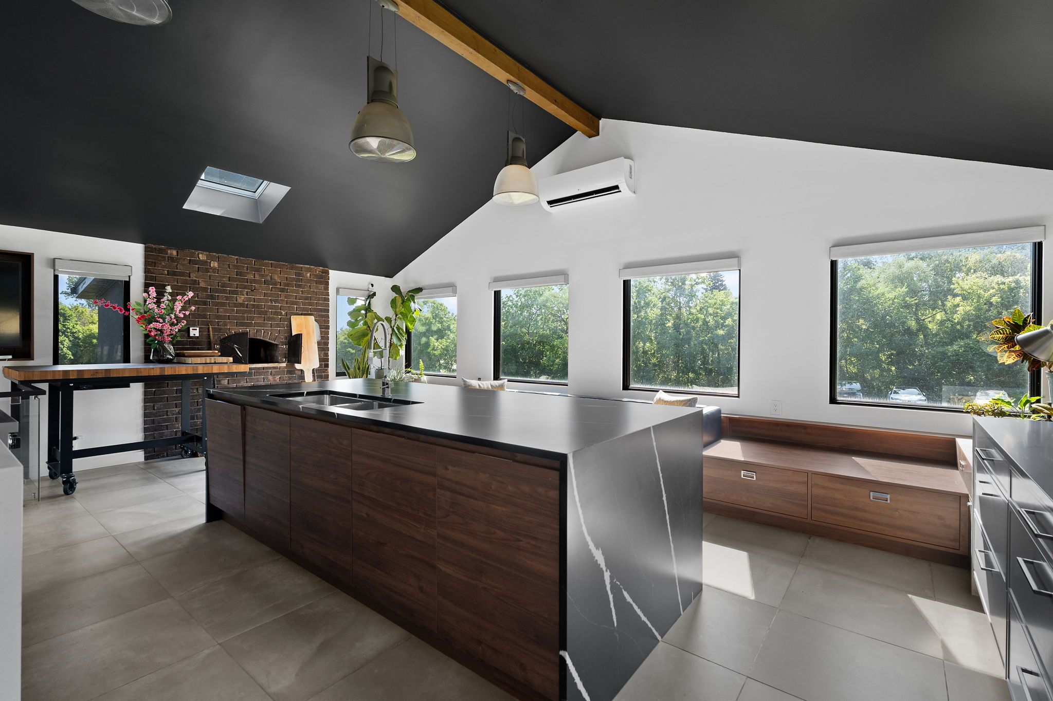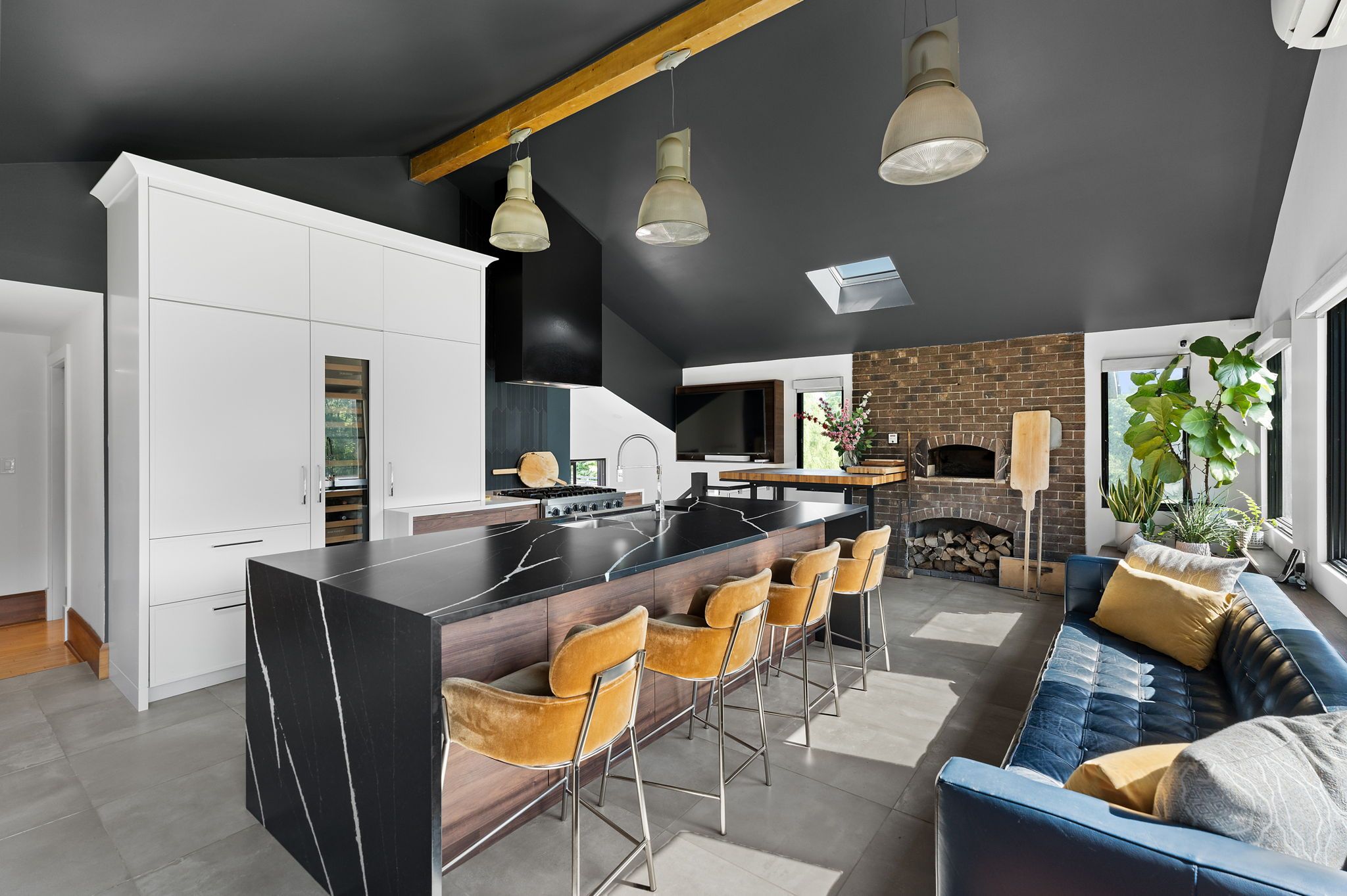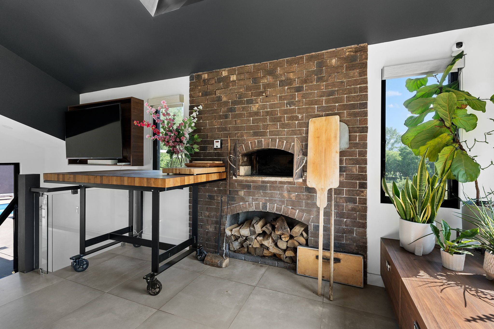 • Gourmet kitchen with high-end appliances and a wood brick oven.