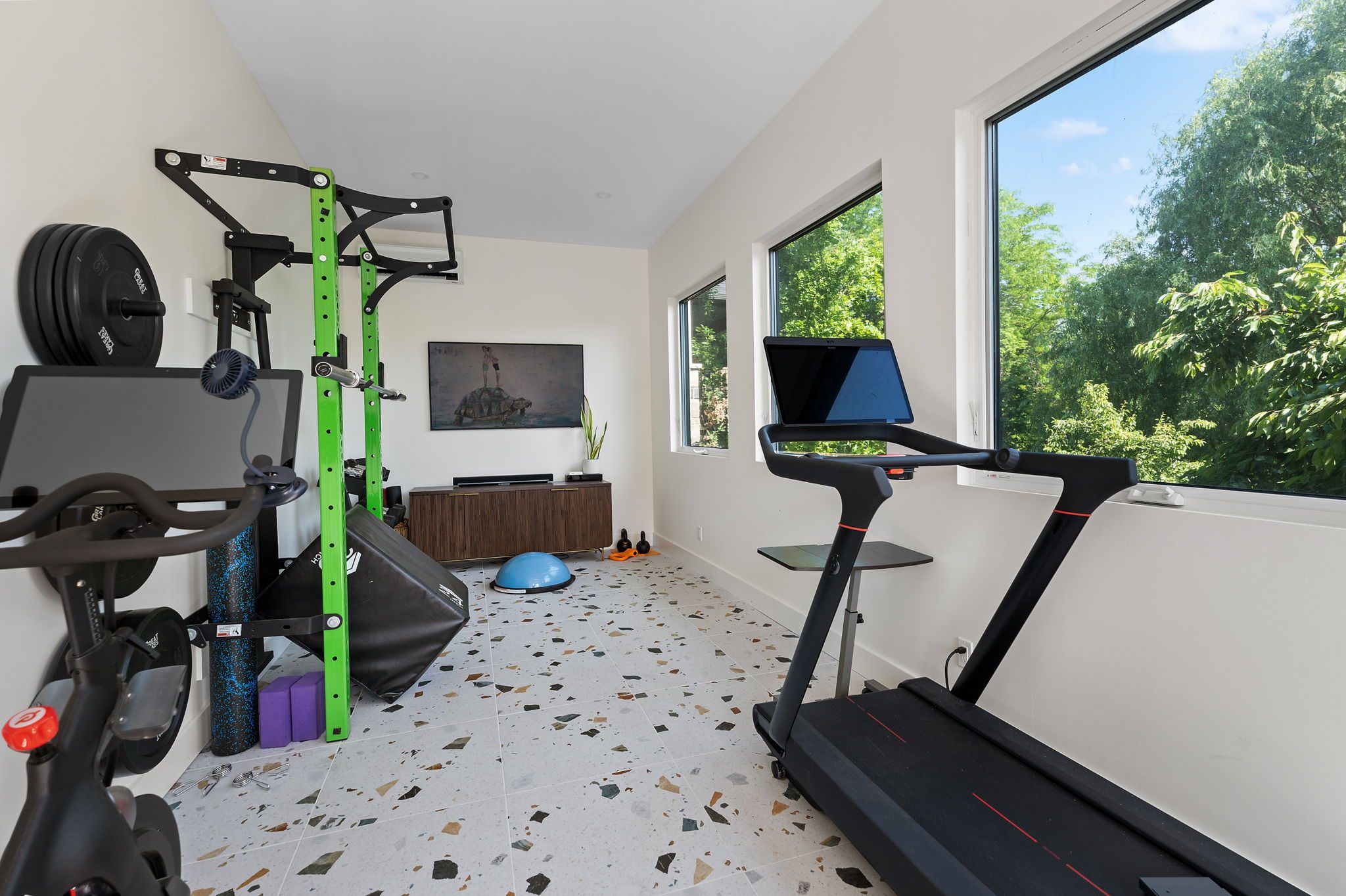• Resort-like backyard with landscaping and a gym for relaxation.