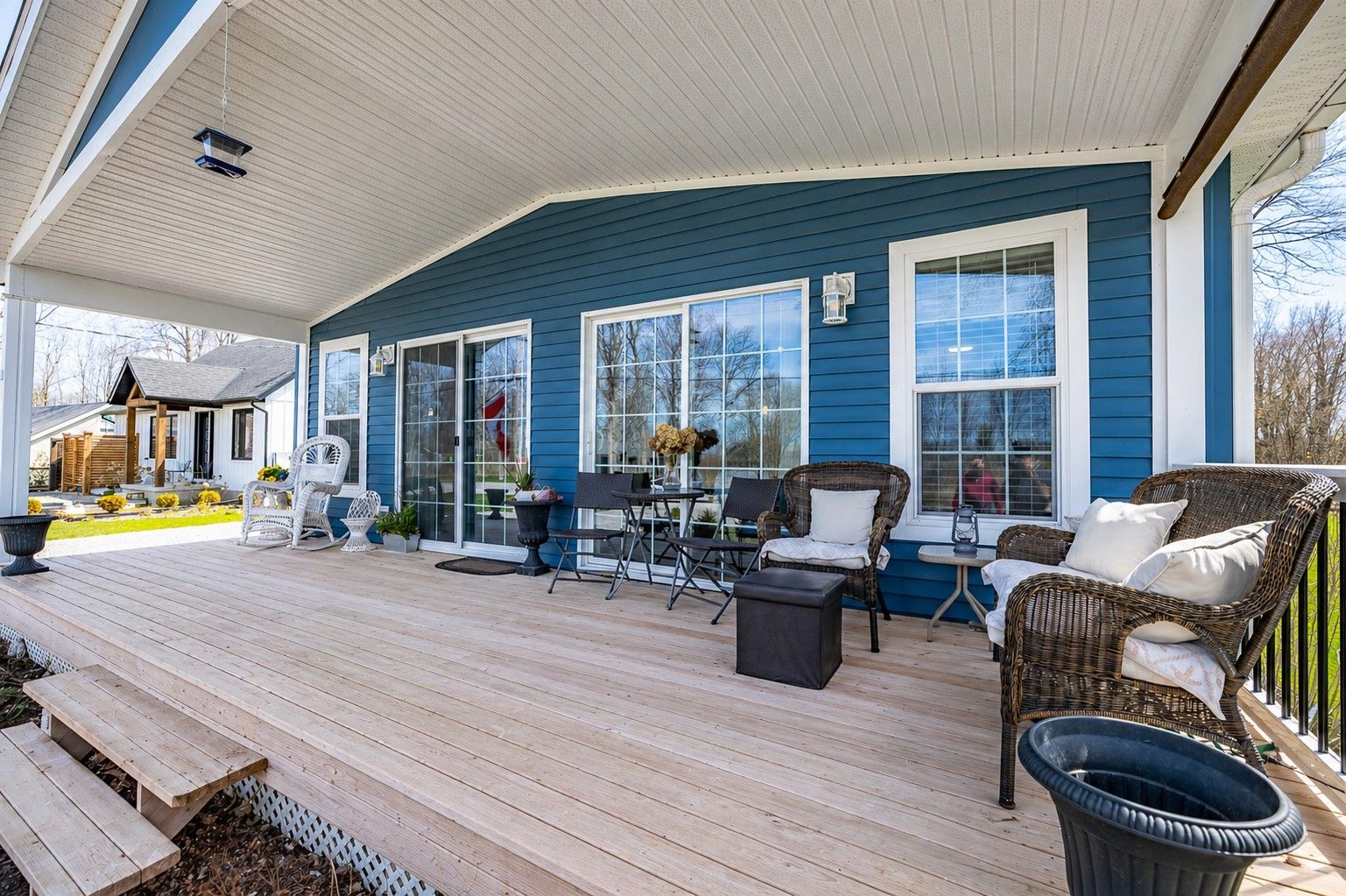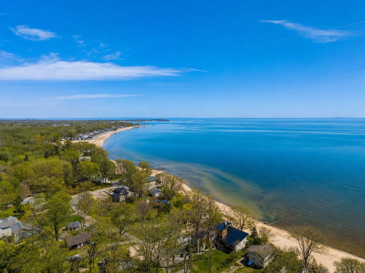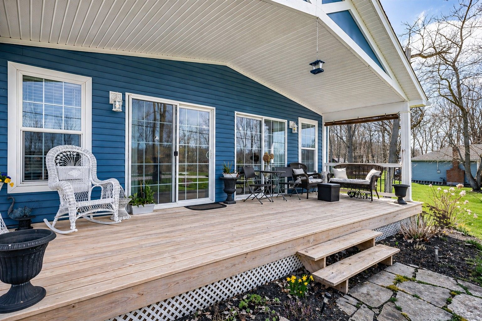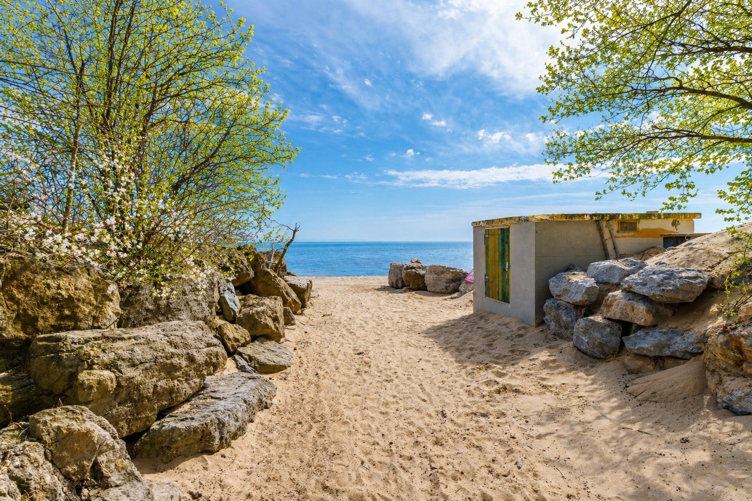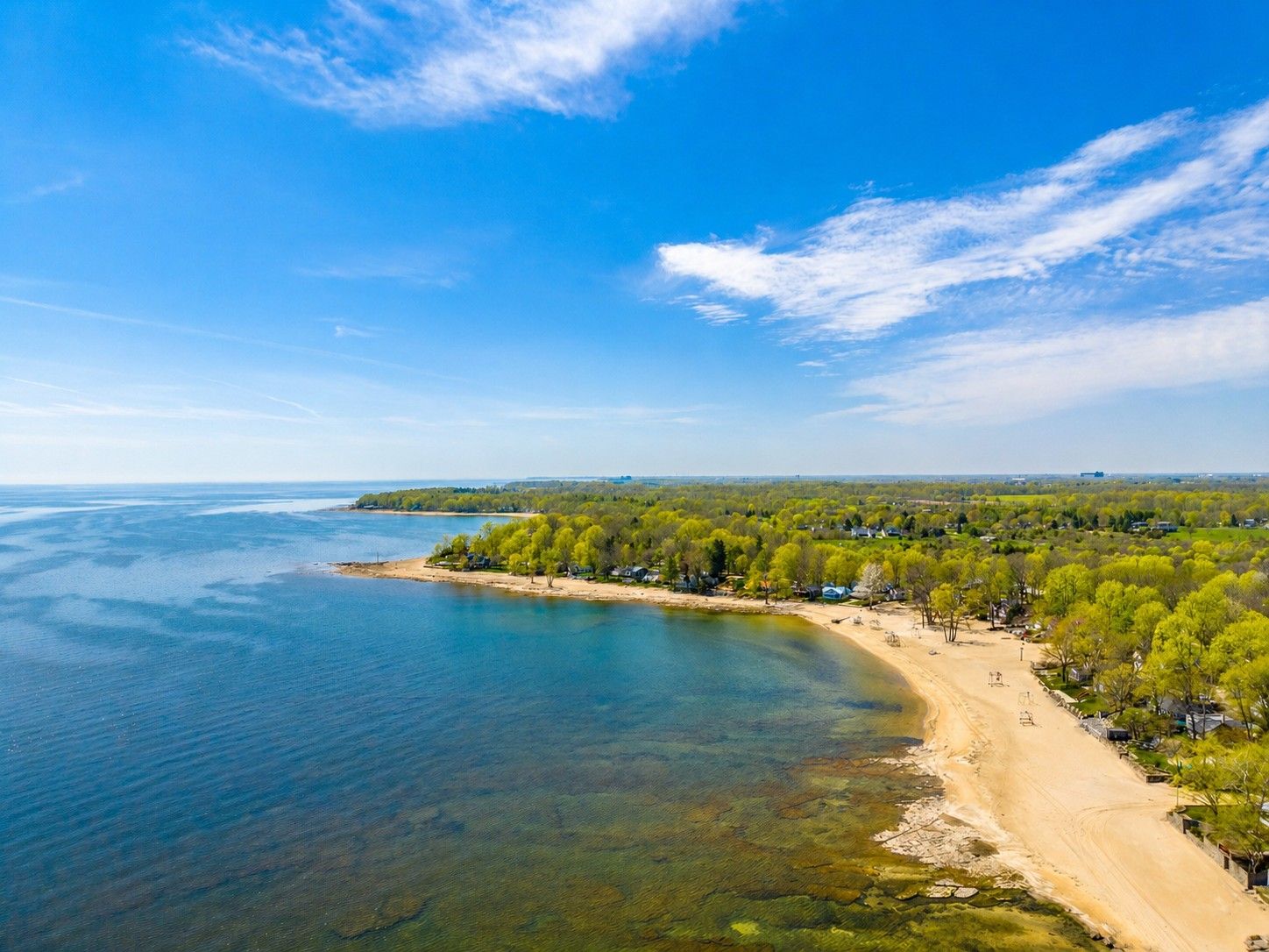 Relaxed lakeside living in the heart of niagara's wine & golf country. Welcome to silver bay, a sought-after community along the shores of lake erie, where beach days, sunsets, and easy living define the lifestyle. This 6-year-old bungalow offers a deeded access to a private sandy beach, just a short stroll down a scenic, tree-lined sand path. Set on a generous quarter-acre lot, the home welcomes you with a spacious covered front porch showcasing post & beam-inspired design - an ideal place to unwind and take in the evening air. Inside, thoughtfully designed open living space blends a warm and summer vibe. Double sliding doors extend the living area to the front sitting porch, enhancing seamless indoor-outdoor flow. The open-concept layout features a cozy gas fireplace and a stylish white kitchen with a centre wood plank island, adding a touch of rustic charm - perfect for entertaining and gatherings alike. At the rear of the home, an expansive screened-in room off the primary bedroom creates a peaceful extension of the home-ideal for summer evenings and morning long coffees. The main floor offers a primary suite which includes a walk-in closet, 4-piece ensuite, and direct access to the screened-in rear room. The main floor also boasts 2 extra bedrooms for family and fiends overnight stays. One is currently set up as an office. The partially finished lower level adds versatility with recreational space and bedroom space - yours to define. A 3-piece bathroom is all finished. Outside, enjoy a large concrete patio with sun sail, landscaped gardens, raised beds, and a timed irrigation system. A matching shed with power and lighting adds convenience. The insulated, heated garage features a drive through front and rear doors for easy access or workshop use. Additional features include seasonal silver bay water, a 5,500-gallon cistern, generator-ready hookup, and bell fibe. A turnkey opportunity to enjoy the best of niagara's relaxed, beachside lifestyle.