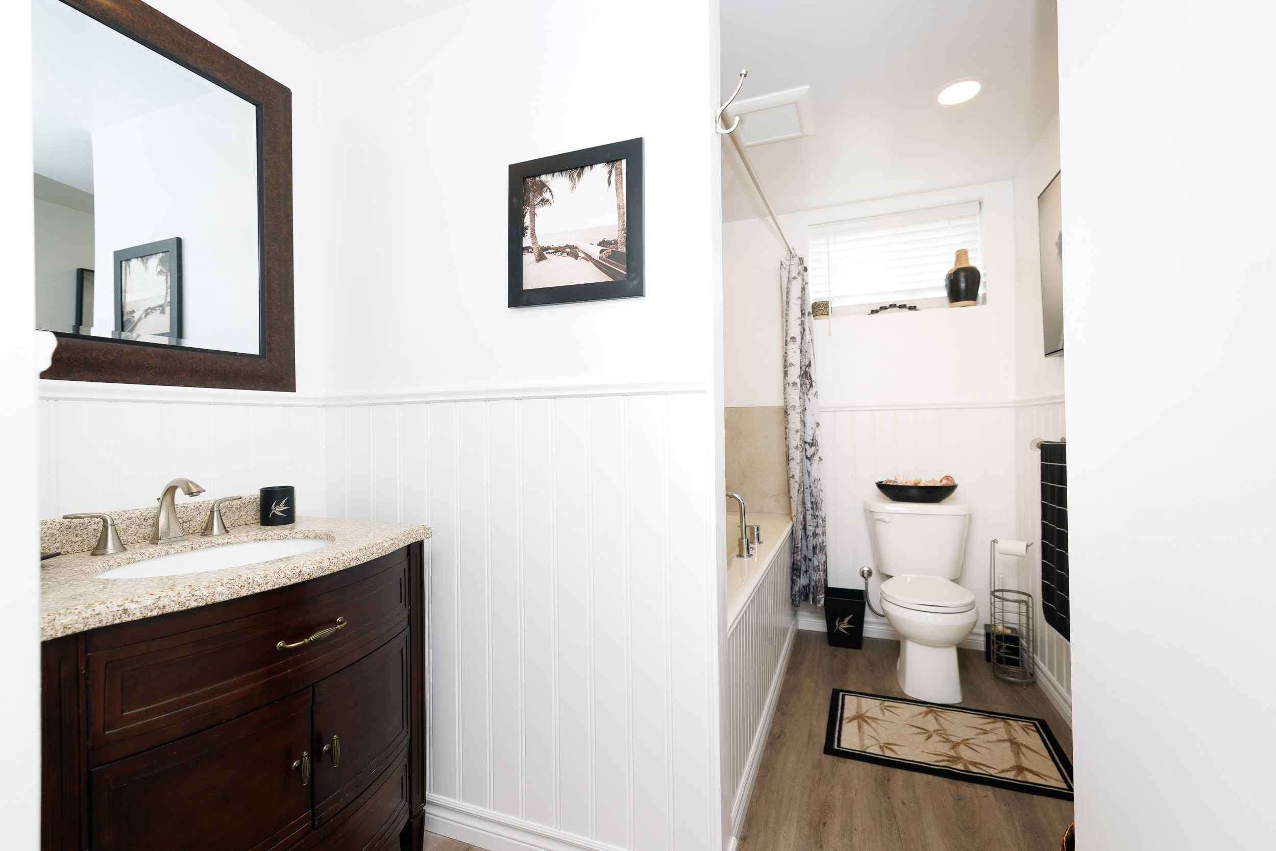 • Generous quarter-acre lot with landscaped gardens and a concrete patio.