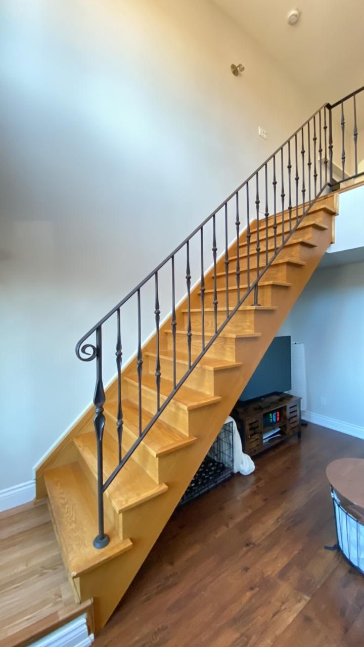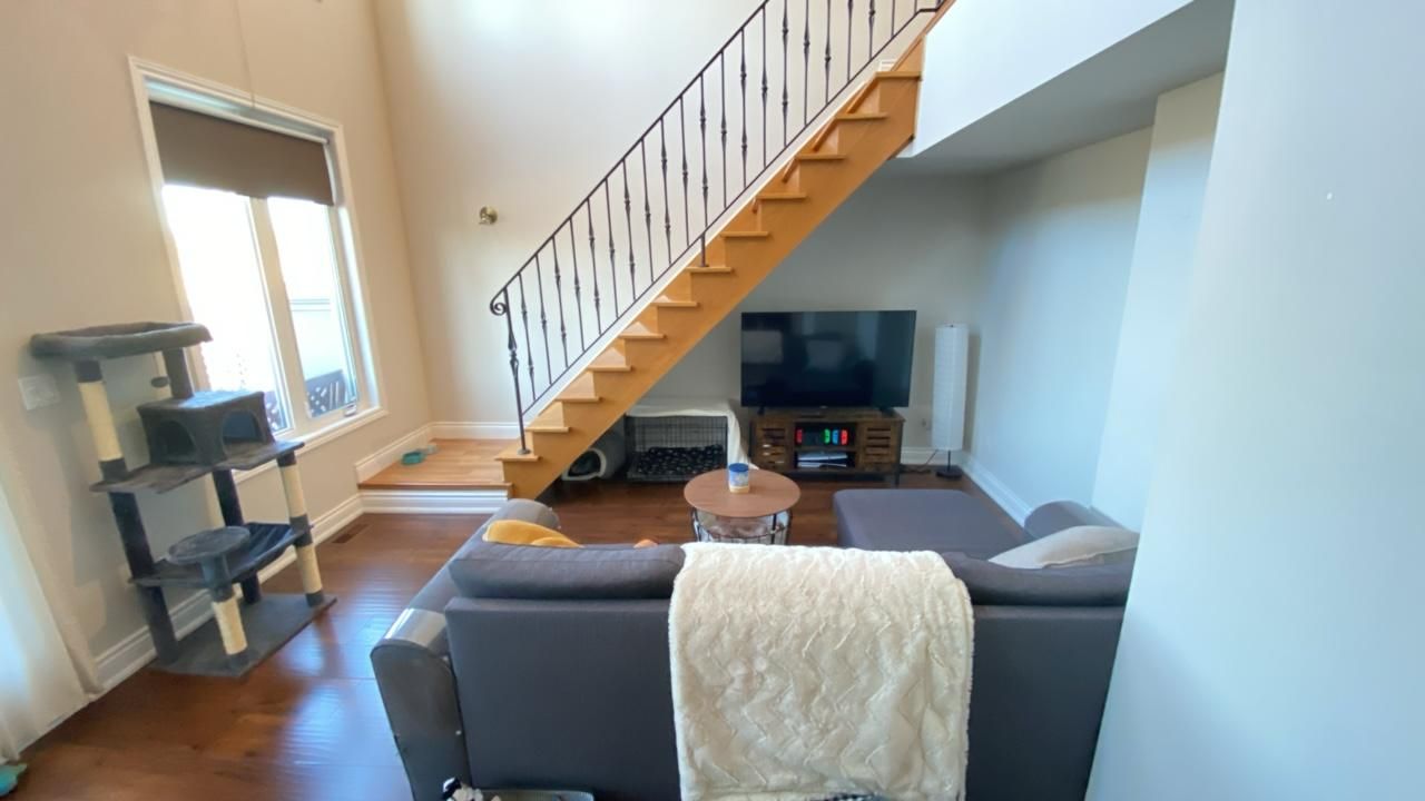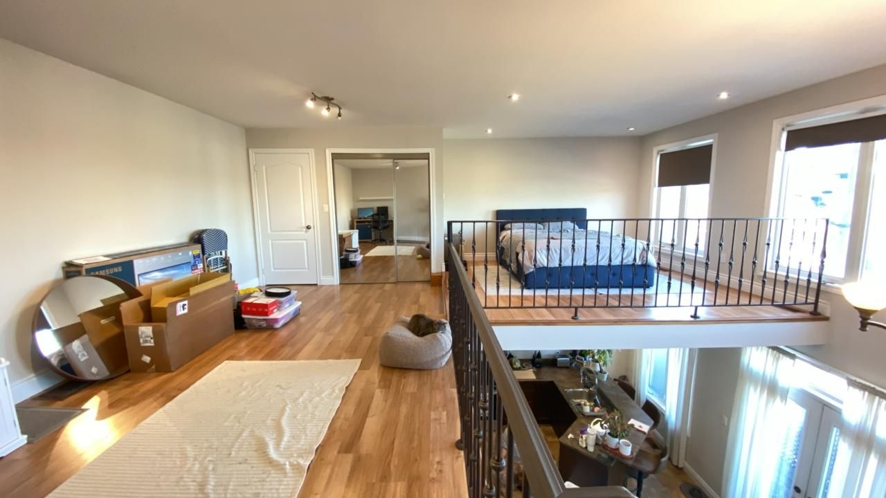 • Spacious loft with open-concept living area and high ceilings.