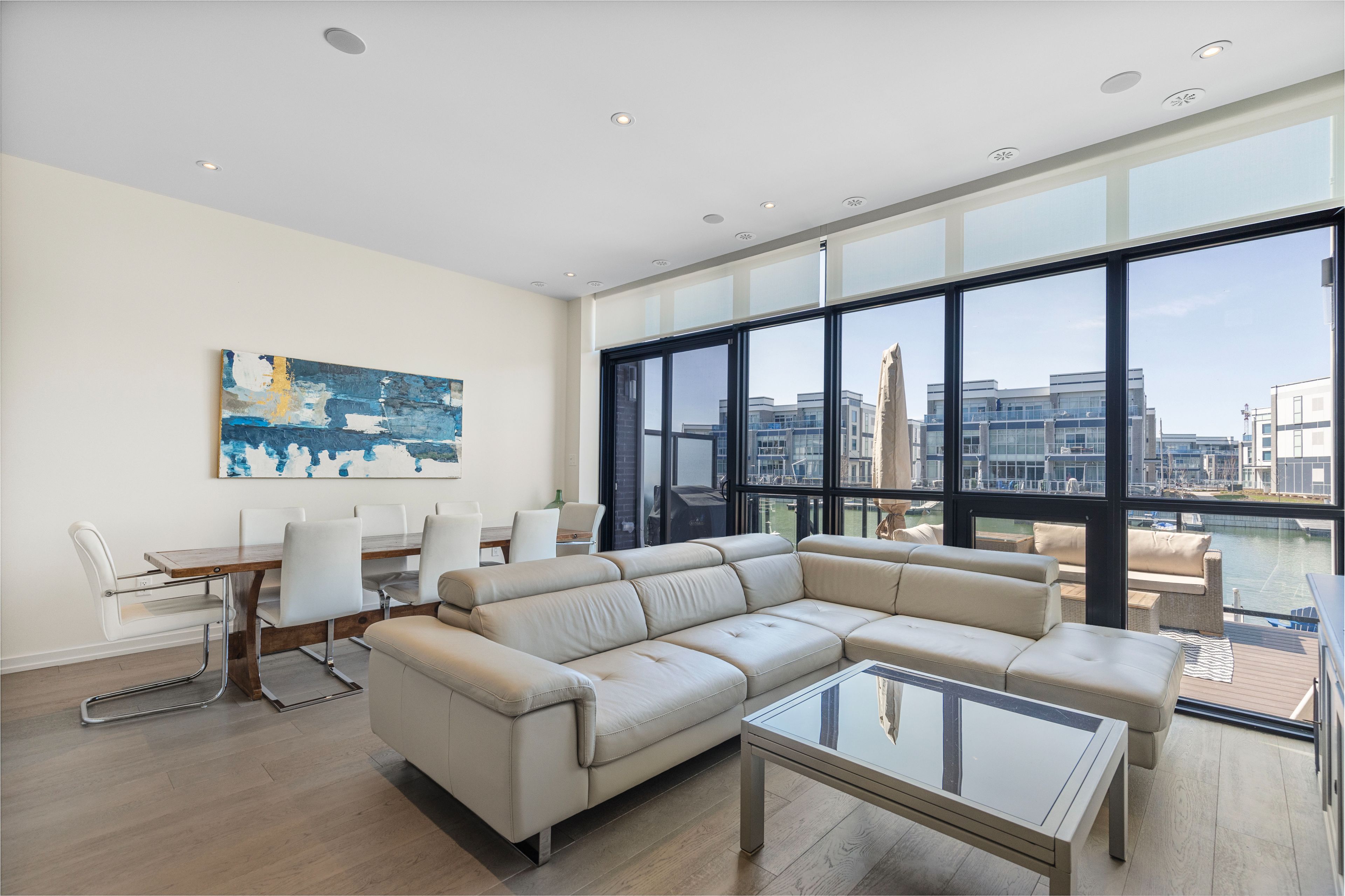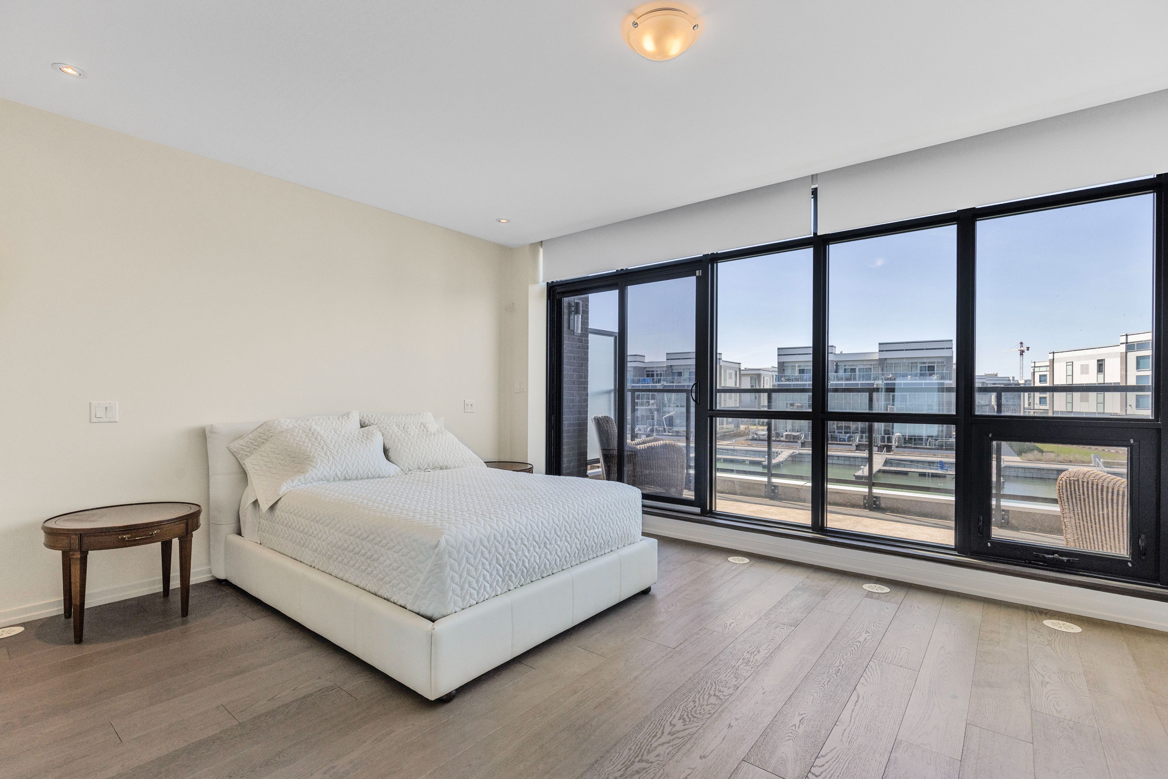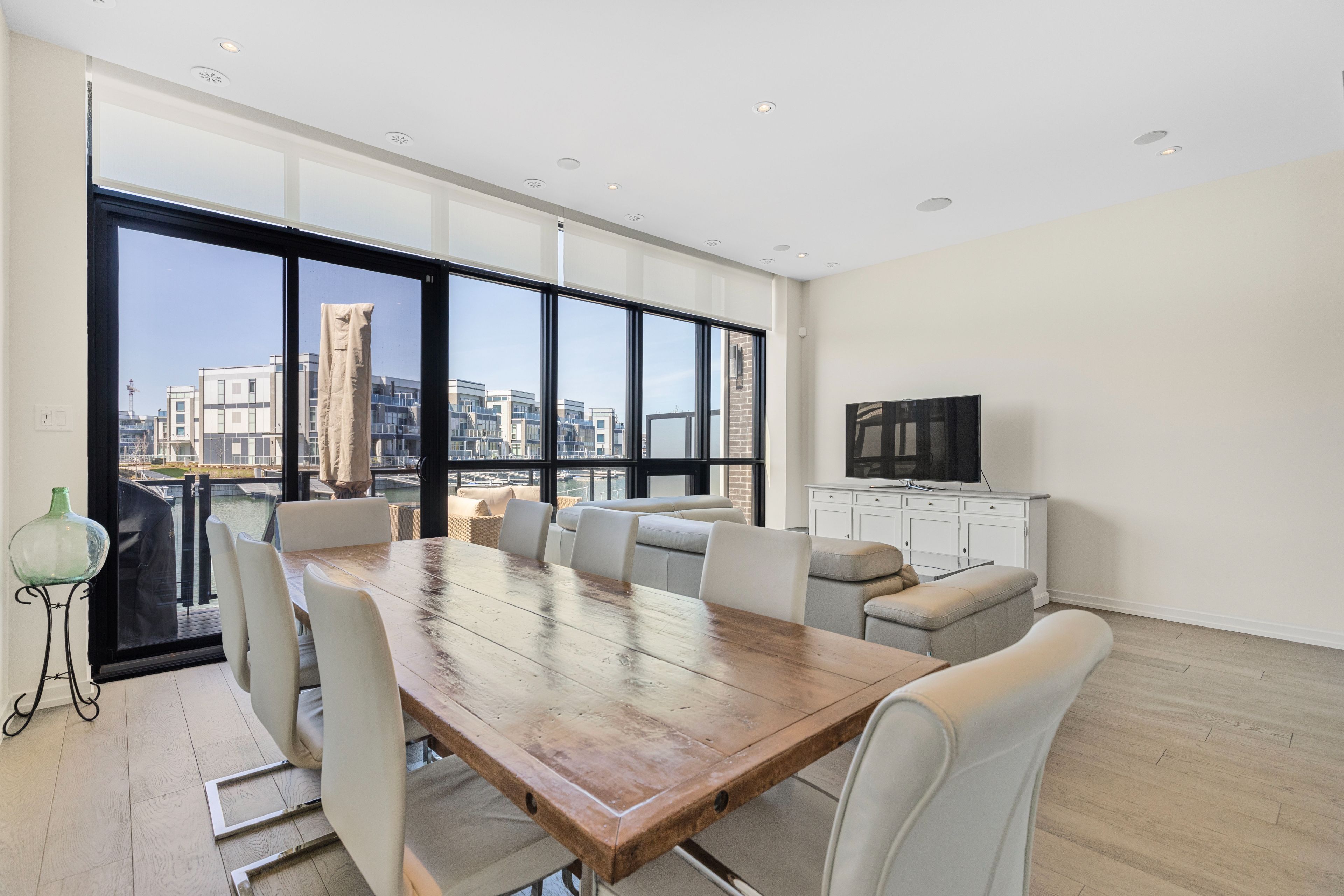 Experience one of the most peaceful positions in the marina community, offering a rare open water channel view toward the harbour master with easy access out to lake simcoe, all within a quiet, destination-only setting . This upgraded marina town spans nearly 1,600 sq ft, designed to capture light, views, and effortless waterfront living. With northwest exposure, enjoy long afternoons in the sun and sunset views over friday harbour-a setting that truly defines resort living. The main living space is anchored by floor-to-ceiling windows, creating a seamless connection between indoor living and the marina backdrop. The open-concept kitchen, dining, and living areas are both functional and refined, featuring high-end appliances, an integrated bar fridge, double-stacked cabinetry, upgraded hardware, and clean, modern finishes throughout-well-suited for both everyday living and entertaining. Integrated digital blinds provide convenience and control across all windows. Step out to a spacious, private deck-fully furnished and enclosed-perfect for entertaining or unwinding along the water's edge. For boating enthusiasts, the property includes a private, individual dock (not shared) with a dedicated boat slip complete with power, water, and lighting pedestal-a rare and highly sought-after feature within the community. Additional upgrades include engineered hardwood flooring, upgraded stair treads, 8-foot door frames, and wall-mounted controls for blinds in every room. The garage is equally well-appointed with epoxy flooring, paneled walls, and built-in storage. A rare opportunity to lease a waterfront property that delivers both privacy and lifestyle in one of friday harbour's most desirable marina settings. Enjoy full access to all resort amenities, including the lake club (pool, hot tub, gym, recreation room) with access card $350/person.