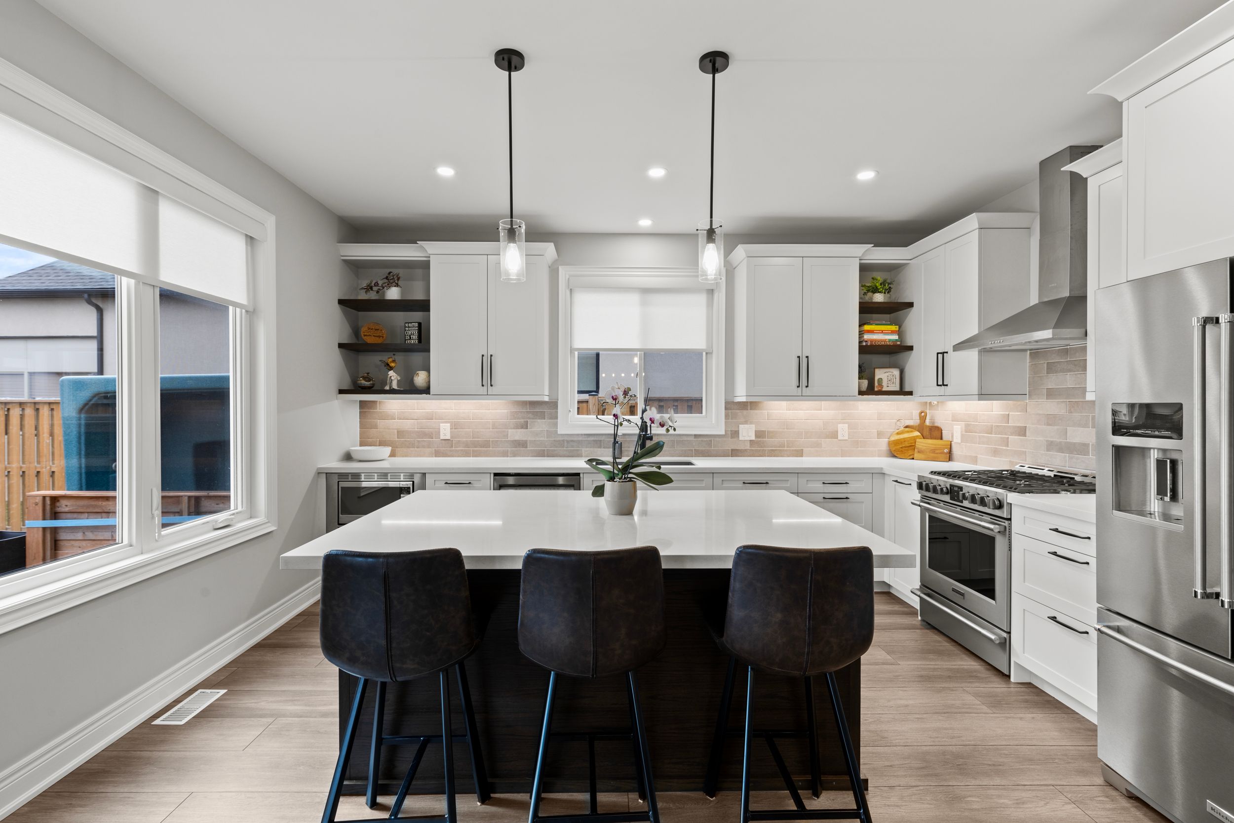 • Open concept living area with custom walk-in pantry and mudroom.