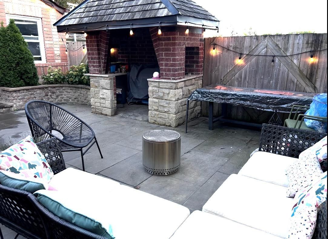 • Backyard oasis with slate paving, landscaped garden, and entertaining space.