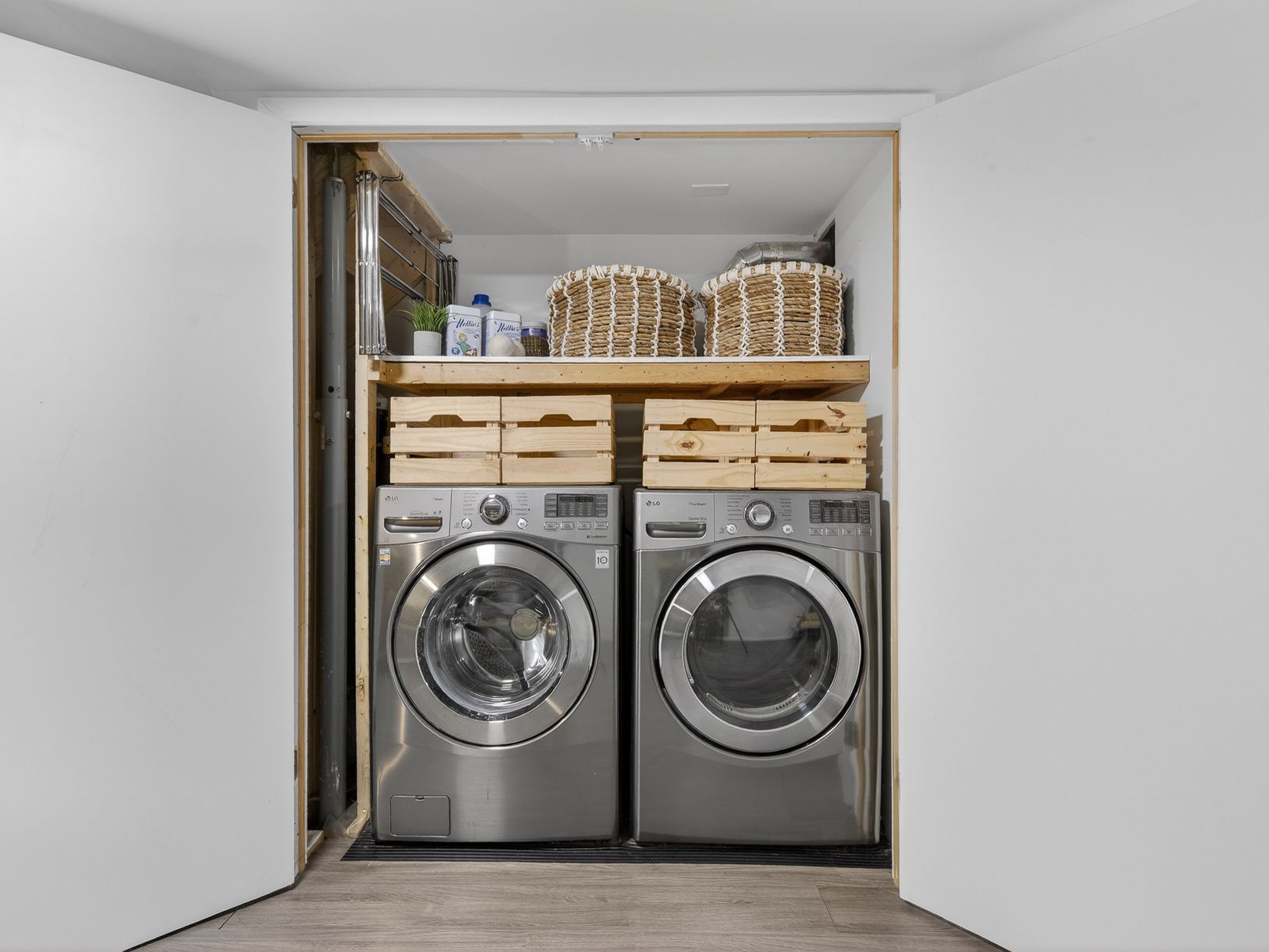 • Spacious 1085 sq ft open concept layout converted to two large bedrooms.