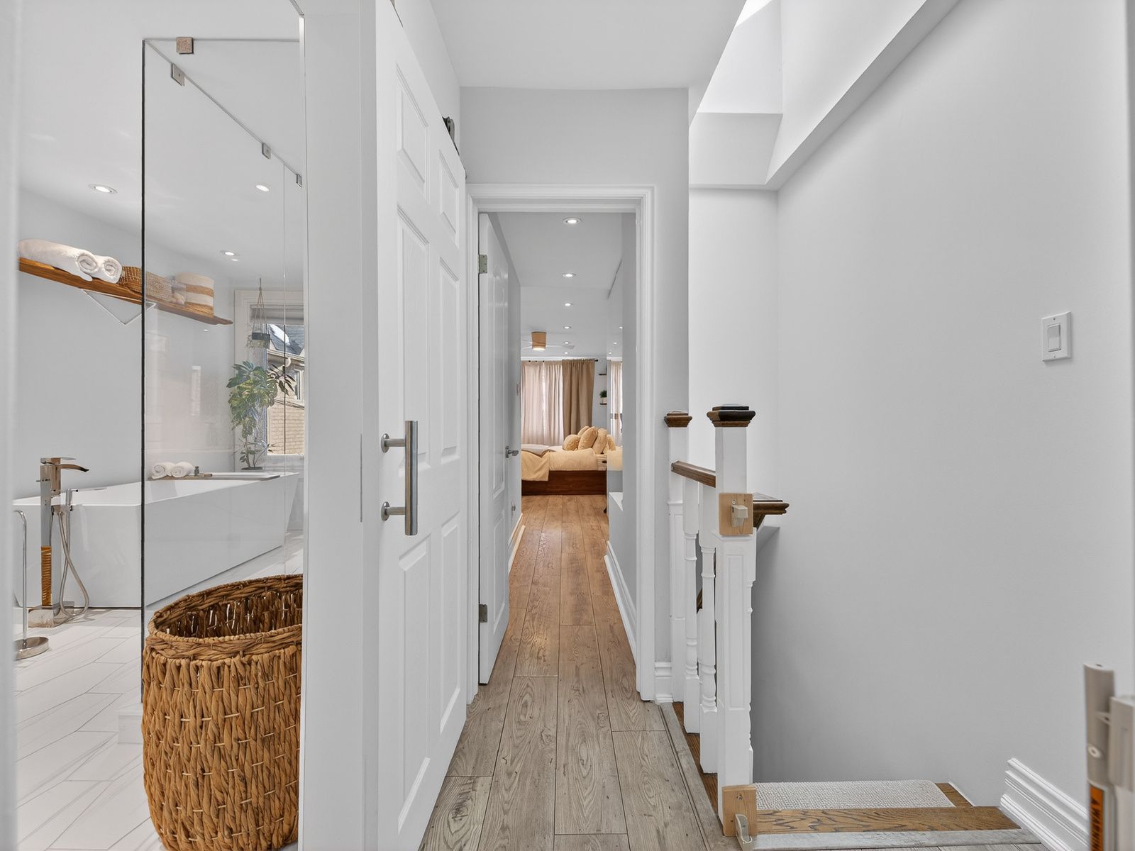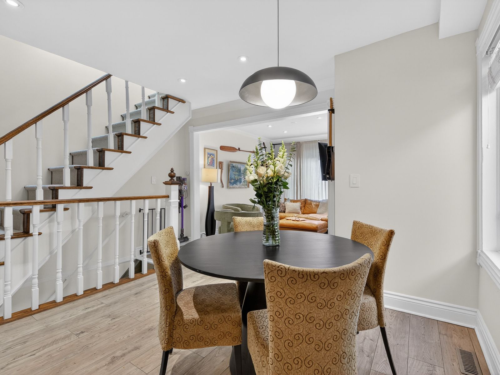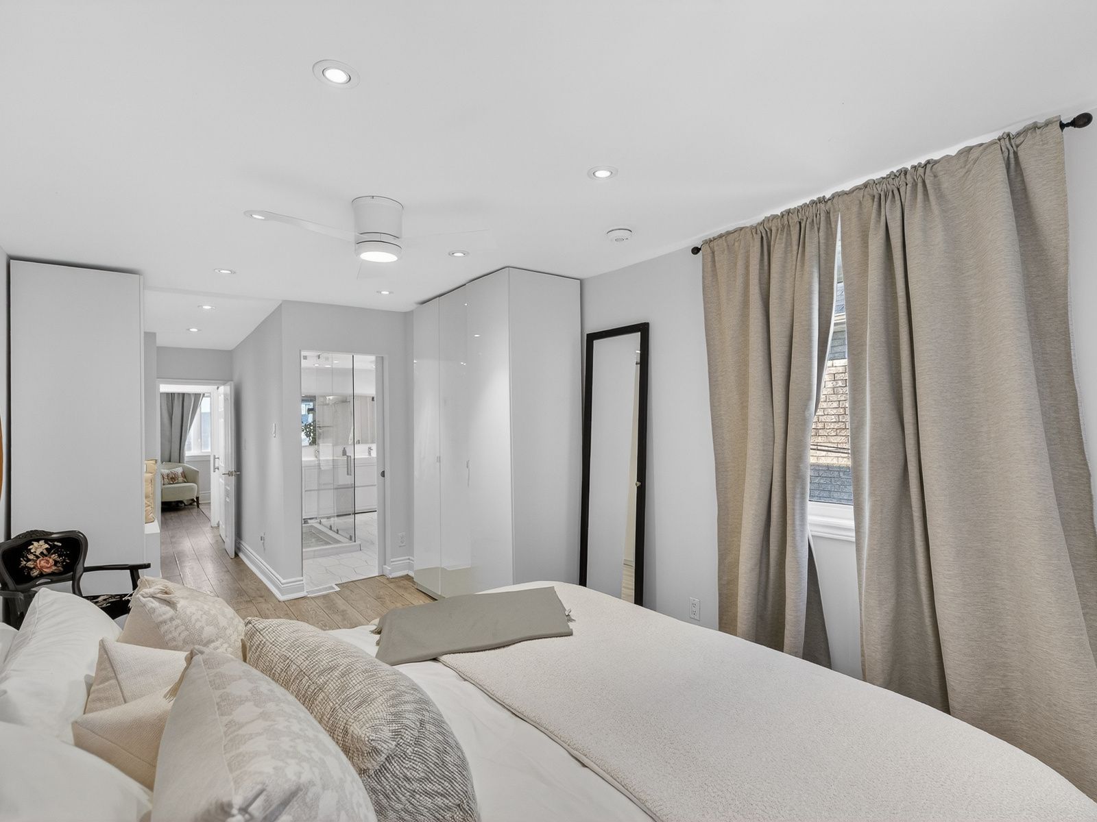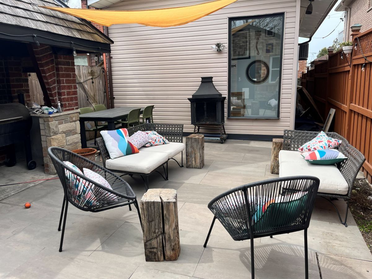 A rare combination of space, style, and versatility in a lovingly maintained move-in ready home * extensively renovated over the years * large 1085 sq ft open concept home has been converted from 3 bedrooms to 2 larger bedrooms plus a stunning luxury bathroom complete with soaker tub * walk-in custom glass shower and double vanities * second floor skylight * main floor powder room with marble floors * beautifully renovated spacious kitchen with wood accented island and coffee nook * quartz counters and stainless steel kitchen appliances * mudroom with storage * bright home with extensive pot lights * detached double garage with electrical service and versatile front room suitable for home gym or hobby space * laneway garage access with additional storage above and future potential * abundant basement storage and finished rec room with home office and use as extra bedroom * backyard oasis perfect for entertaining * paved with banas slate gray stones * landscaped curved garden with stone planter bed and perennial flowers * see link for video tour * ideally situated steps from corso italia shops and restaurants, parks, schools, ttc * convenient proximity to the eglinton lrt and future caledonia go station * quick allen rd access to hwy 401 and yorkdale shopping