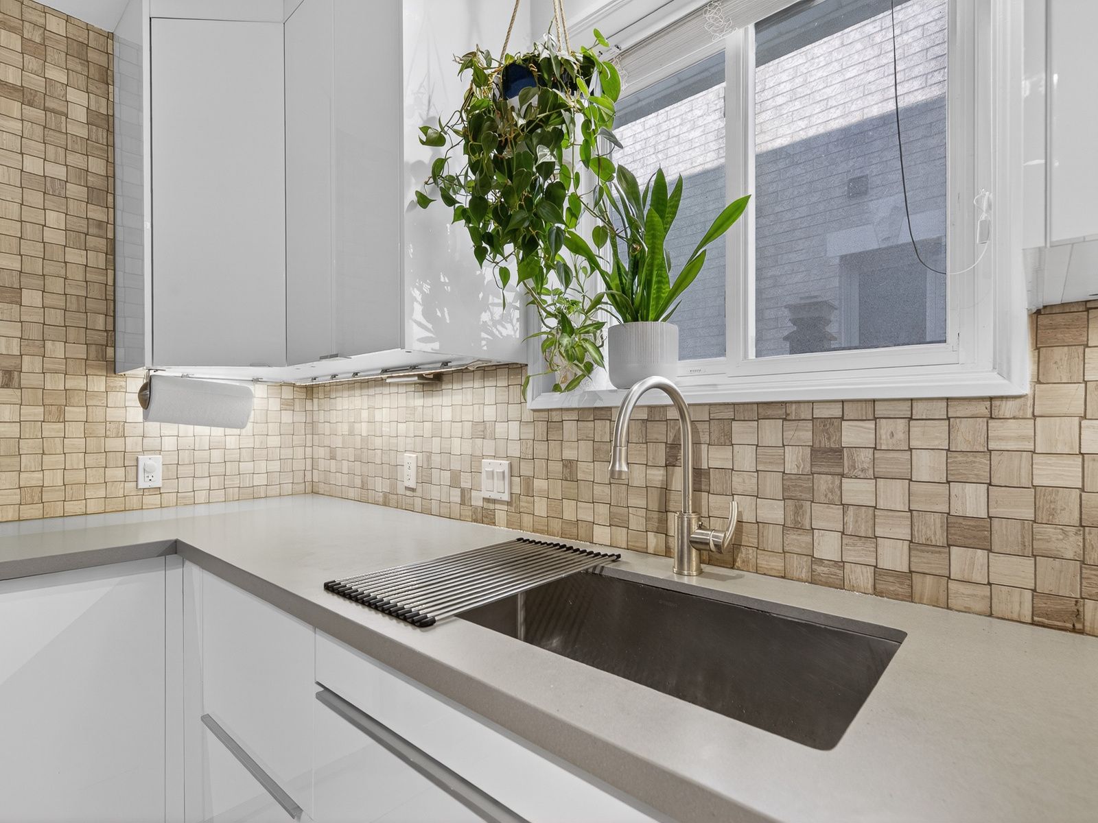 • Renovated kitchen with quartz counters and stainless steel appliances.