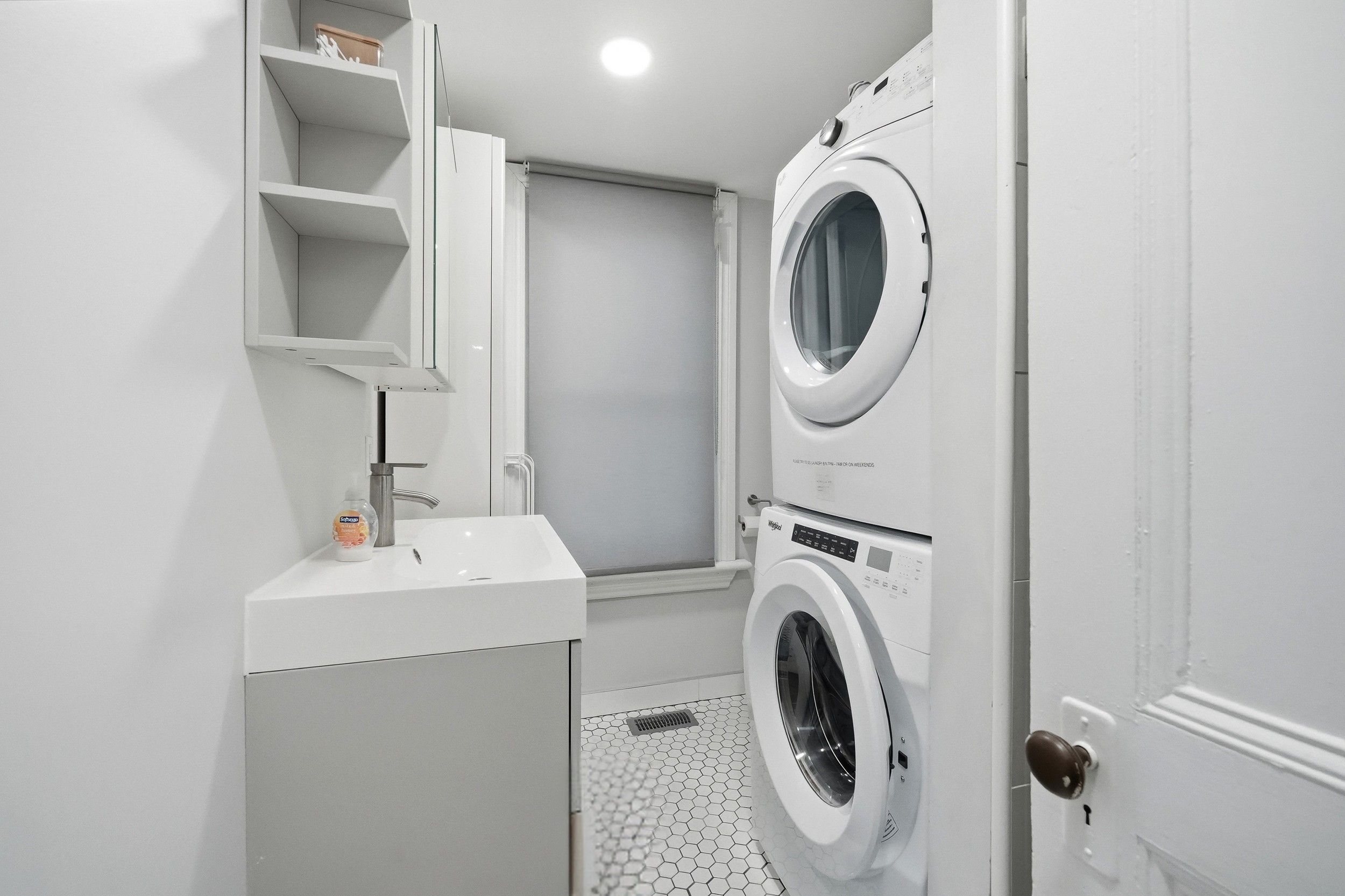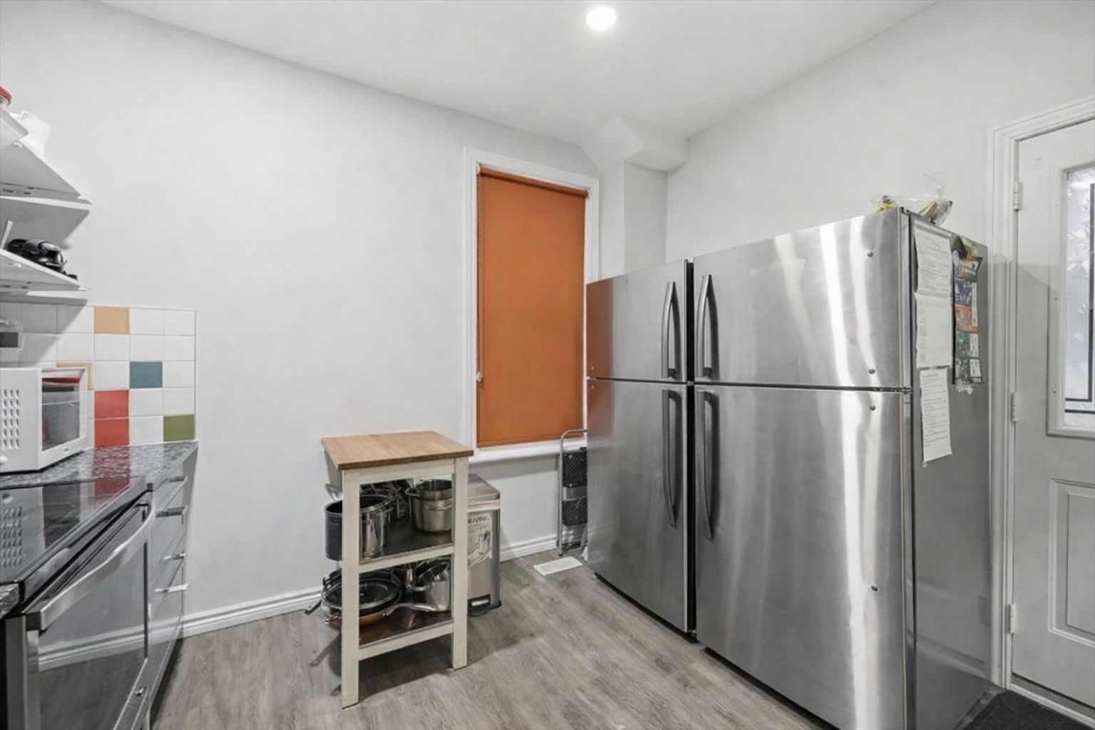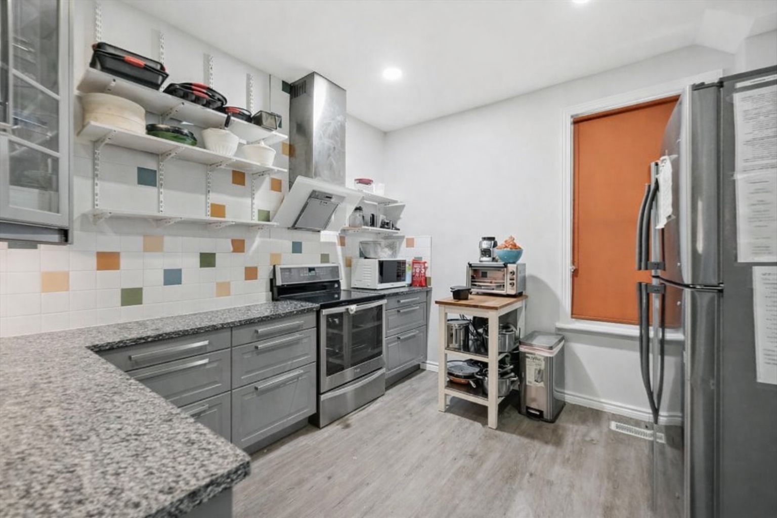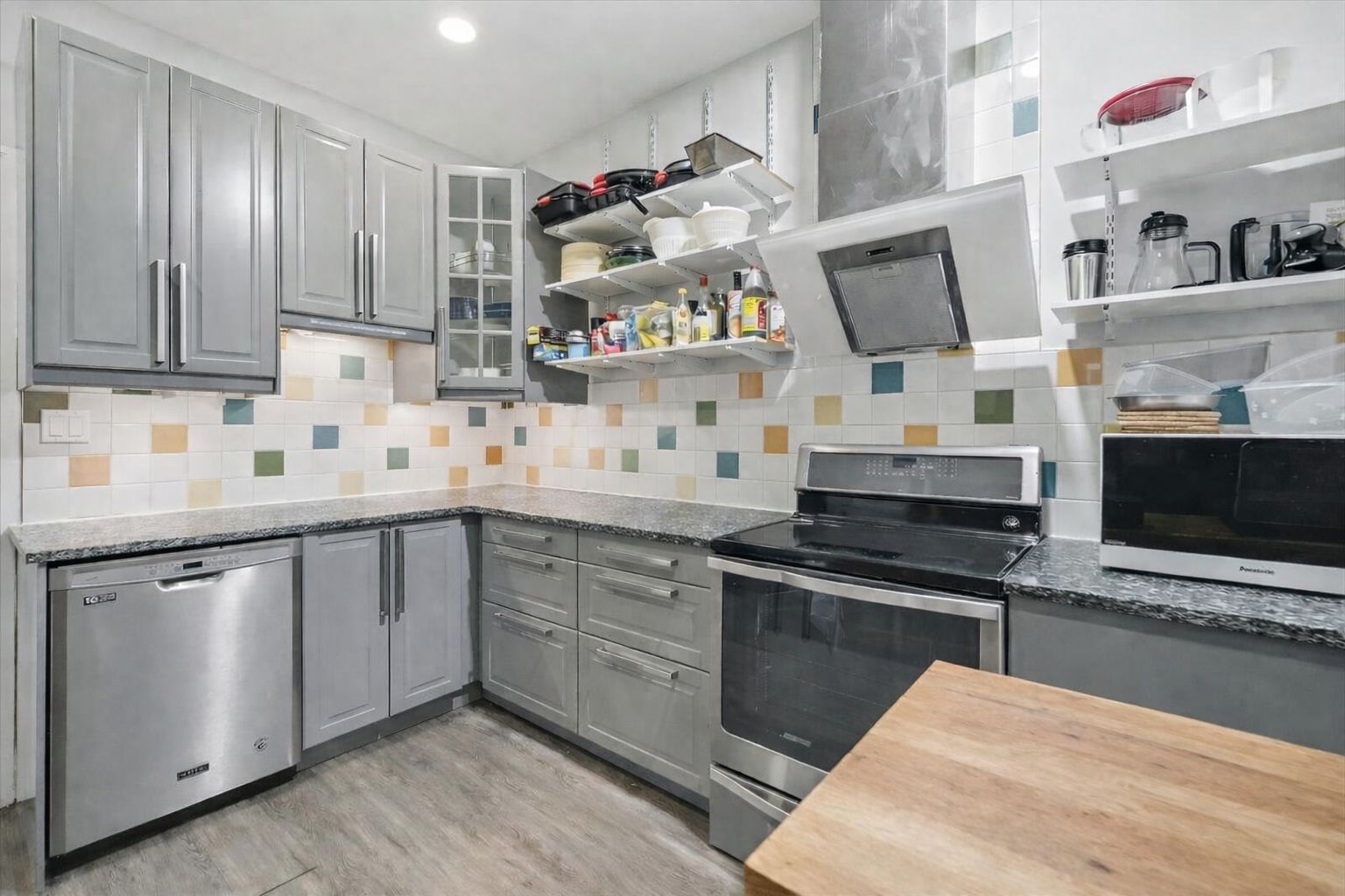 • Renovated kitchen with modern cabinetry and plenty of counter space.