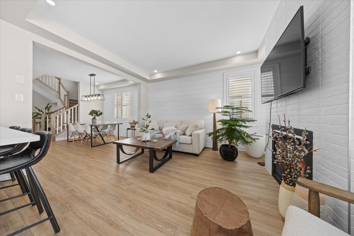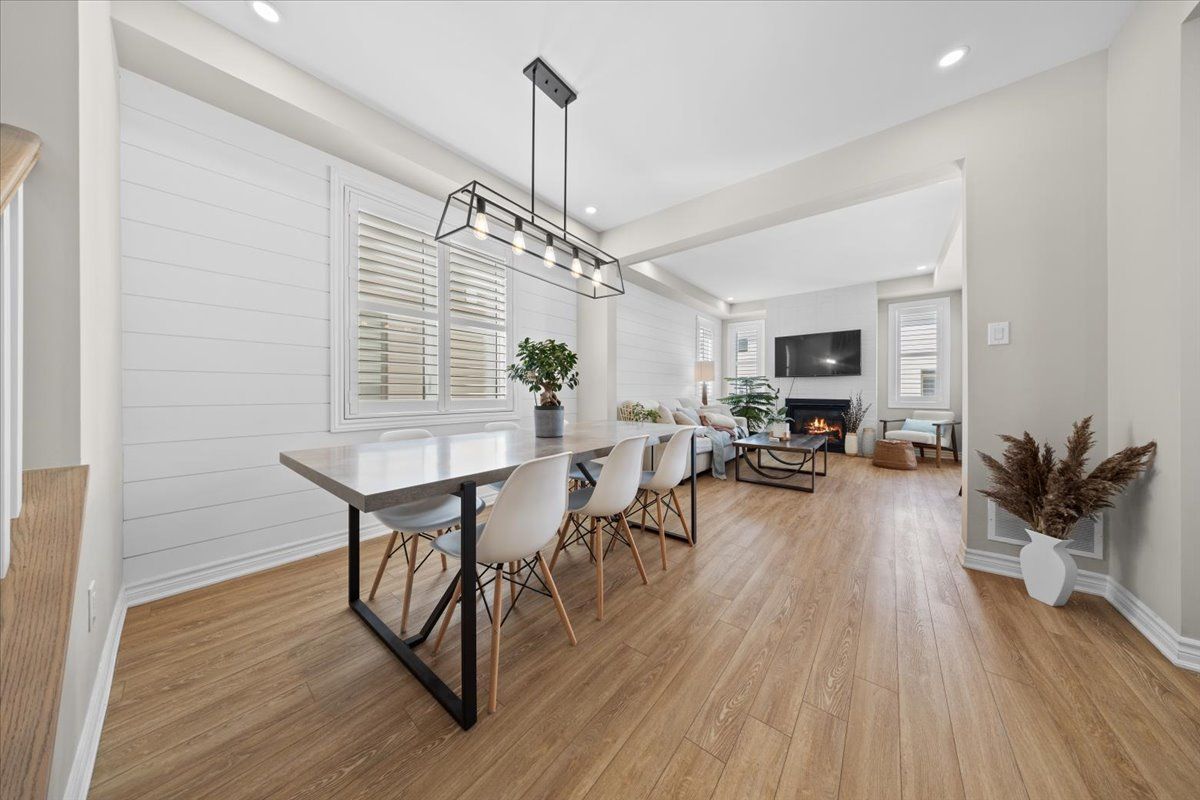 • Spacious main floor with dedicated dining area and cozy gas fireplace.