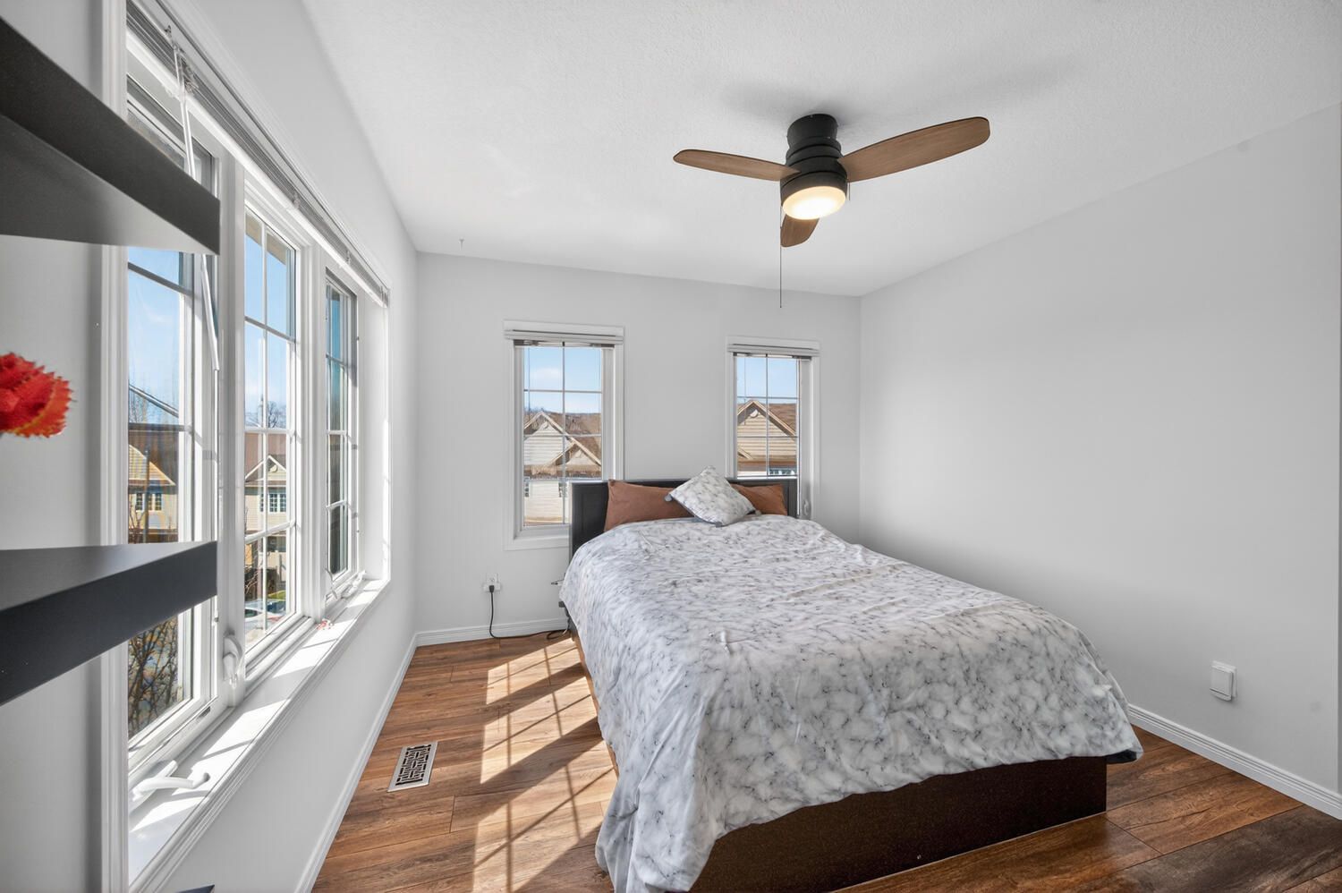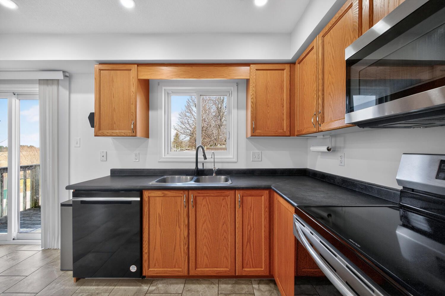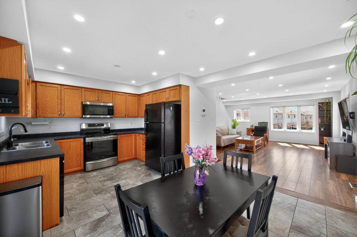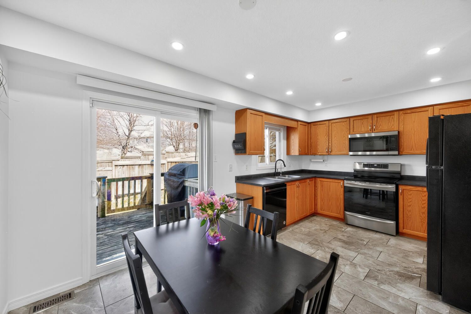 Welcome to this beautiful maintained corner freehold townhome that offers the feel and privacy of a semi detached property. Featuring laminate flooring through out with no carpet. This end-unit home provides additional windows, enhanced privacy and an abundance of natural light. Located in a highly desirable fisher mills neighborhood. This home is just minutes to highway 401, making it ideal for commuters, enjoy the benefits of freehold ownership with low potl fees. This home comes with freshly painted with light color, newly installed pot lights, upgraded quartz counter top in all bath. The specious open concept with main floor includes a convenient powder room, a bright dining area with walk out access to the deck, and a well appointed kitchen with ample cabinetry. The upper level offers three generously sized bedrooms, including a sun filled primary suite with its own private 3 piece ensuite, along with an additional 4 piece bath..