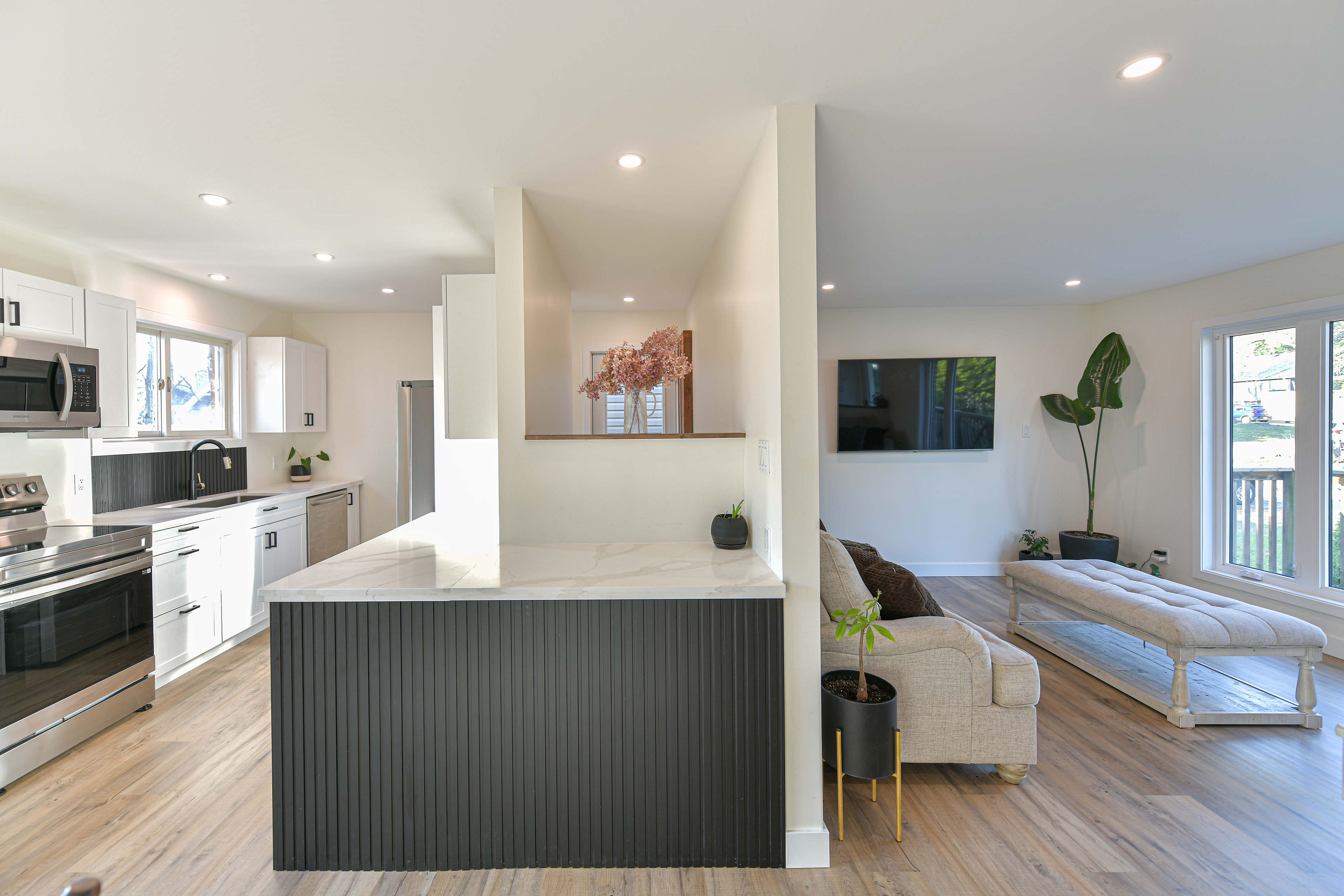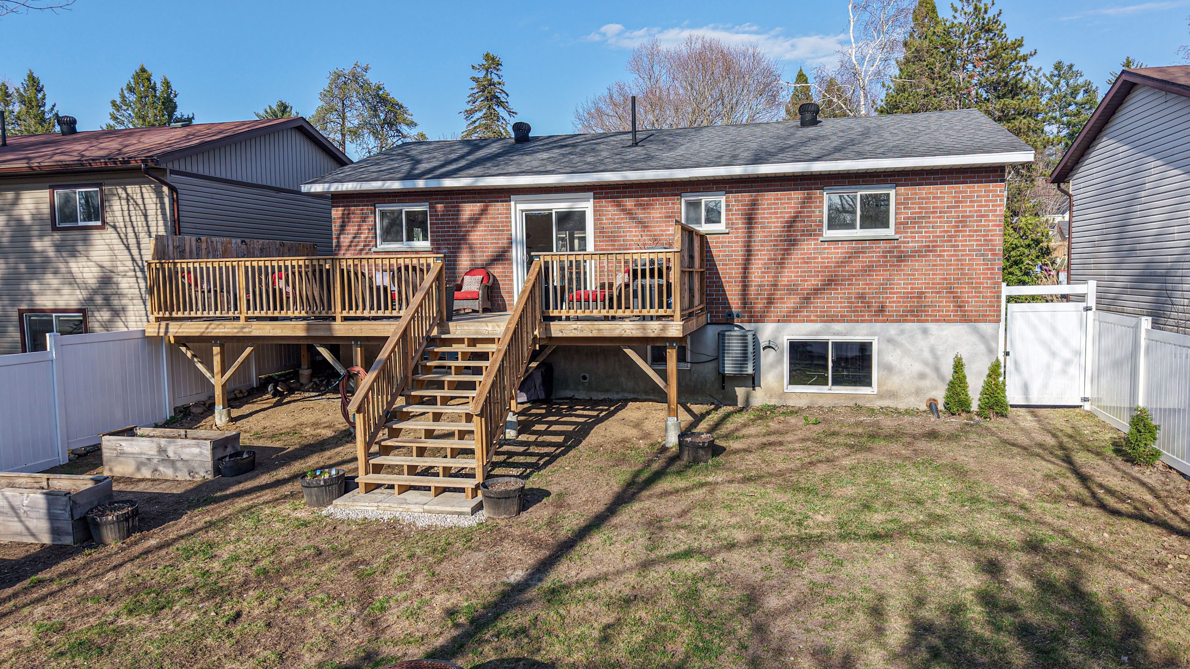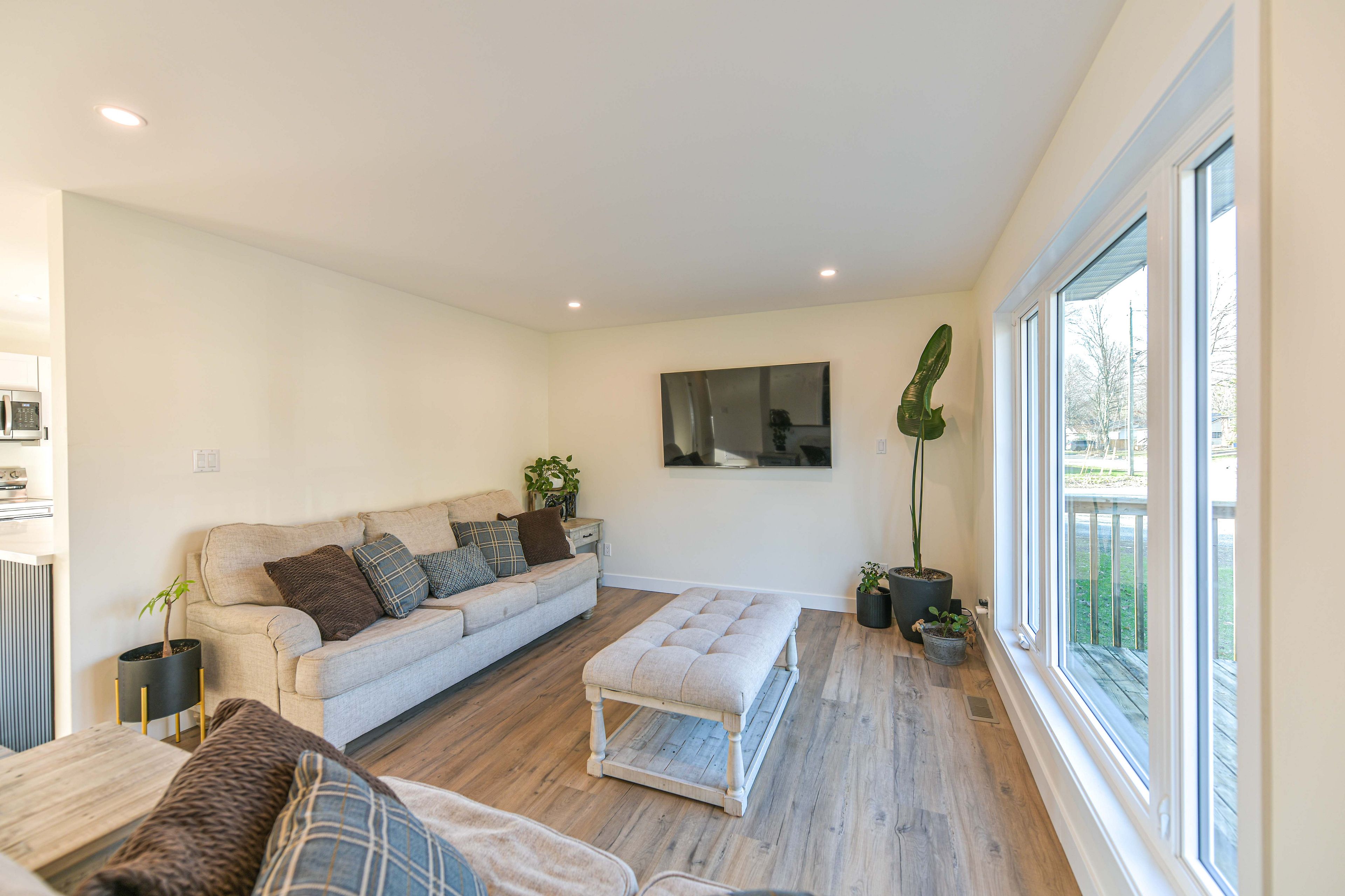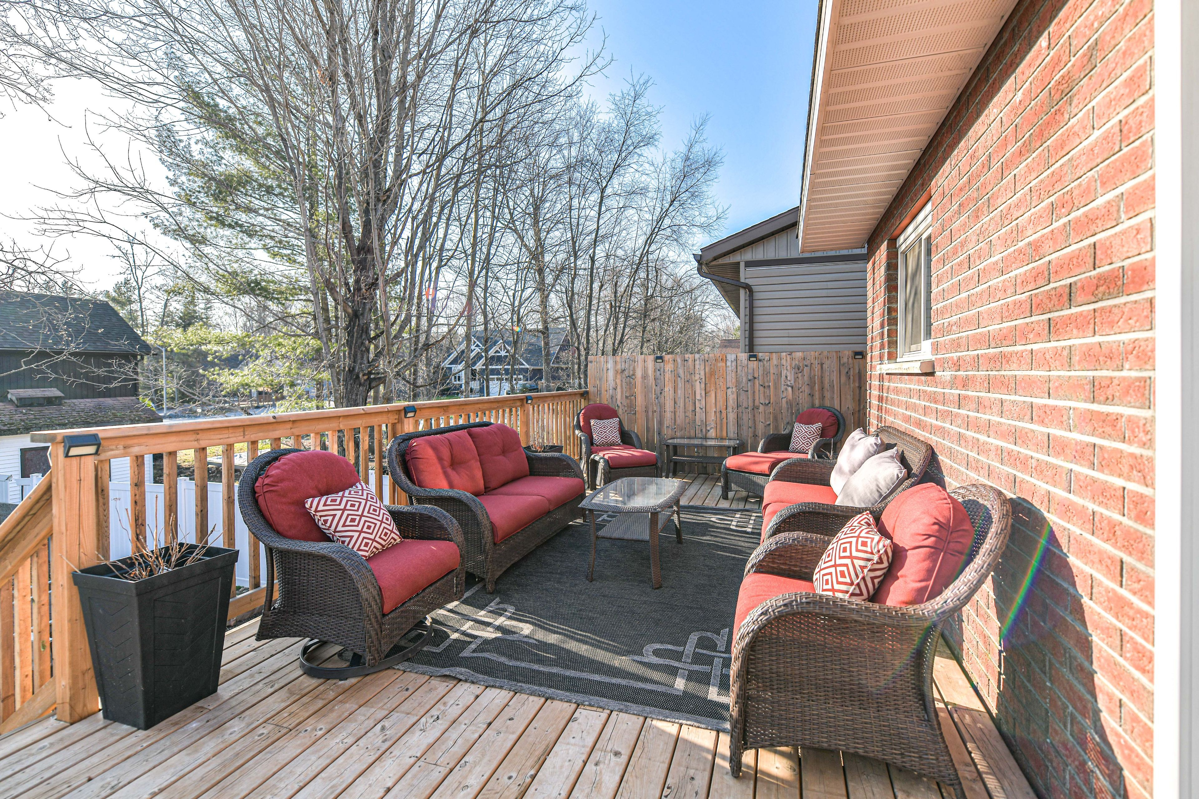 This beautifully updated solid brick bungalow is suitable for any lifestyle and is located in one of the town's most sought after neighbourhoods. Offering exceptional space and versatility, this home features 4 bedrooms and 2 full bathrooms, making it ideal for families, multi generational living, or those seeking extra room to grow. From the moment you step inside, you will be impressed by the abundance of natural light that fills the home. The spacious front foyer includes a convenient closet for all your outdoor essentials and sets the tone for the thoughtful layout throughout. The living room, dining room and kitchen flow seamlessly together, creating a bright and welcoming space perfect for everyday living and entertaining. The dining room features a sliding door leading to a generous 30 foot deck, an ideal place to relax, soak up the sun, or host gatherings, overlooking a level fully fenced backyard with plenty of room for kids, pets, or even your dream backyard oasis. The fully renovated kitchen is both stylish and functional, complete with new appliances and modern finishes, while updated flooring, lighting, doors and a large front window enhance the home's overall appeal. The main floor offers three spacious bedrooms, all with closets, along with a beautifully finished custom tile 5 pc bathroom featuring a large tub perfect for unwinding. A convenient side entrance provides direct access to the backyard and leads downstairs, offering excellent in law suite potential. The basement is impressively sized and includes a bedroom, a large rec room ready to suit your needs, a laundry room, a storage room with shelving and cupboards, a utility room e and a 4 pc bathroom with a bathtub. Situated in a fantastic in town location on a quiet street, this home is just a short walk to local favourites including lorne street beach on lake muskoka, ungerman gateway park and lookout park where you will find a playground and picnic areas.