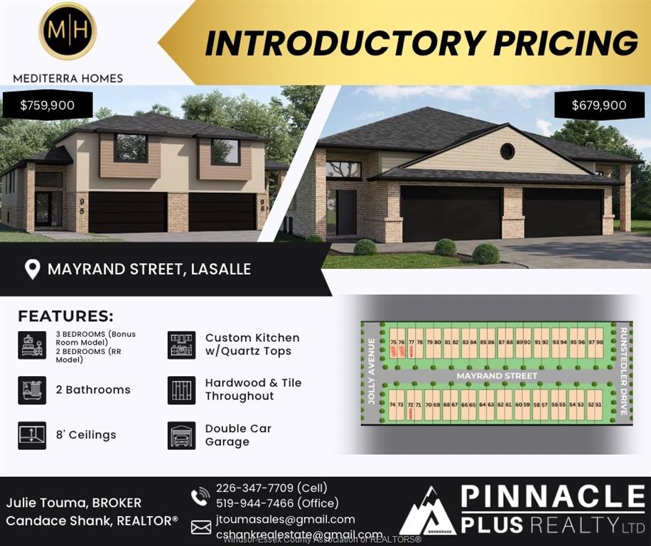 For a limited time - introductory pricing & upgrade special!! Welcome to mayrand street in the new villa oaks estates subdivision! This spacious raised ranch semi-detached home with attached double garage features 2 bedrooms & 2 bathrooms in a quiet neighbourhood just minutes from many amenities. Step inside to the bright, welcoming space with hardwood floors in the kitchen and all living areas and tile flooring in the foyer and baths. The open floor plan seamlessly connects the living room to the dining area and kitchen, making it ideal for entertaining and family gatherings. The kitchen’s functional layout features plenty of cabinet space, island and solid countertops. The unfinished basement features a grade entrance, rough-in bath and rough-in kitchen. Located in a desirable lasalle neighbourhood with easy access to local schools, shopping, and major highways. For a limited time, builder is offering the following upgrades at no charge: epoxied garage and front porch, rear patio decking and screens! First time home buyer rebate applies if eligible-ask listing agent for more details!