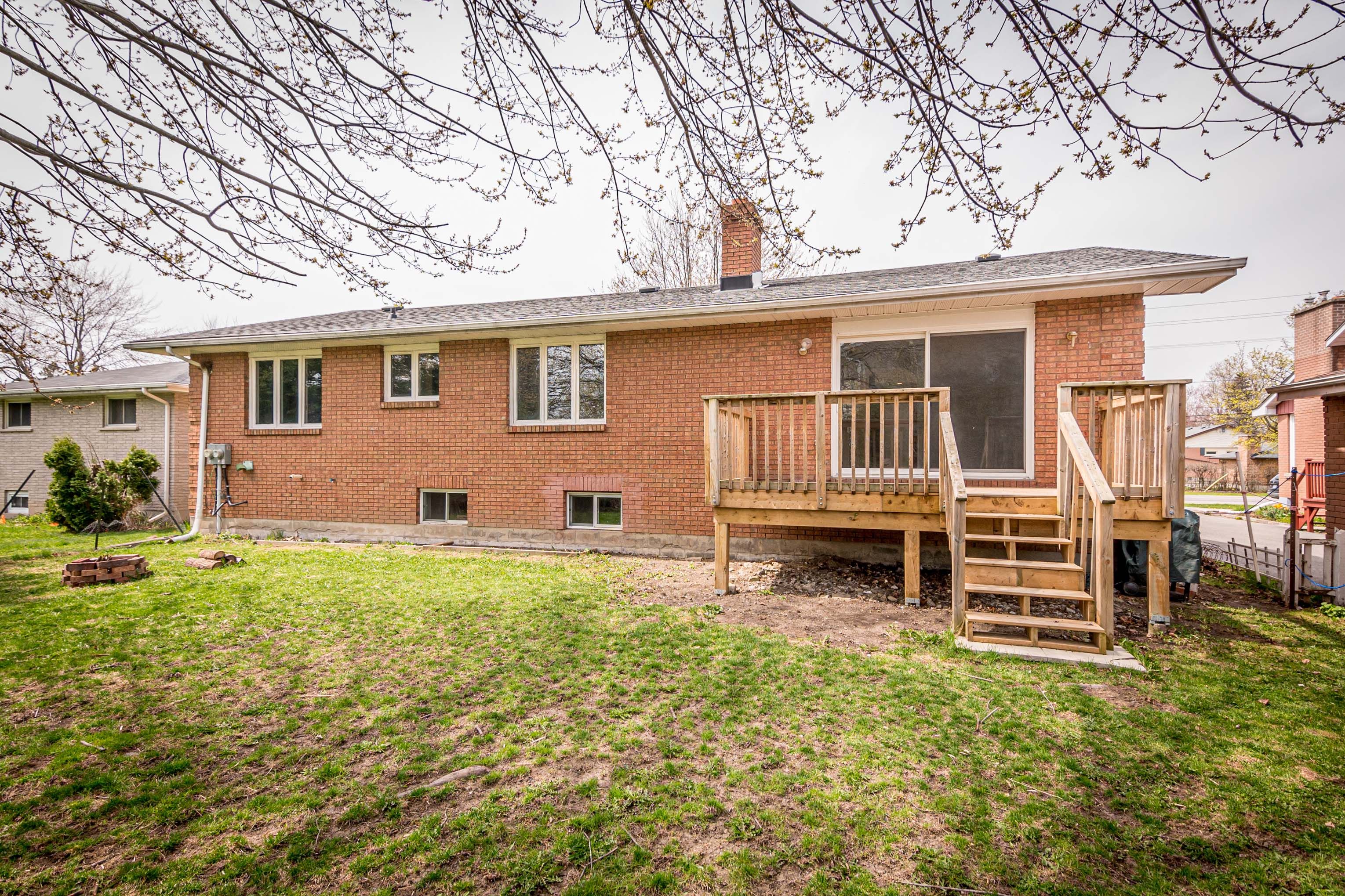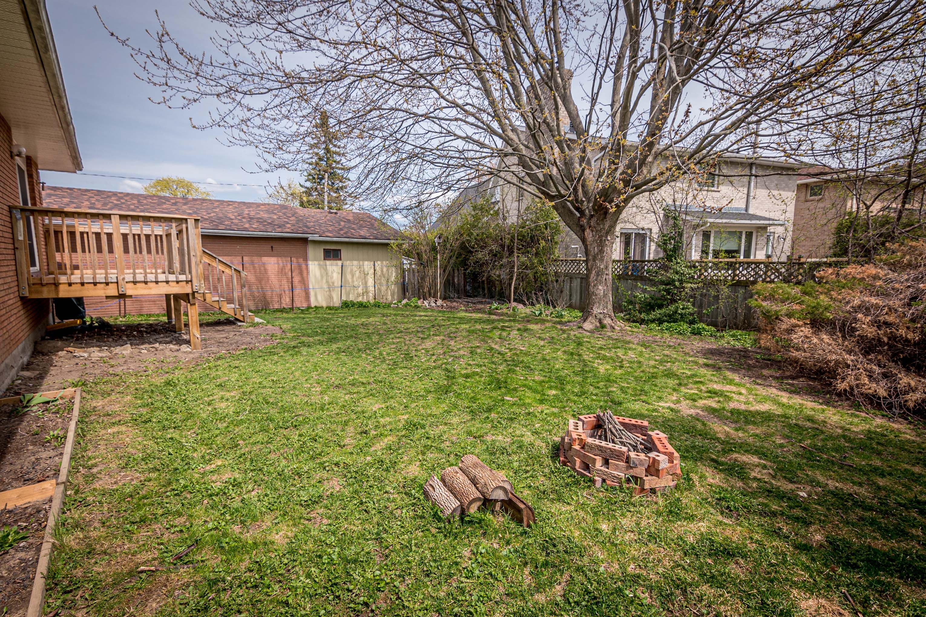 • Large backyard with a deck and mature trees for outdoor enjoyment.