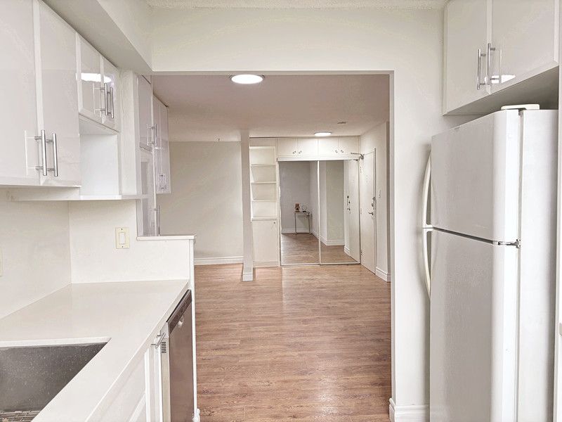 Stunning sun-filled corner unit offering 3 bedrooms and 2 underground parking spaces, featuring a desirable north-east entrance and south-west exposure with an unobstructed city view from the balcony and three sides of the unit. Located in a quiet, standalone, and well-maintained building with full amenities, just steps from central parkway station. Conveniently close to a plaza with food basics, schools, and square one shopping mall. Recently renovated with a bright, pleasant ambiance, with engineered hardwood flooring, the unit boasts a spacious and modern kitchen with quartz countertops and backsplash, washroom includes quartz countertop vanity. The expansive living room features a walkout to a private balcony, perfect for relaxing or entertaining. The primary bedroom includes a 2-piece ensuite and a walk-in closet, while all bedrooms offer large windows with abundant natural light.