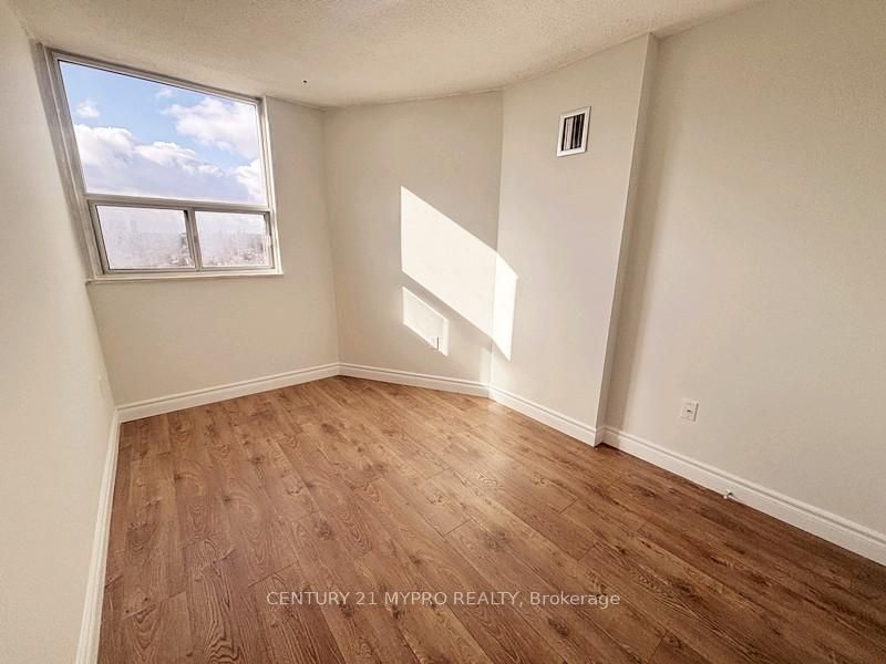 Stunning sun-filled corner unit offering 3 bedrooms and 2 underground parking spaces, featuring a desirable north-east entrance and south-west exposure with an unobstructed city view from the balcony and three sides of the unit. Located in a quiet, standalone, and well-maintained building with full amenities, just steps from central parkway station. Conveniently close to a plaza with food basics, schools, and square one shopping mall. Recently renovated with a bright, pleasant ambiance, with engineered hardwood flooring, the unit boasts a spacious and modern kitchen with quartz countertops and backsplash, washroom includes quartz countertop vanity. The expansive living room features a walkout to a private balcony, perfect for relaxing or entertaining. The primary bedroom includes a 2-piece ensuite and a walk-in closet, while all bedrooms offer large windows with abundant natural light.