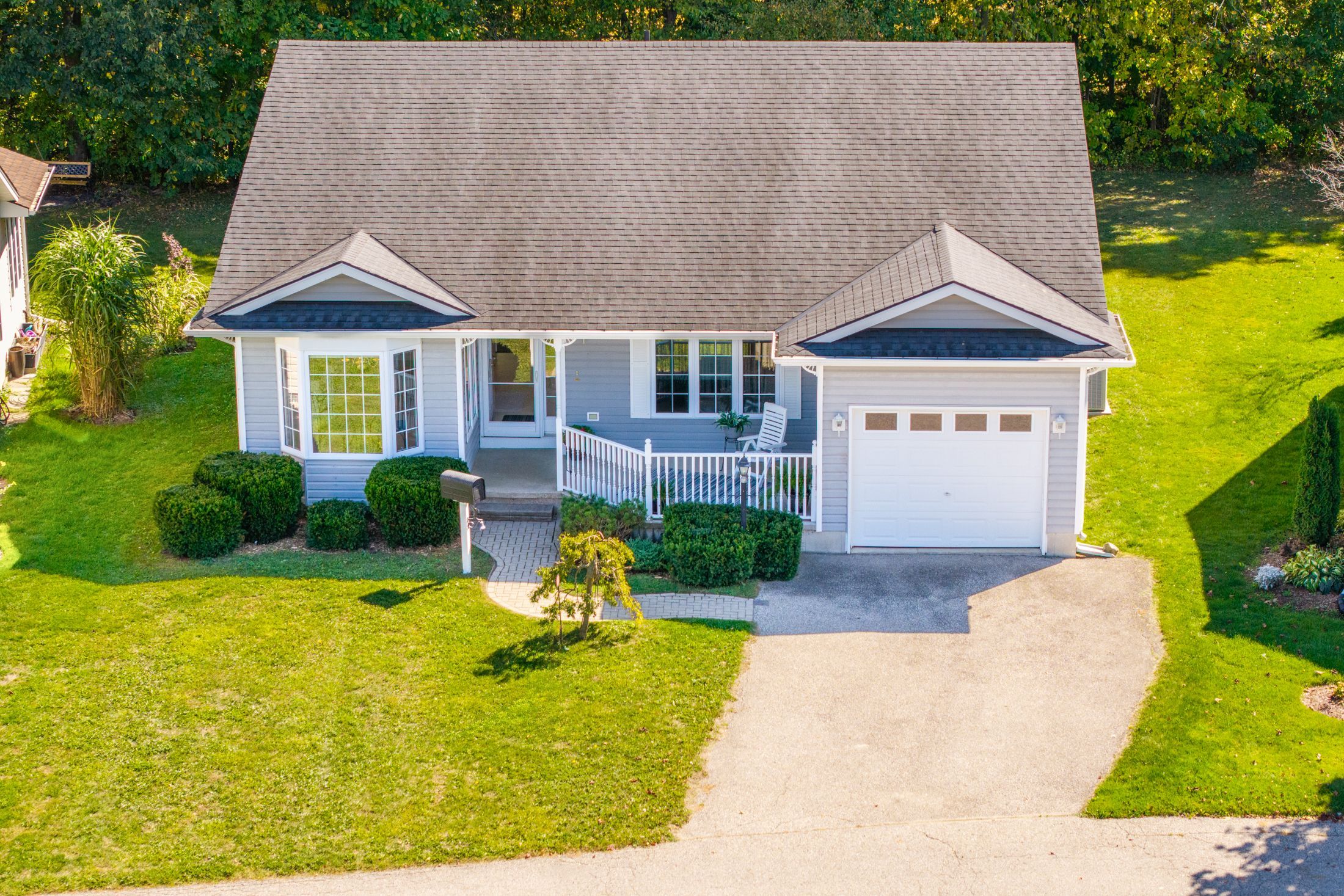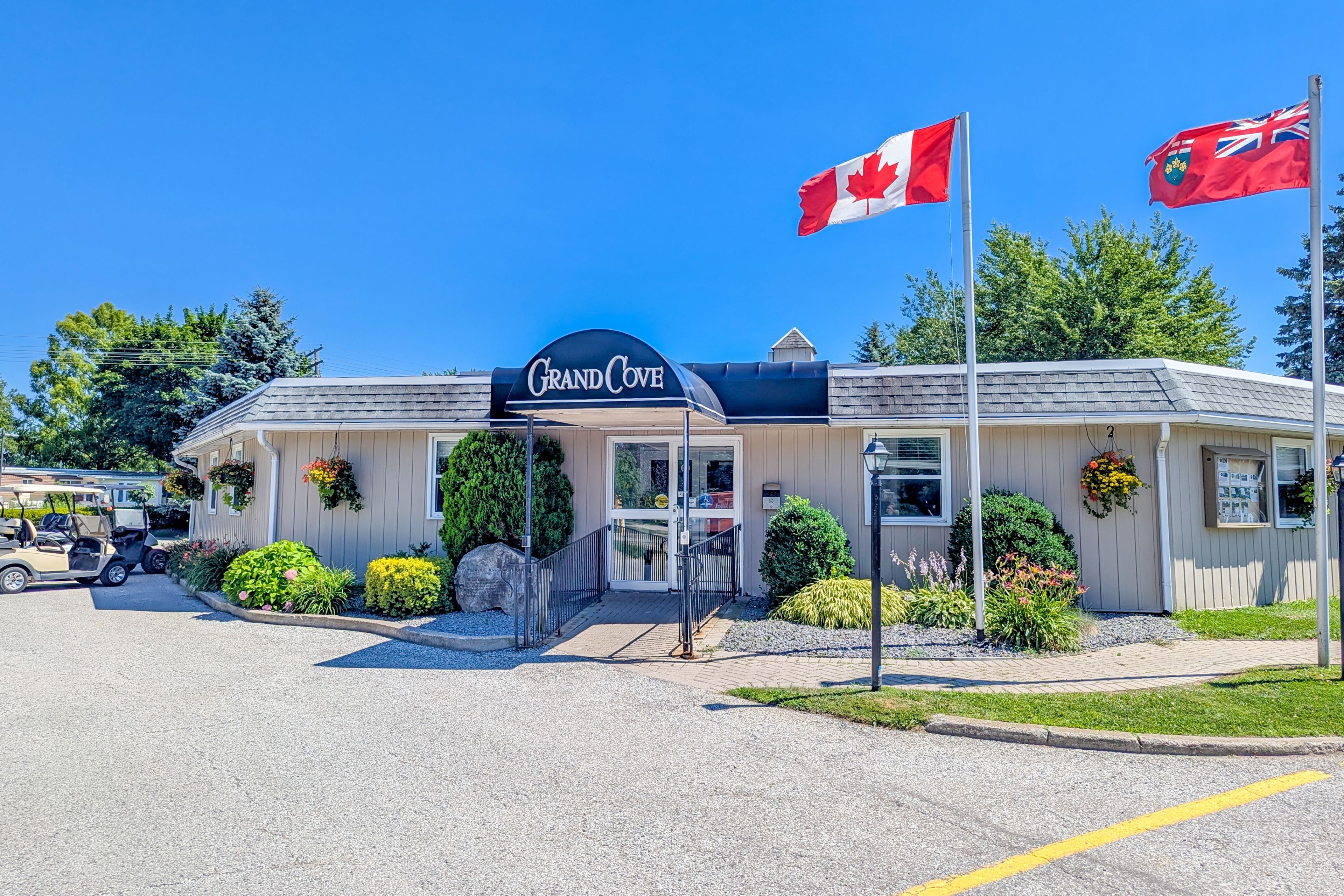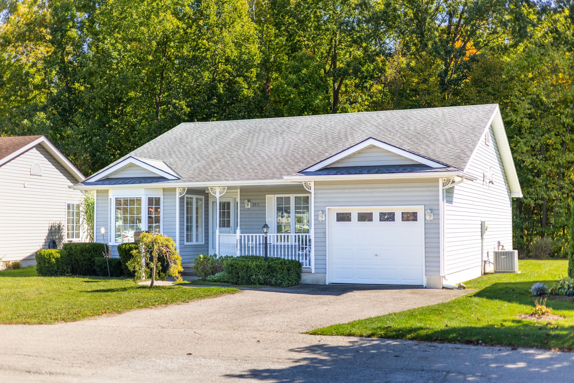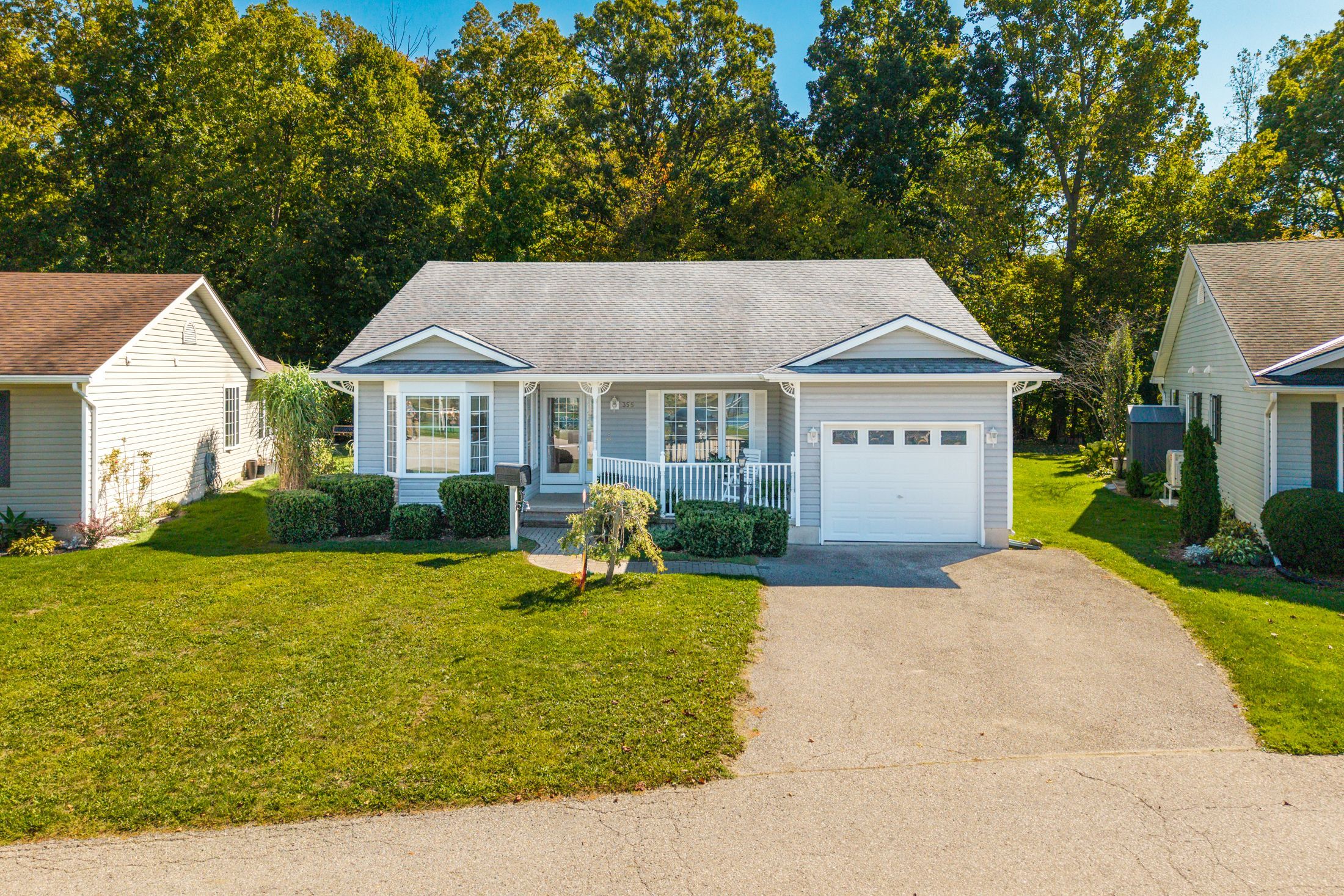 Grand cove site built home with garage backing onto mature woods | view of the water/grand cove nature pond from front of home | best price in the back row of shannon blvd we have seen in years! Come fall in love with one of the best locations in grand bend's sought after grand cove retirement community. This is rice homes' 2003 1450 sq ft huntington model and it's being offered for resale for the first time in history! This lovely property has only had its original owners, who hand-picked this prime location from the developer. Case in point, this is a top location in the cove, but the house itself is sure to impress as well! As you enter the home, you are bathed in natural light below vaulted ceilings accenting the open concept living kitchen, dining area in a way that makes it feel larger than life. Just beyond the gas fireplace, you'll walk out to an updated sundeck adjacent to one of several bay windows in the home overlooking your own private forest. The kitchen with breakfast nook is in great condition with all appliances included with the refrigerator just updated a few years ago. The 2 bedrooms and 2 full bathrooms are both very generous in size and also an excellent condition. The main level master with walk-in closet, large bay window and an ensuite bath with his and hers sinks is a rare feature in grand cove. Speaking of rare features in grand cove, not only does this site-built gem have an attached garage with inside entry to a large mudroom with laundry and laundry sink, it also has a partial height basement with a full concrete floor offering an endless amount of dry storage. The furnace, a/c, washer/dryer, and the roof were just replaced a few years ago - so much value here! Priced well below every recent site build with a garage (and even the one that just sold without a garage) this one won't last long. Land lease fees of approximately $850 a month are applicable.